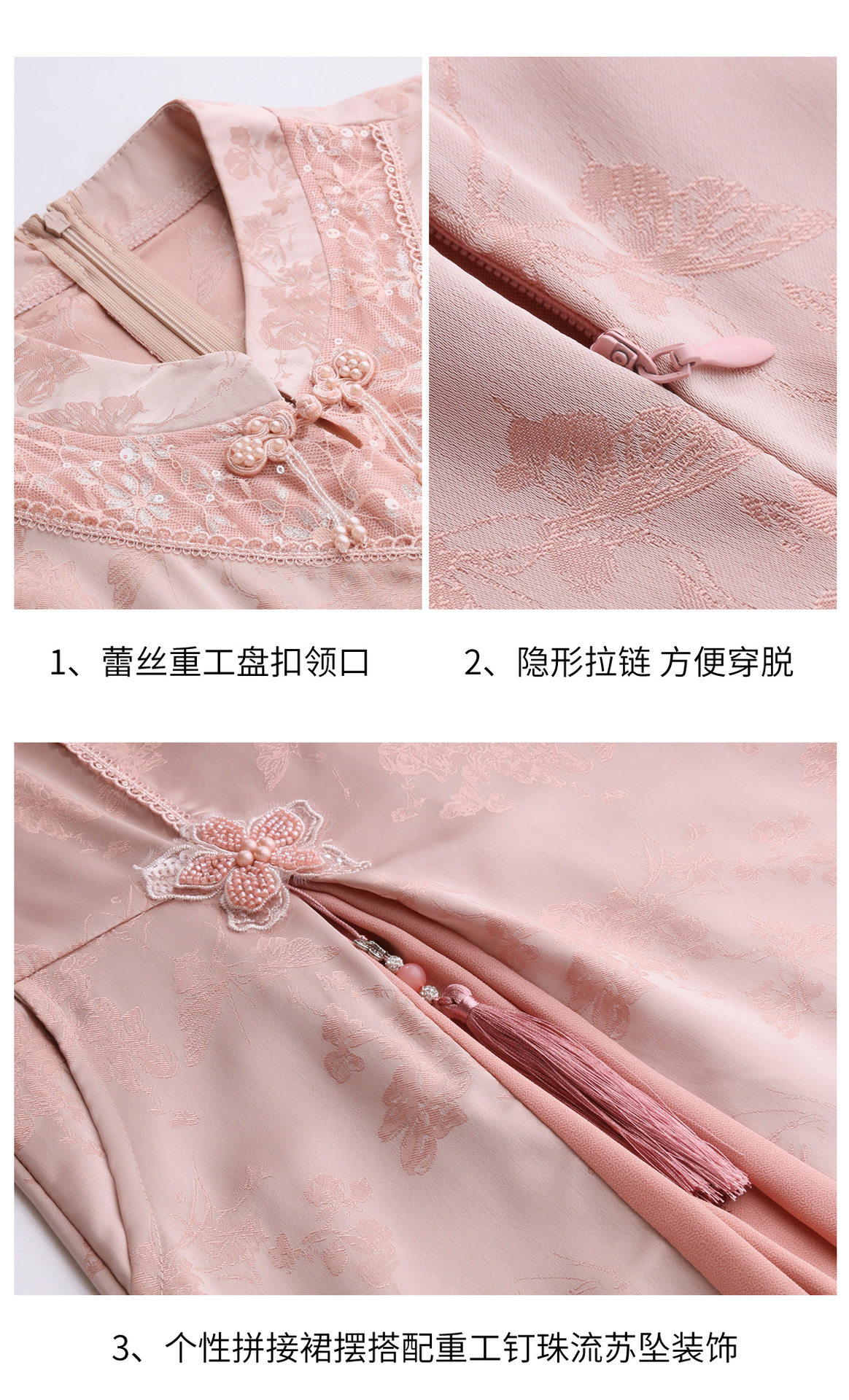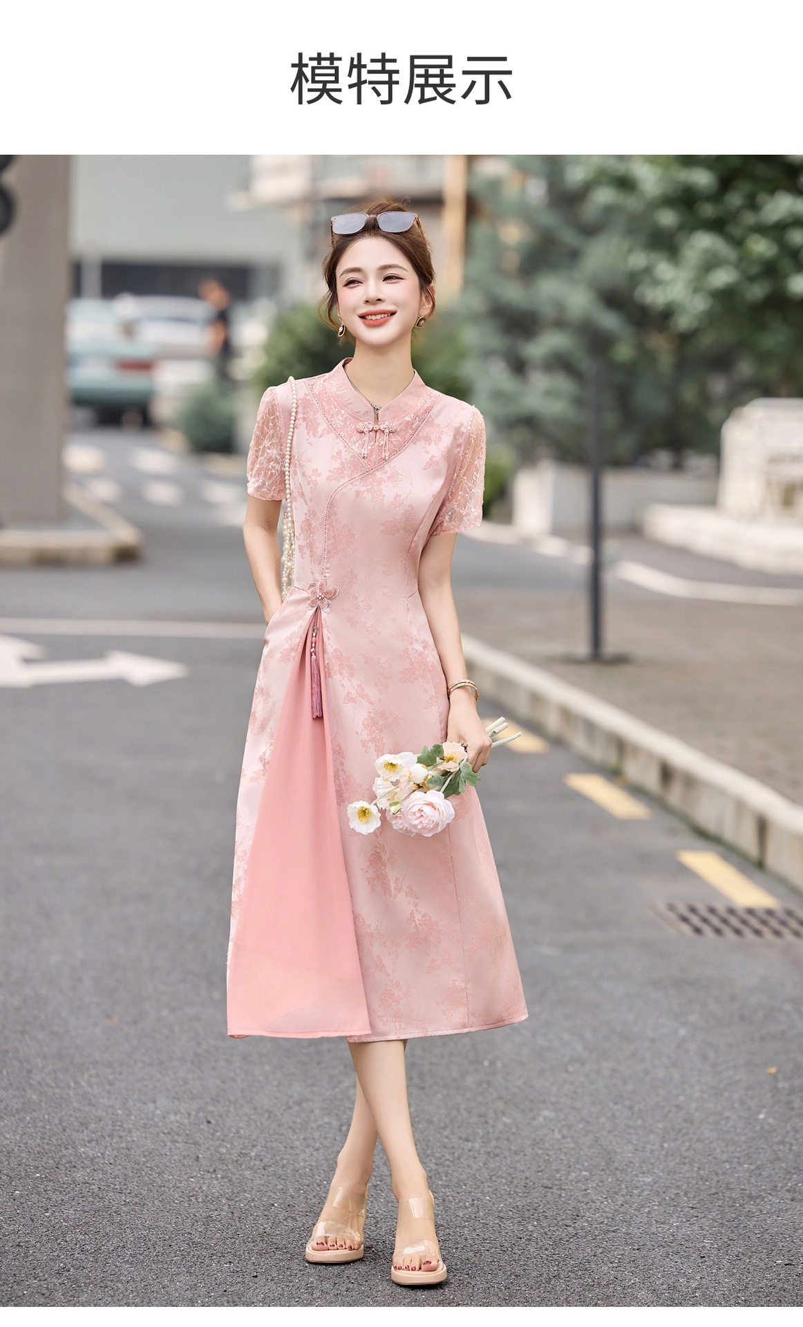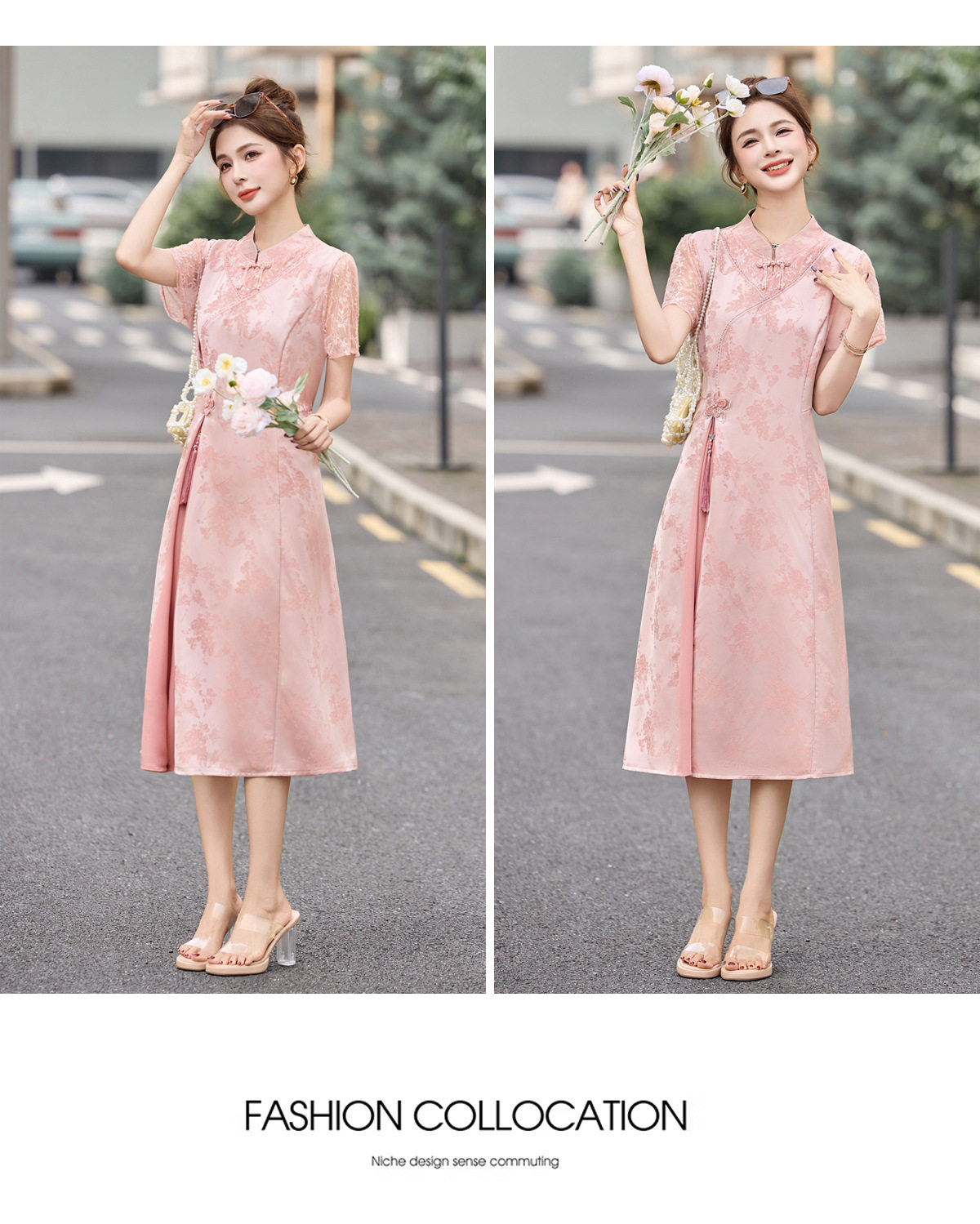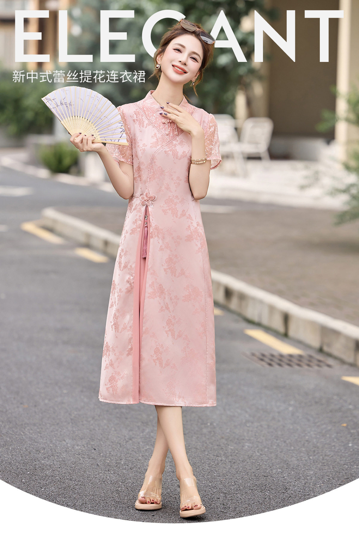 「自」全新升级【铂金会员284/天猫379/差价95】(71609)洛诗琳新中式蕾丝拼接连衣裙2026春季国风立领收腰提花裙女