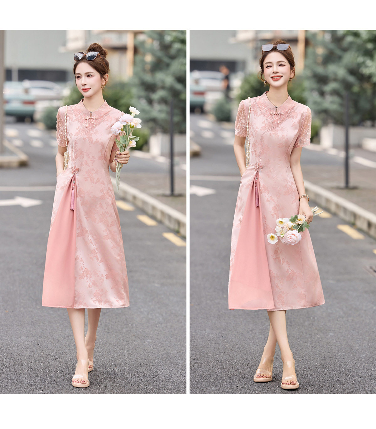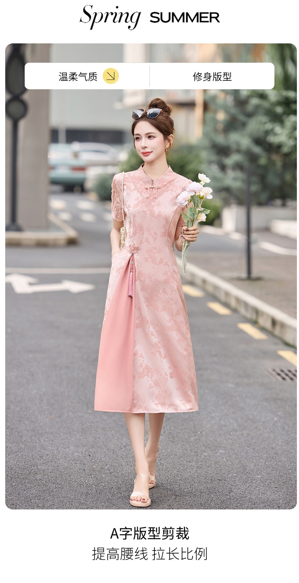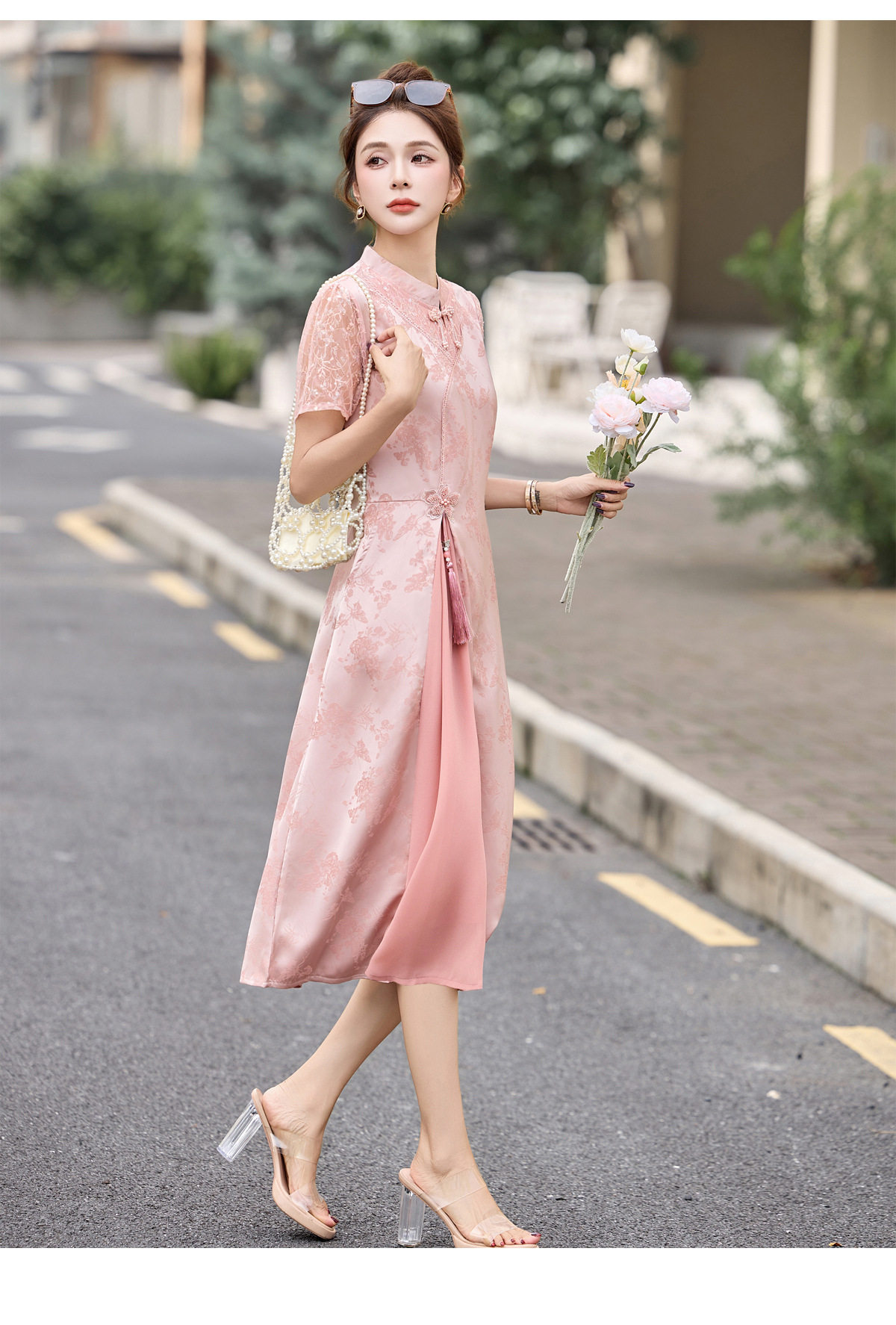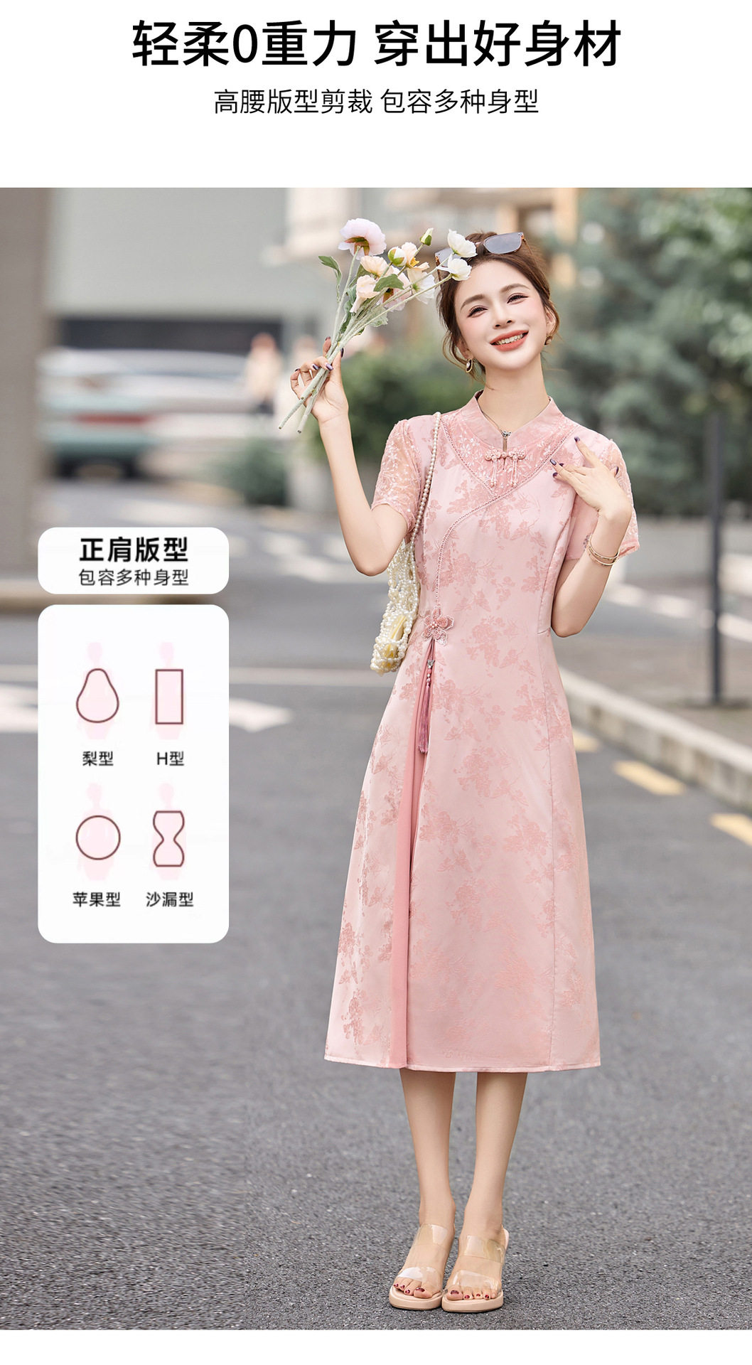 「自」全新升级【铂金会员284/天猫379/差价95】(71609)洛诗琳新中式蕾丝拼接连衣裙2026春季国风立领收腰提花裙女