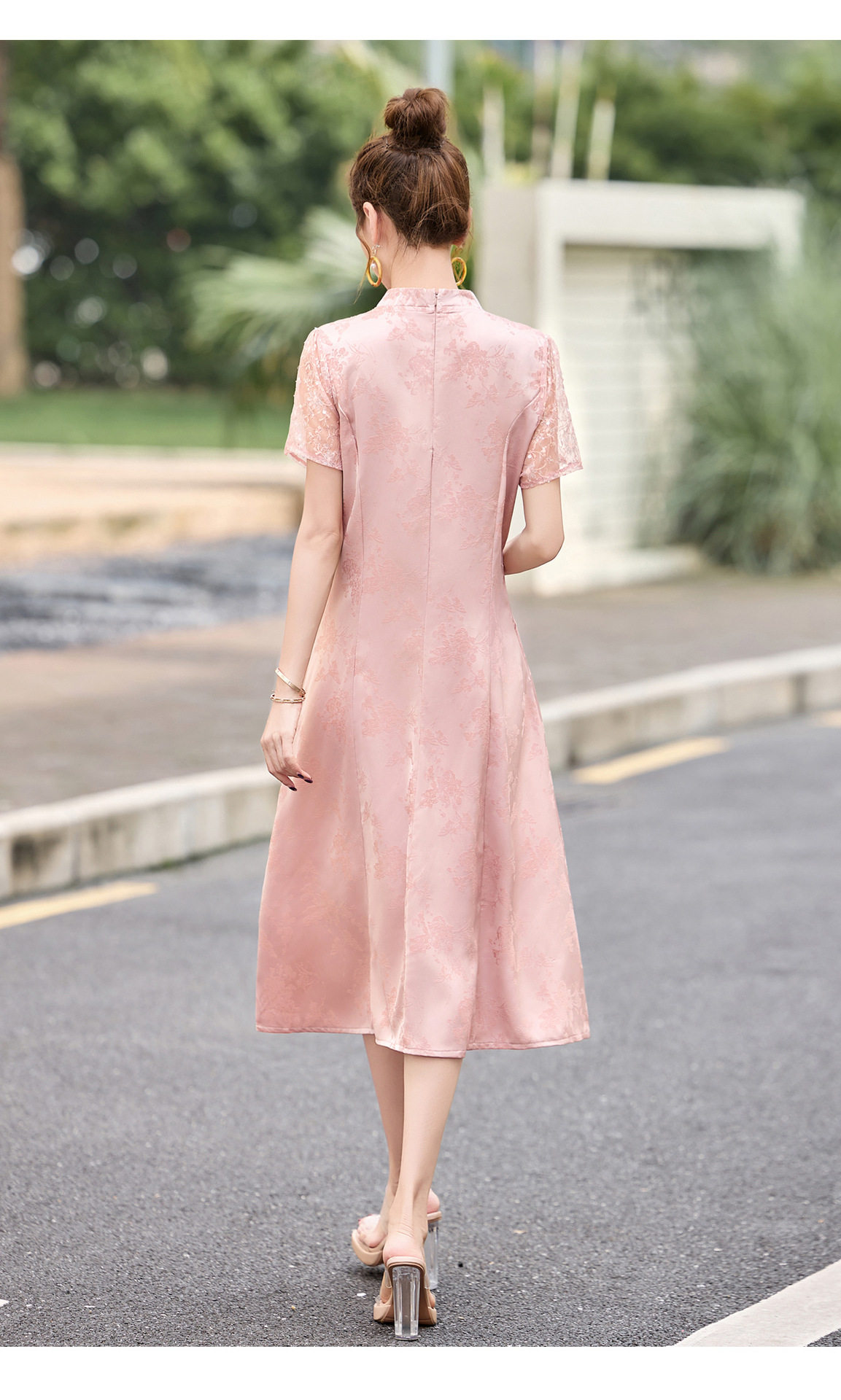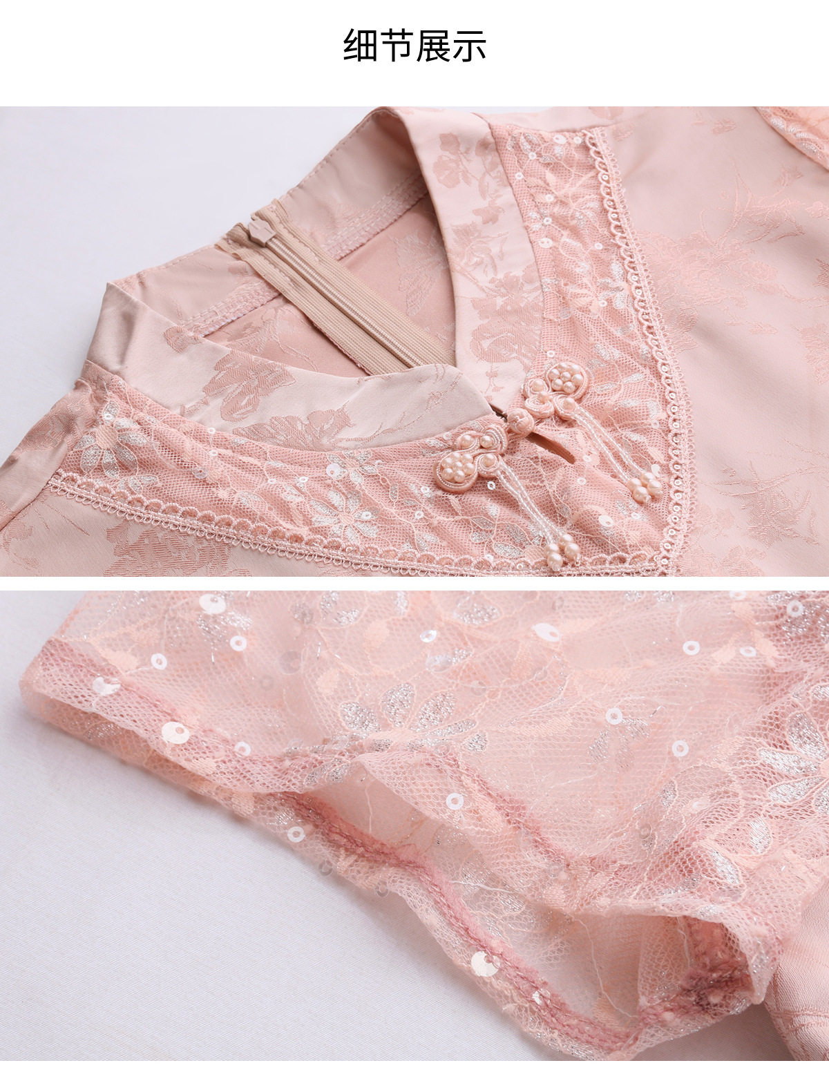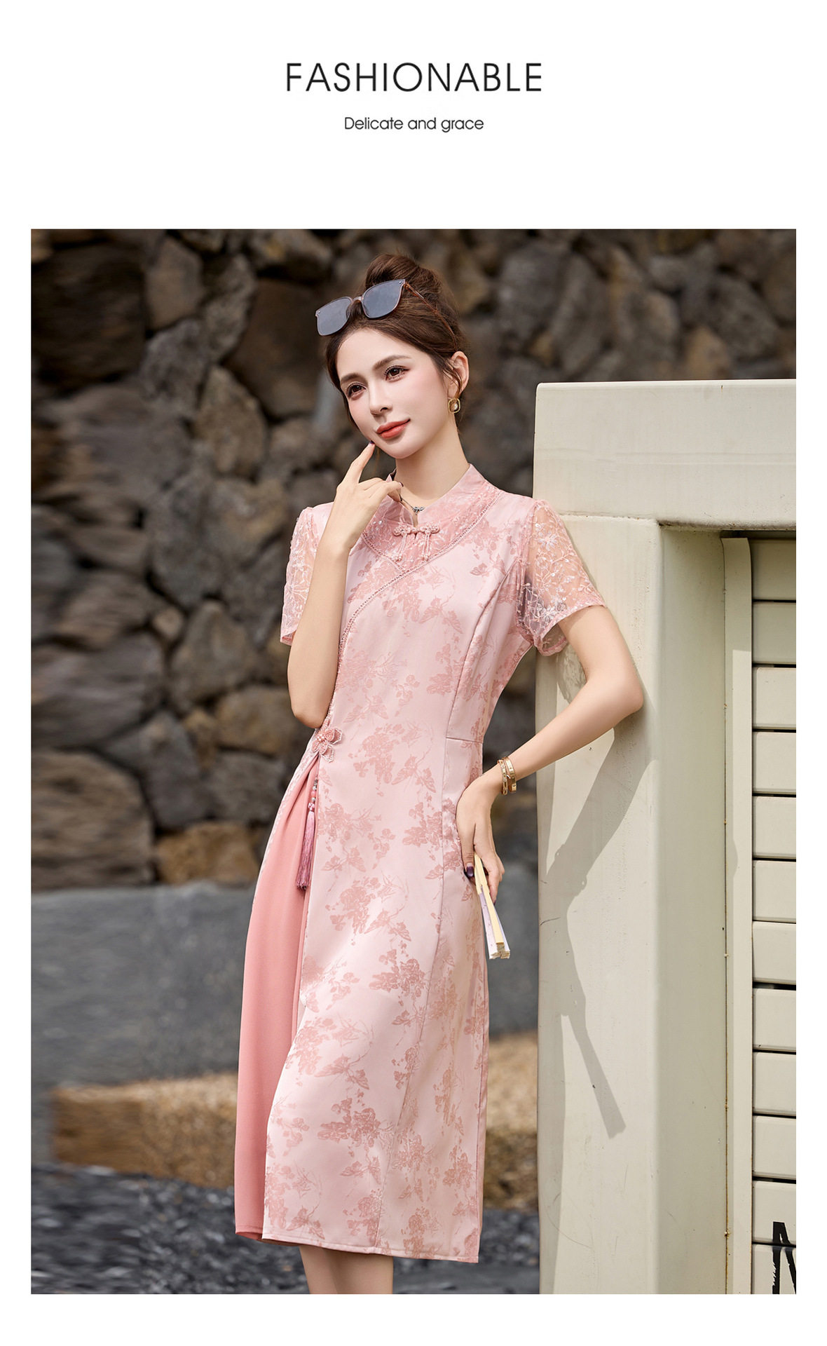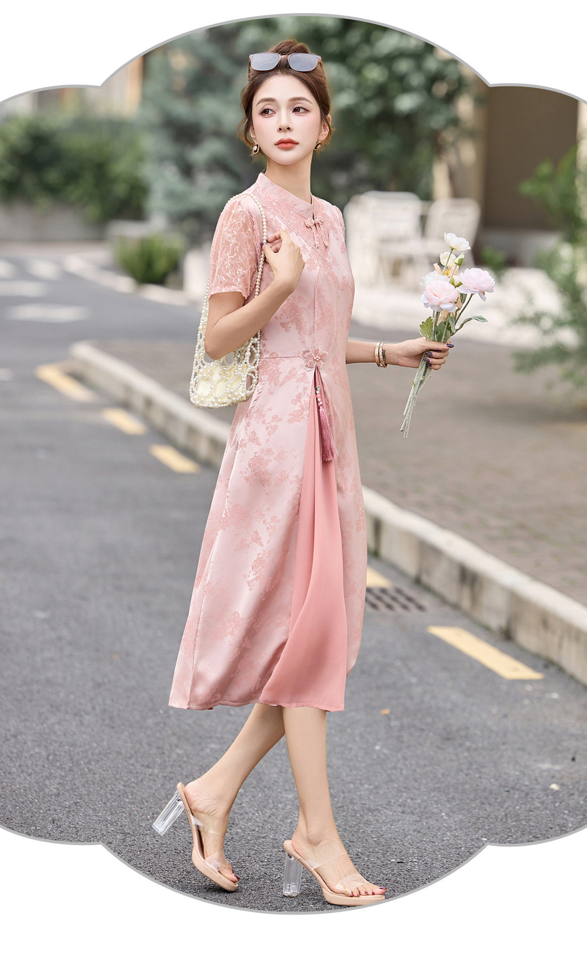 「自」全新升级【铂金会员284/天猫379/差价95】(71609)洛诗琳新中式蕾丝拼接连衣裙2026春季国风立领收腰提花裙女