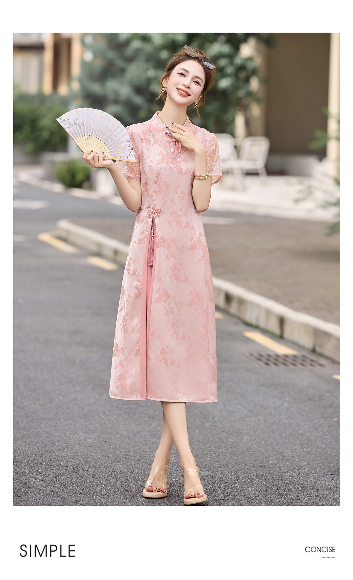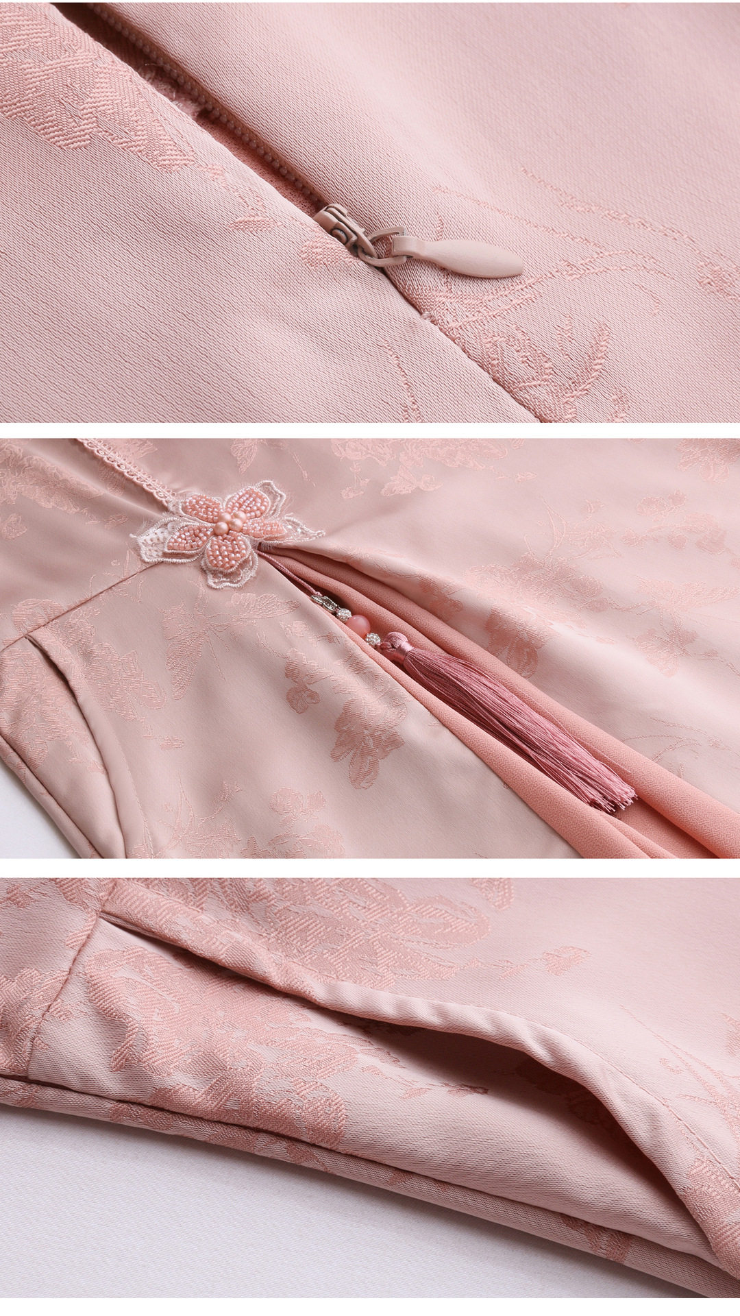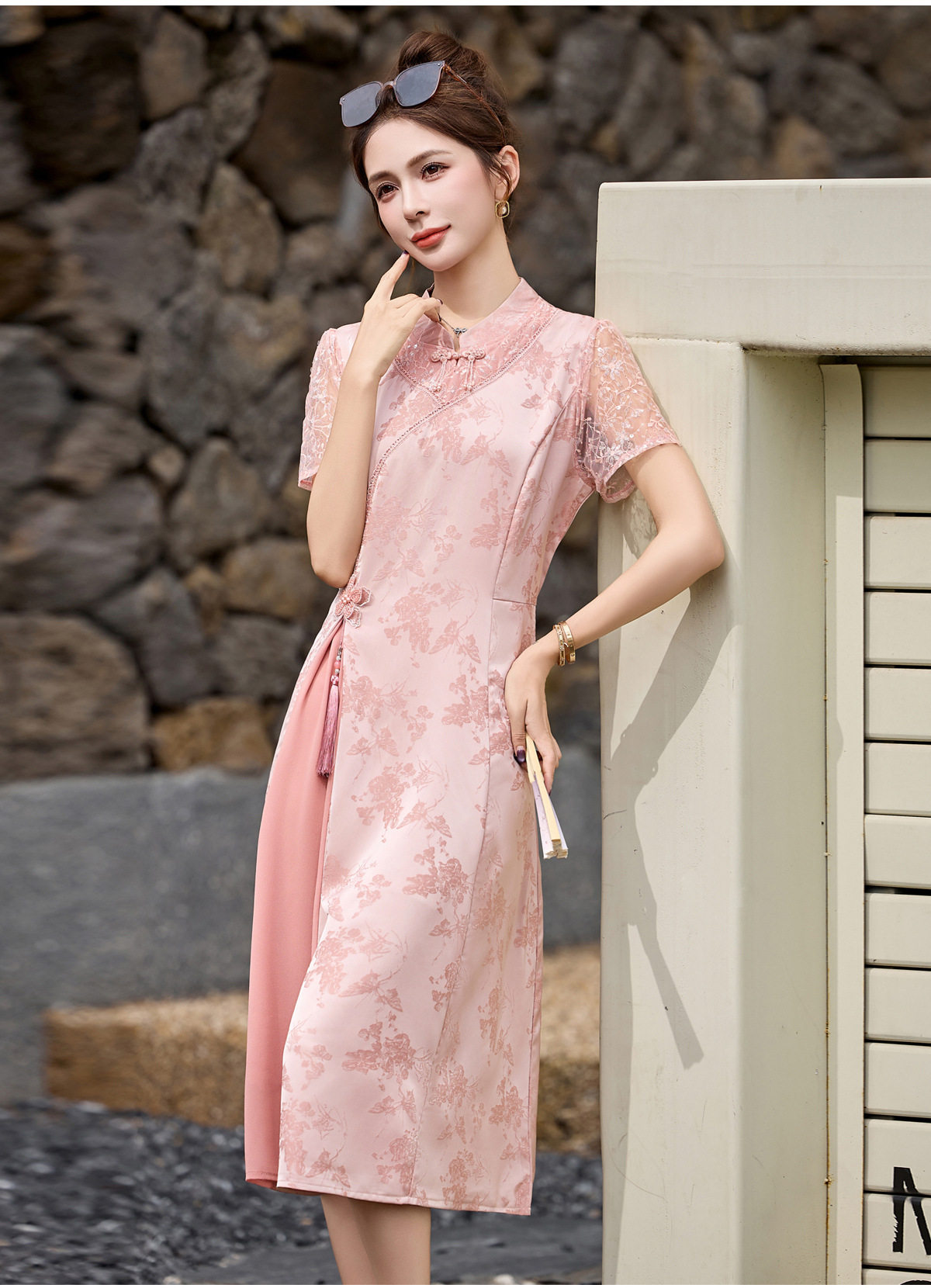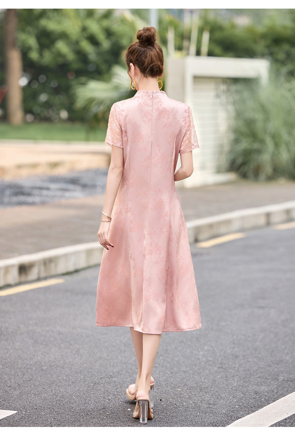 「自」全新升级【铂金会员284/天猫379/差价95】(71609)洛诗琳新中式蕾丝拼接连衣裙2026春季国风立领收腰提花裙女