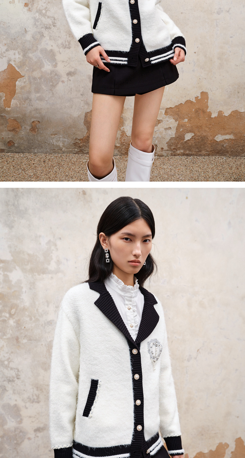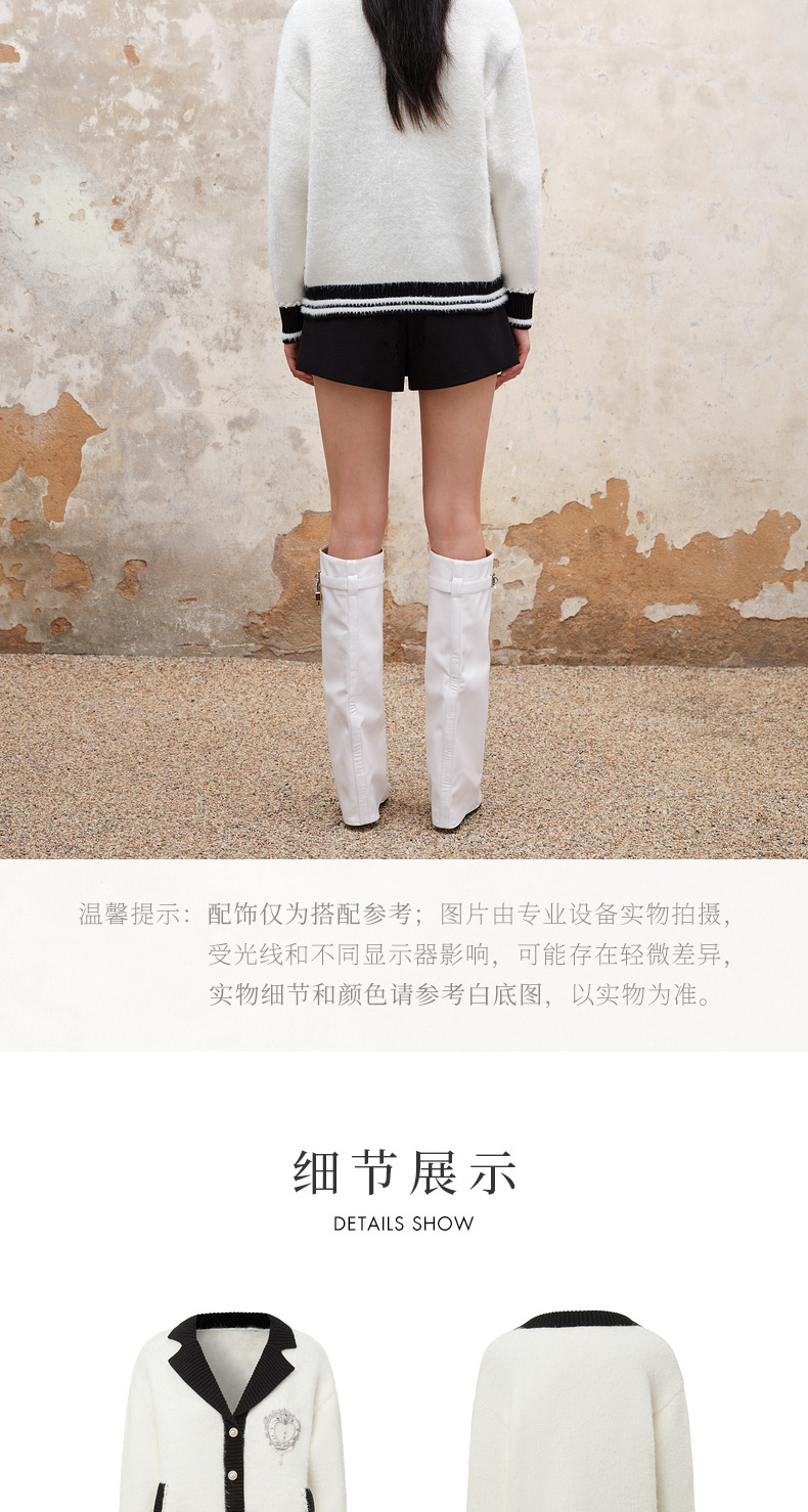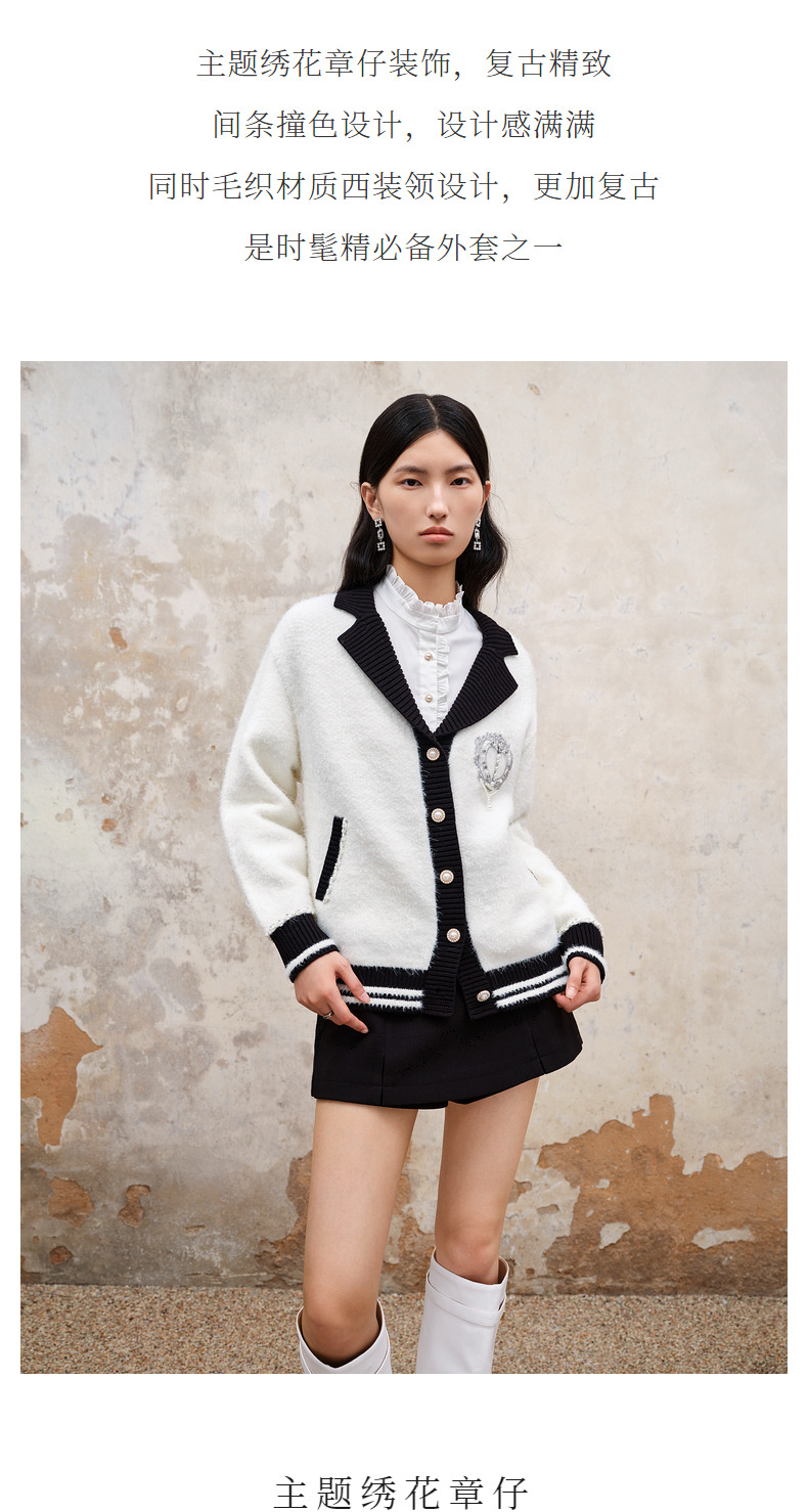 MAXRIENY精致复古氛围感撞色边毛衫外套秋冬高级气质感(货号:MS88JA511)