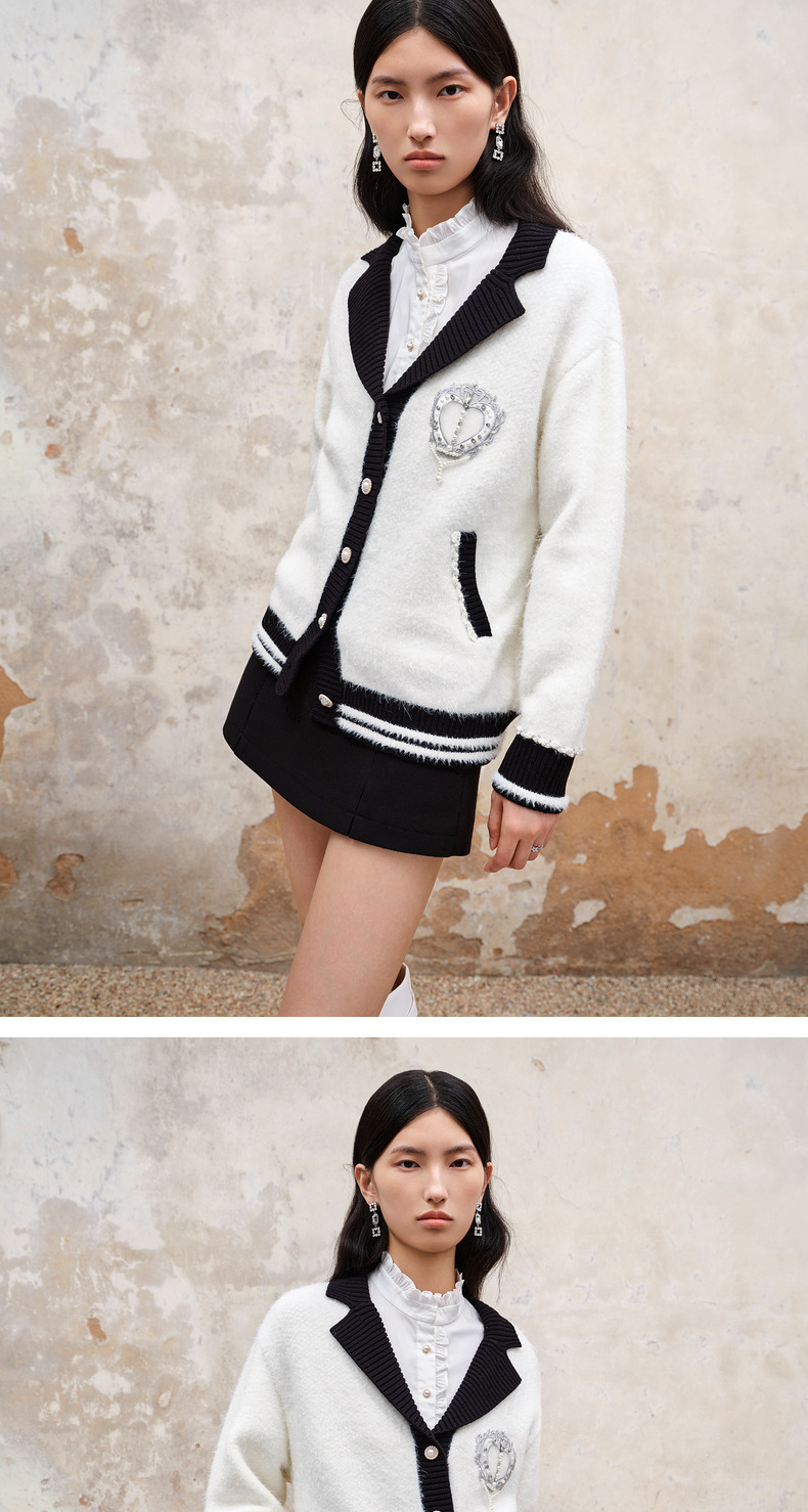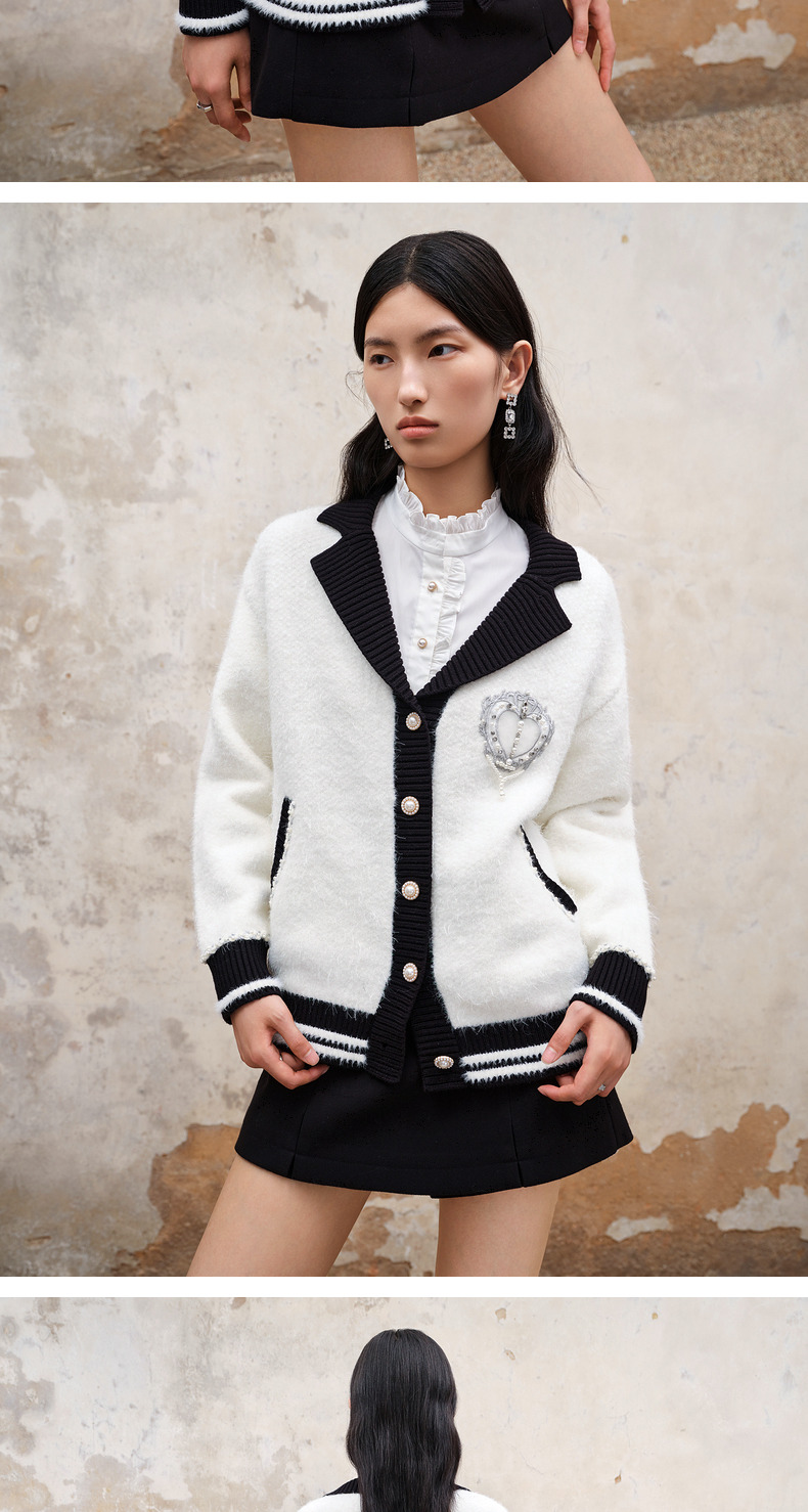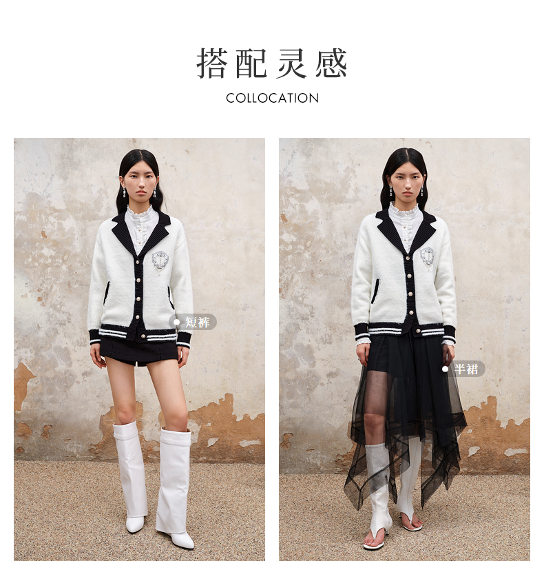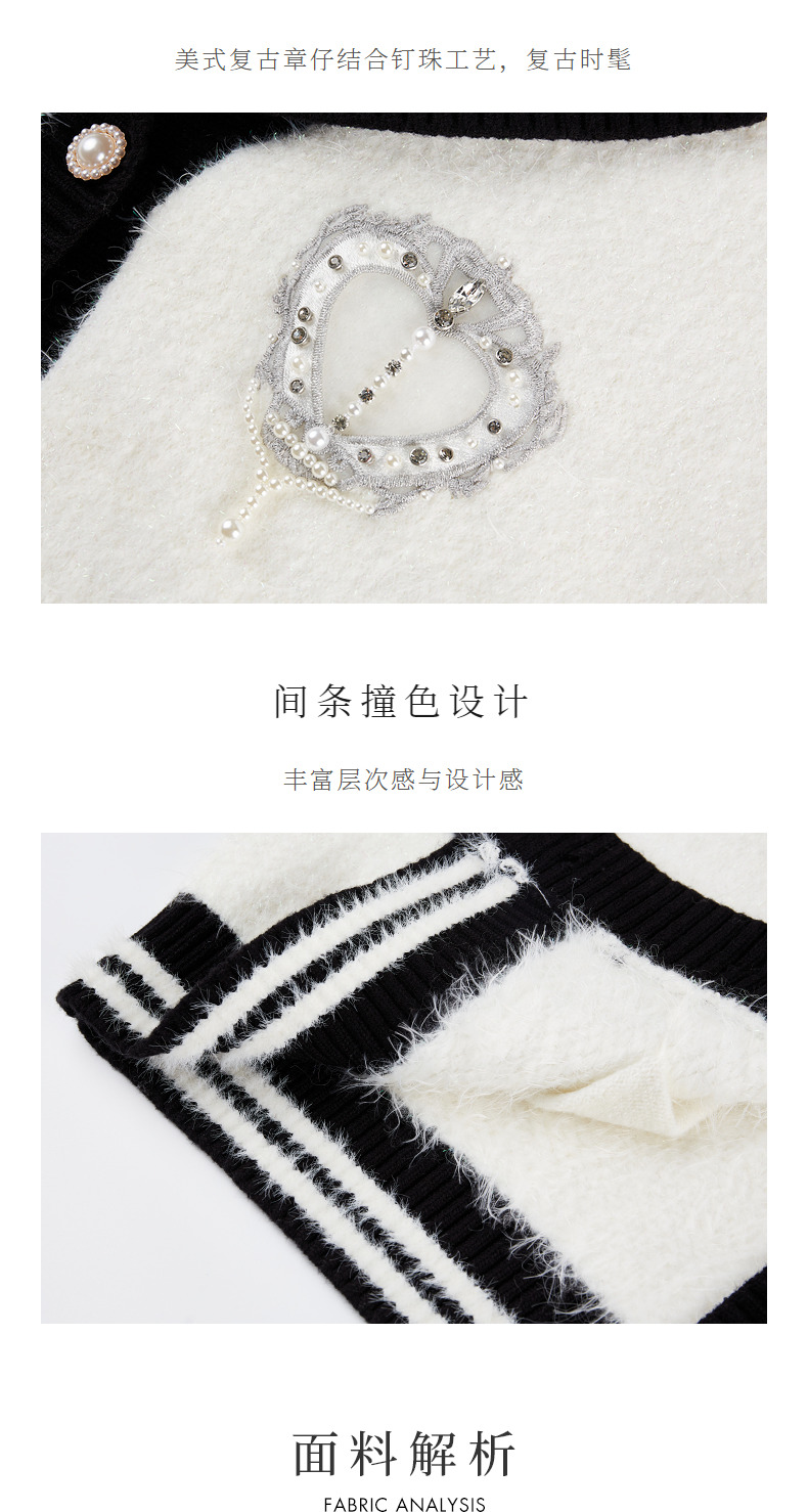 MAXRIENY精致复古氛围感撞色边毛衫外套秋冬高级气质感(货号:MS88JA511)