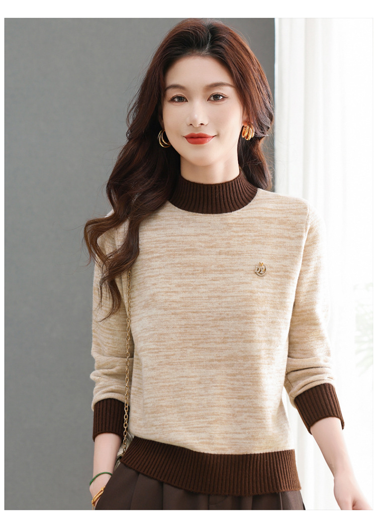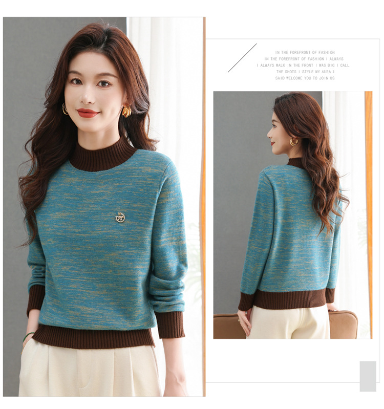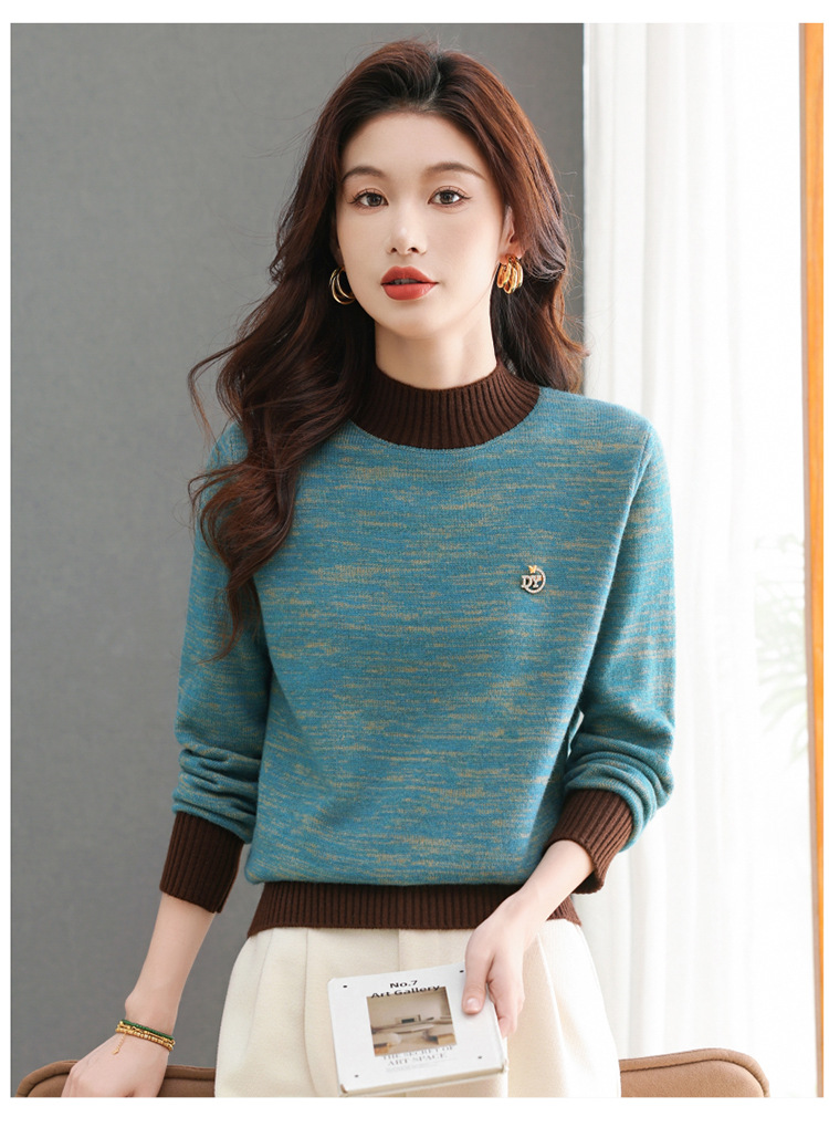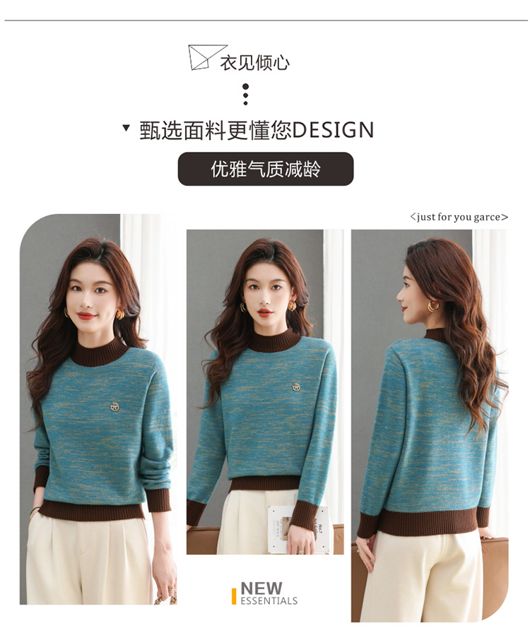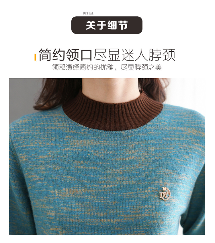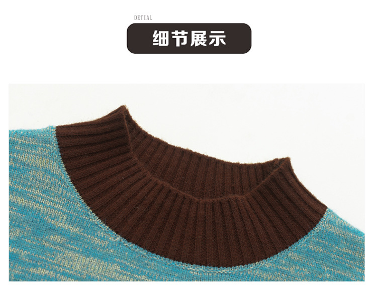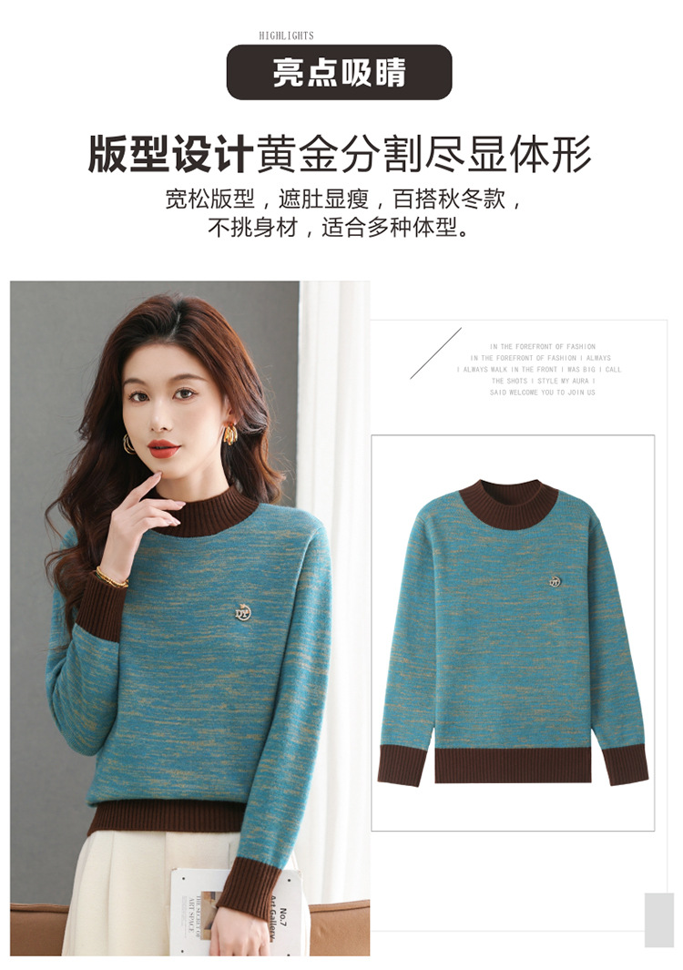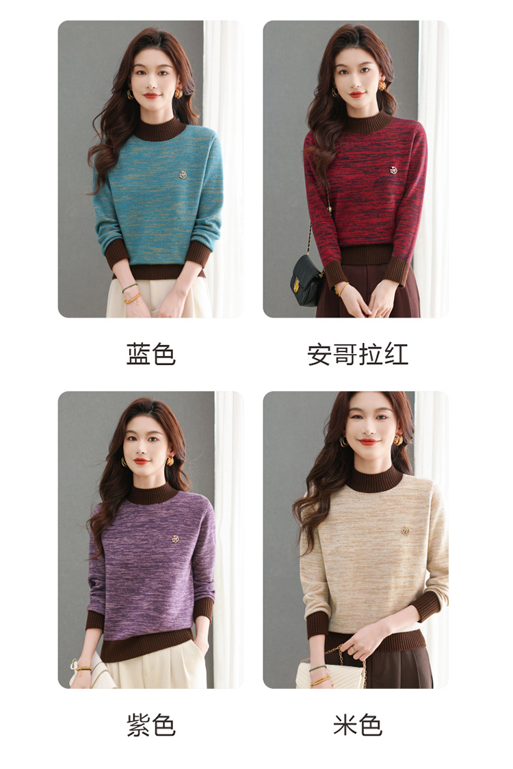 CC-101-98979半高领厚款毛衣女秋冬2024新款拼色羊毛针织衫内搭慵懒打底衫上衣