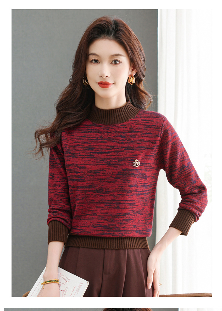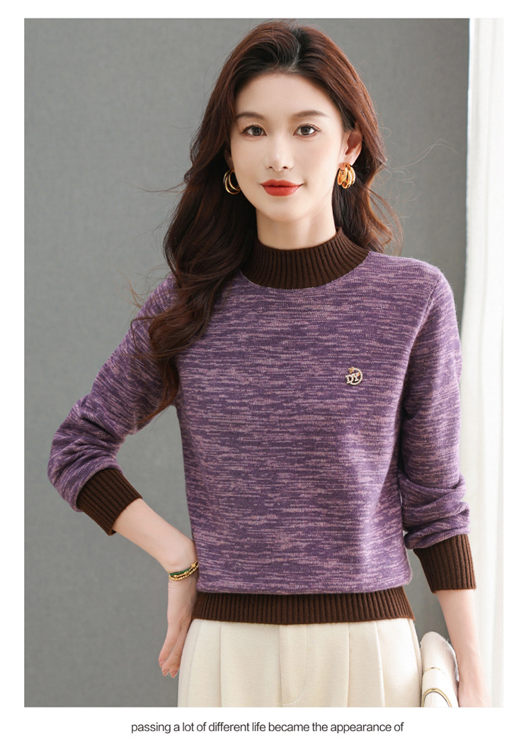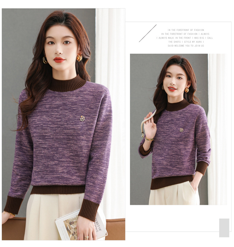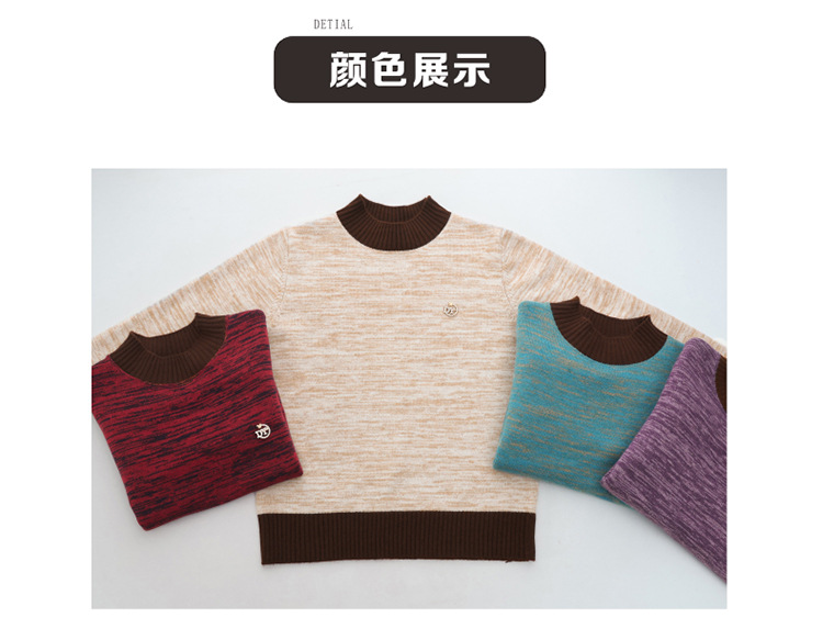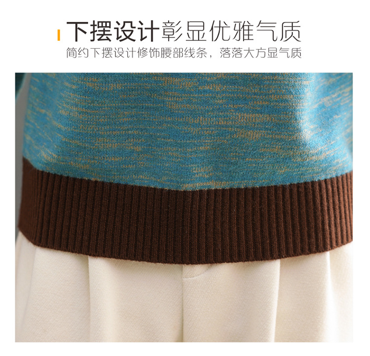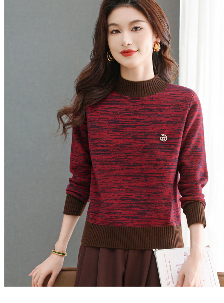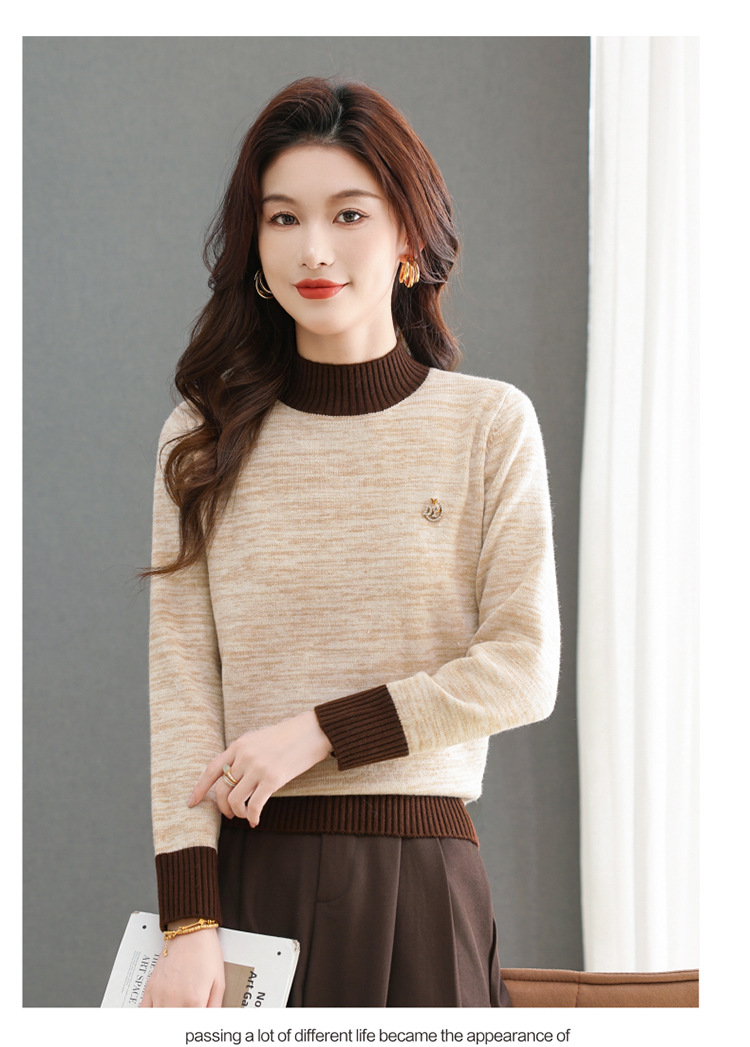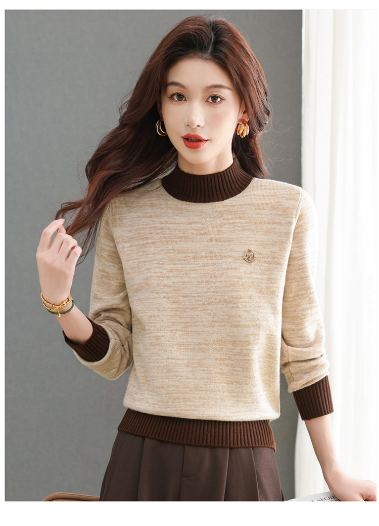 CC-101-98979半高领厚款毛衣女秋冬2024新款拼色羊毛针织衫内搭慵懒打底衫上衣