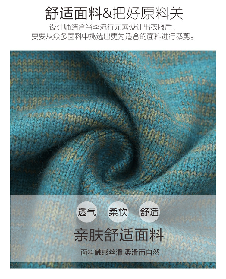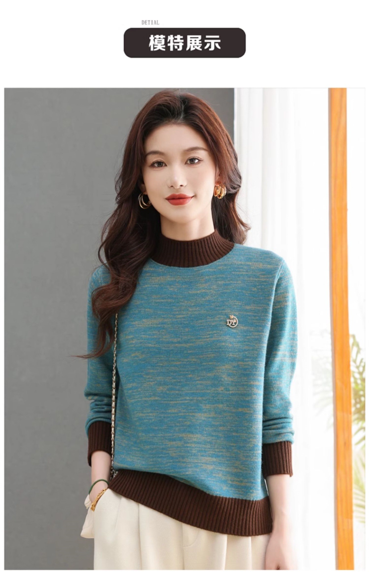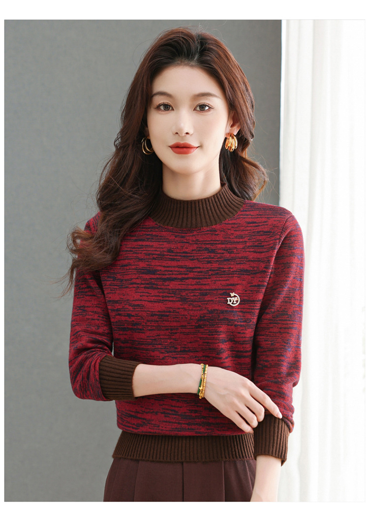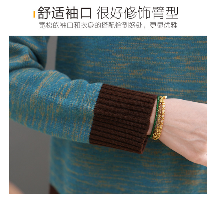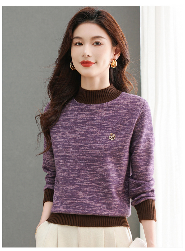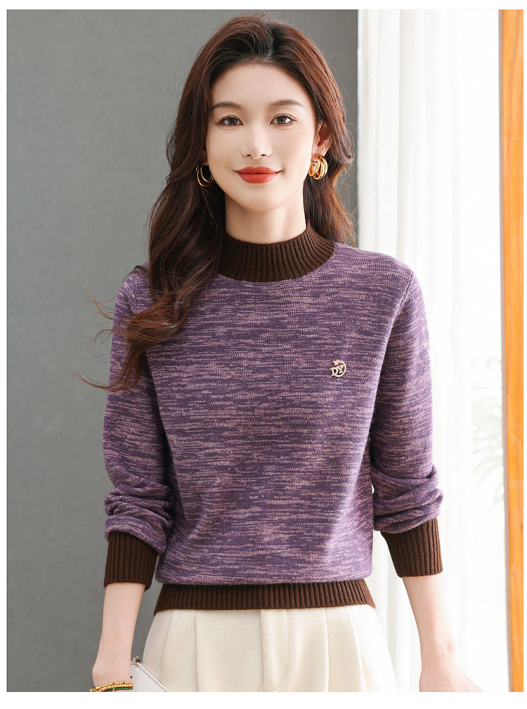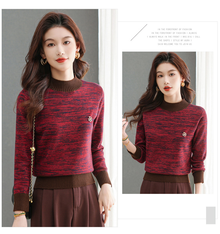 CC-101-98979半高领厚款毛衣女秋冬2024新款拼色羊毛针织衫内搭慵懒打底衫上衣