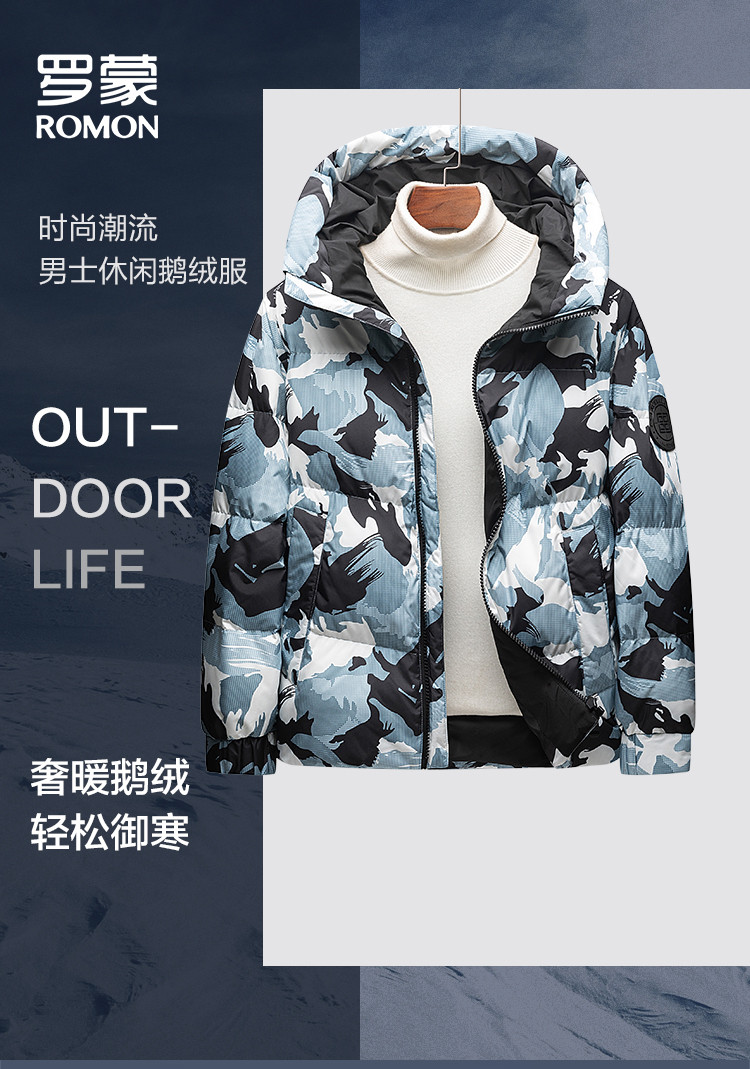 30W2305【白鹅绒】罗蒙秋冬男装羽绒服男士短款休闲连帽款保暖羽绒服外套男