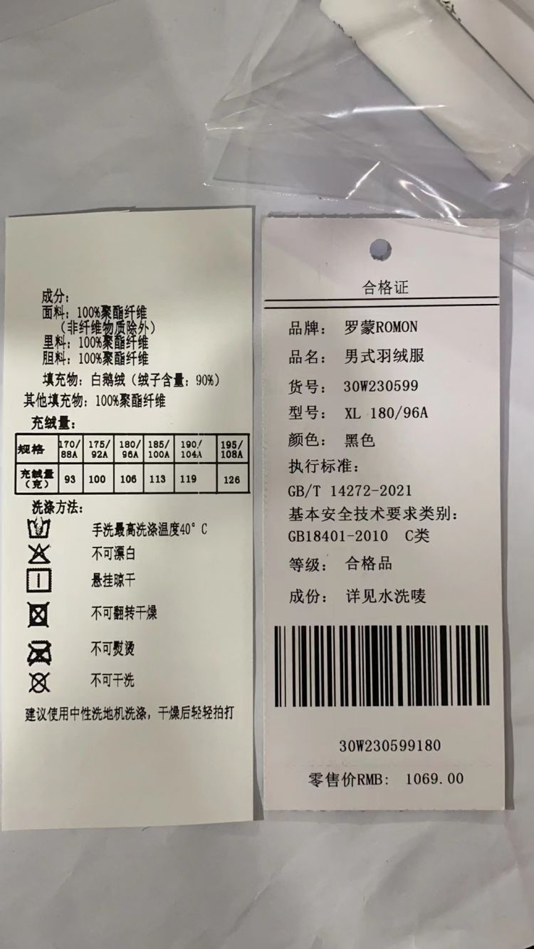 里料:100%聚酯纤维 胆料:100%聚酯纤维