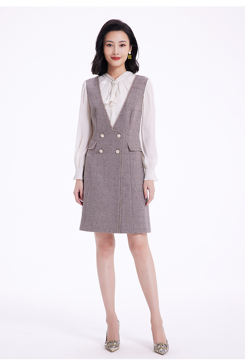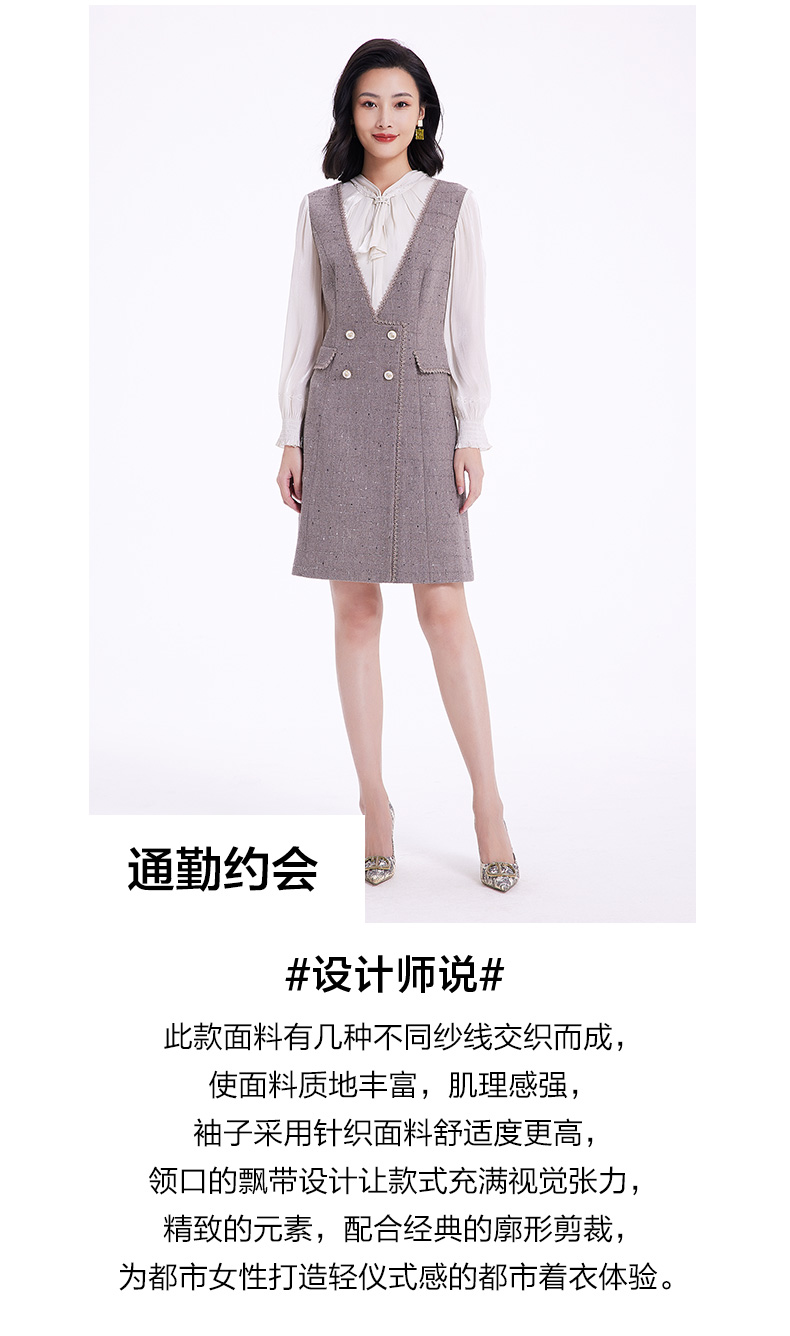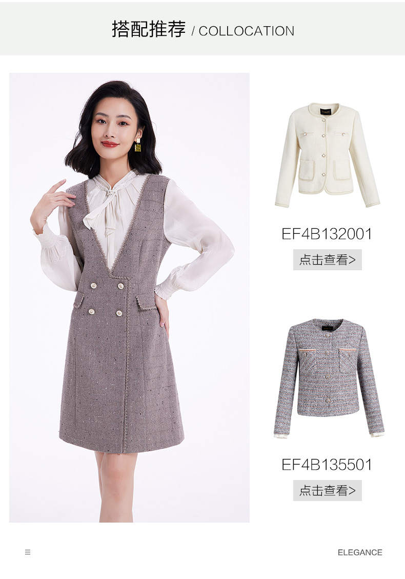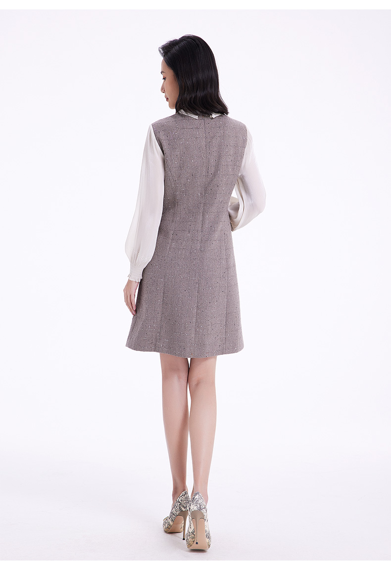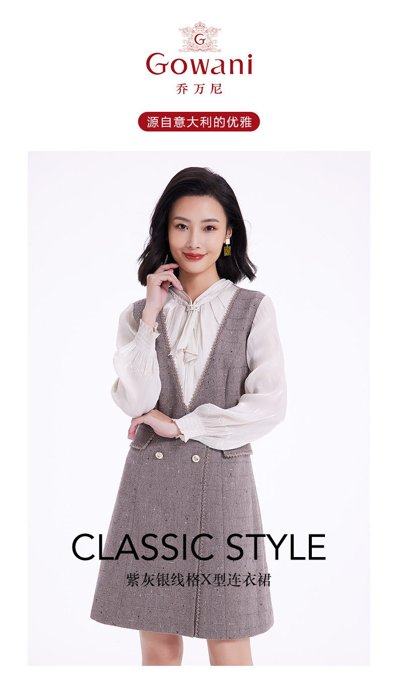 乔万尼连衣裙女新款秋冬小香风修身设计中长羊毛裙EF4E235