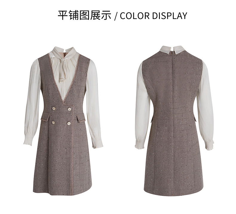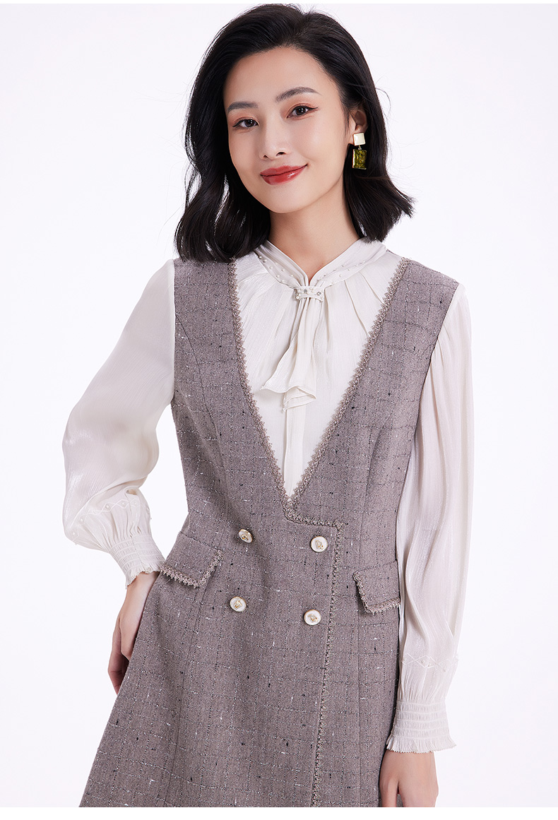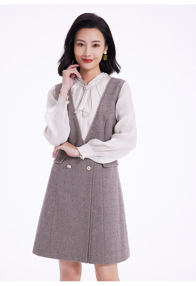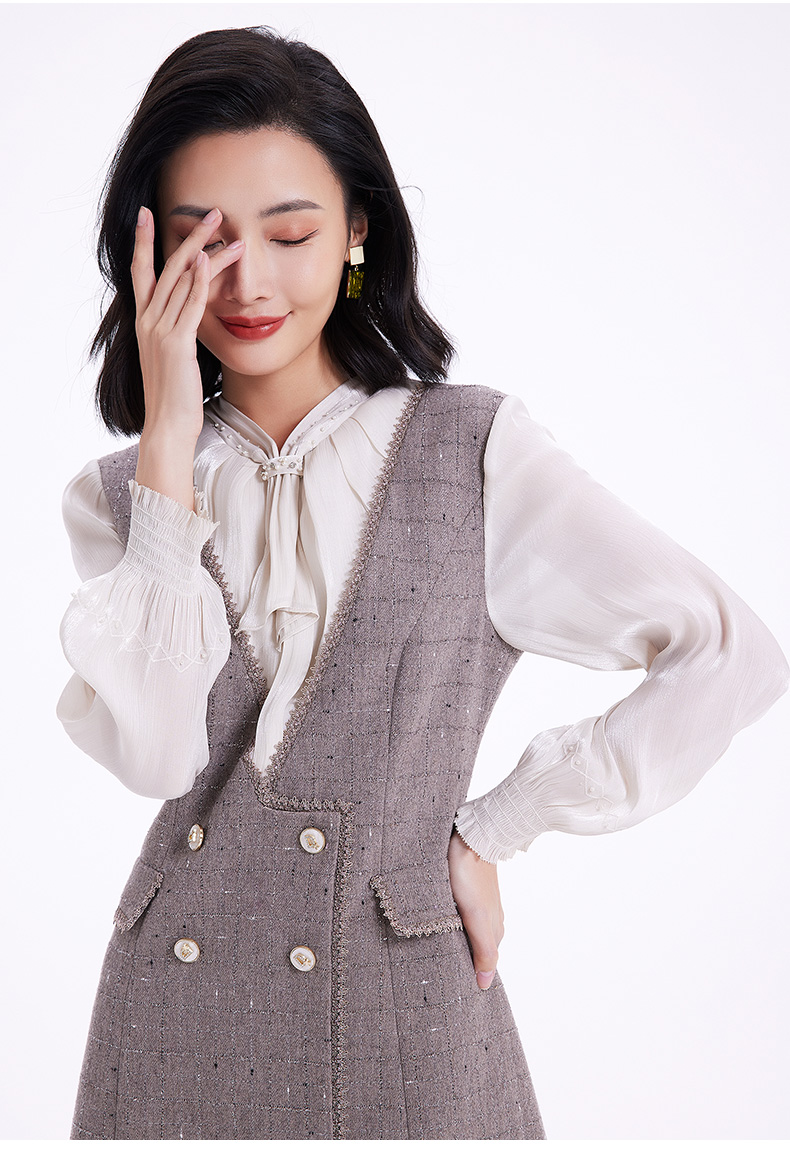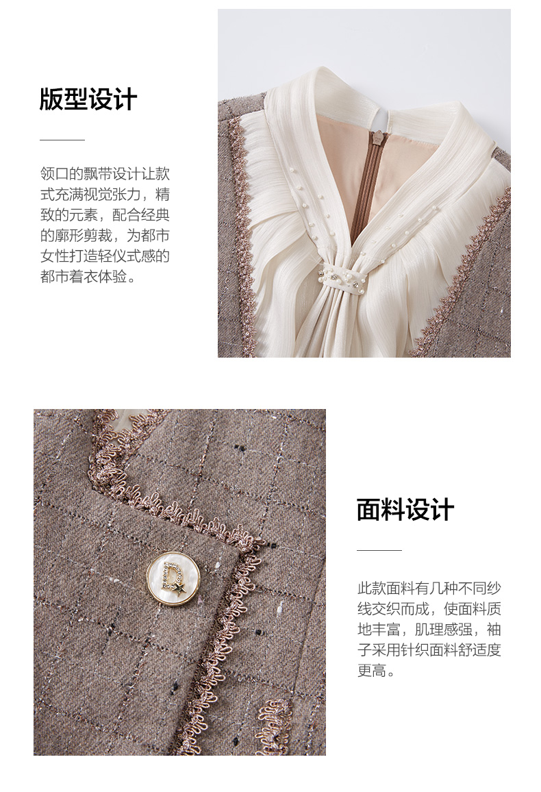 乔万尼连衣裙女新款秋冬小香风修身设计中长羊毛裙EF4E235