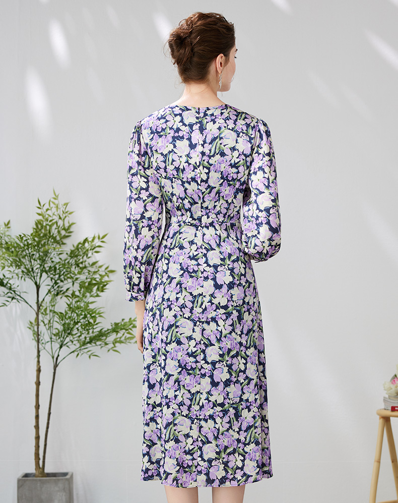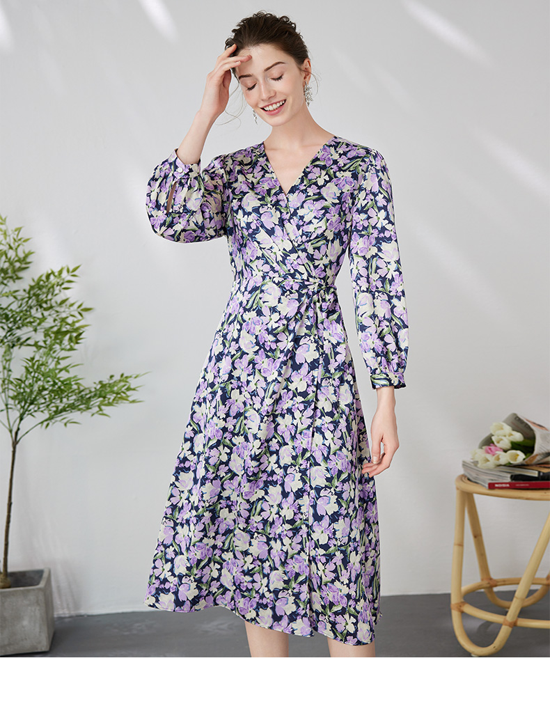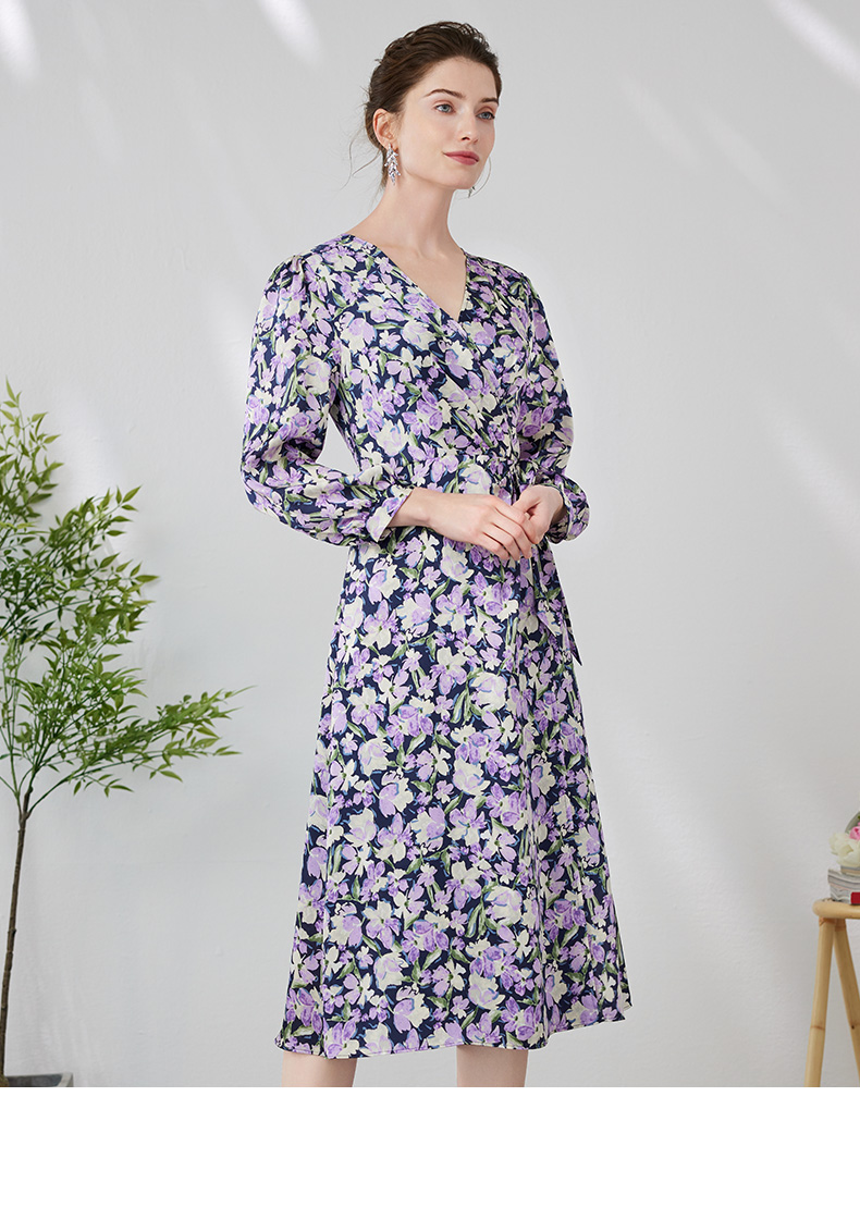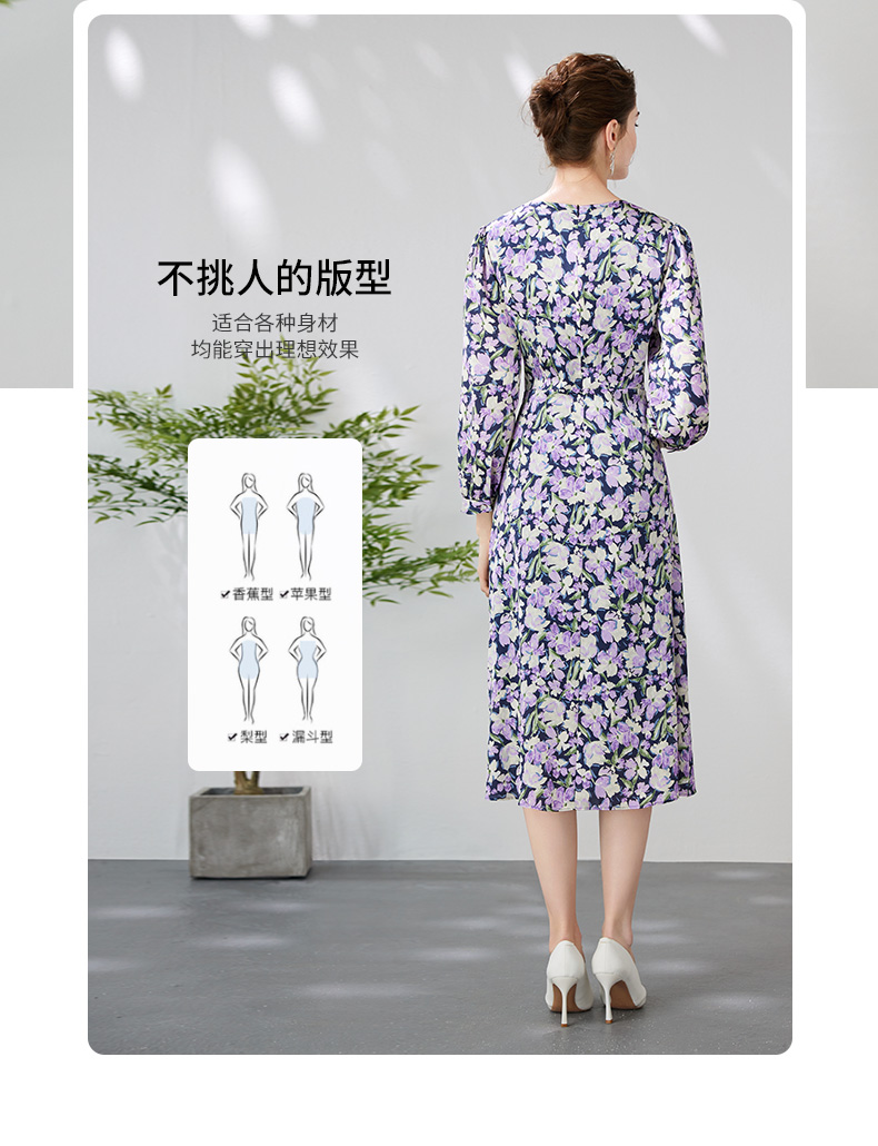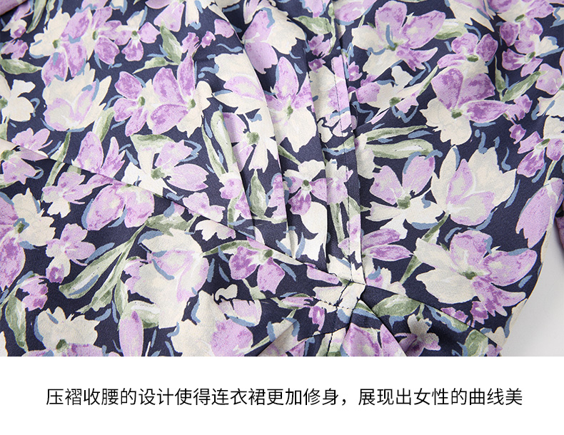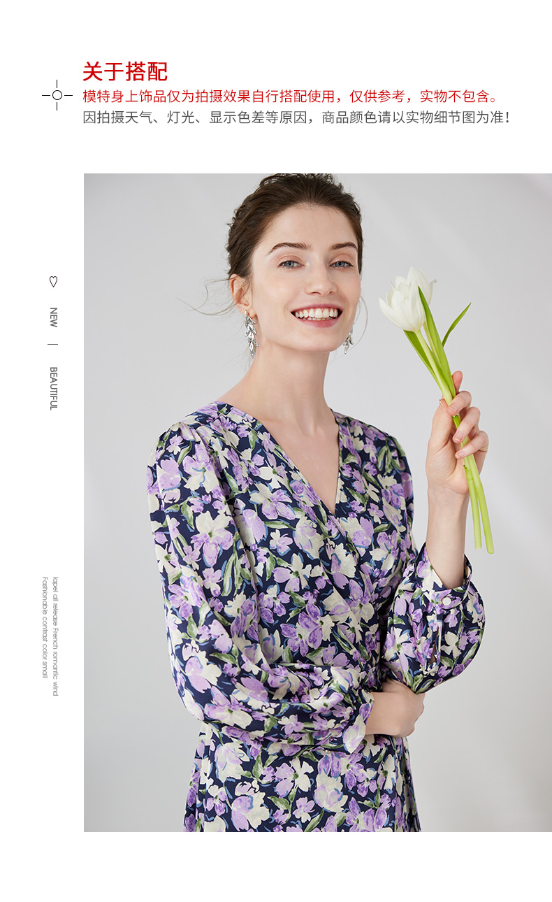 EITIE爱特爱法式优雅气质V领收腰紫色印花a字连衣裙春季新款A2407313