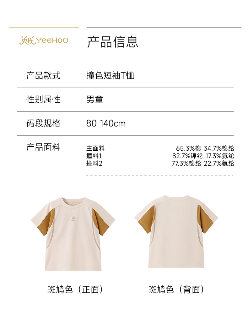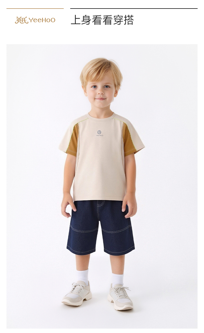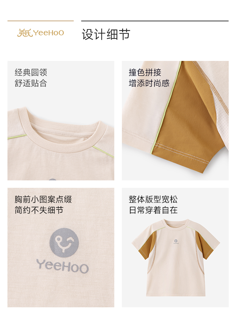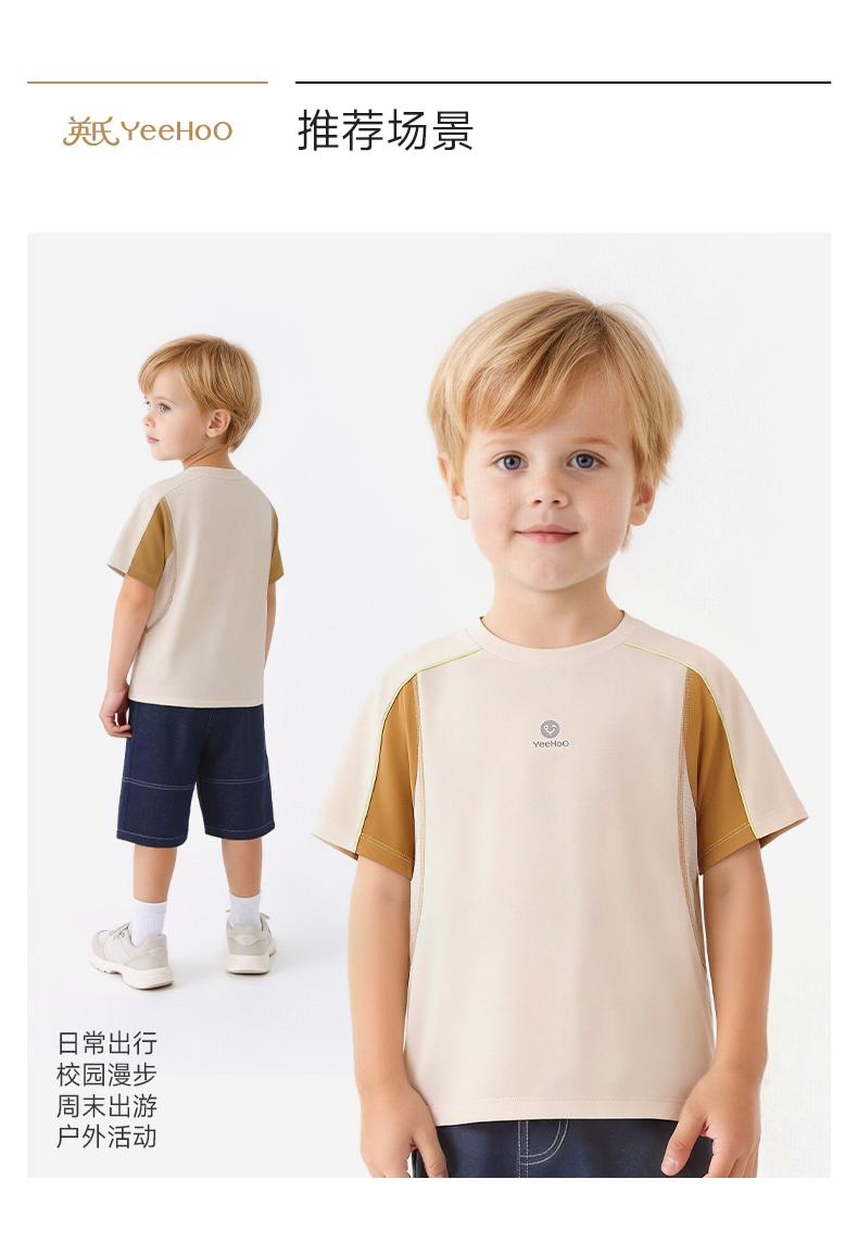 【商场同款】英氏男童夏季新款T恤男宝圆领短袖儿童短信T恤上衣打底