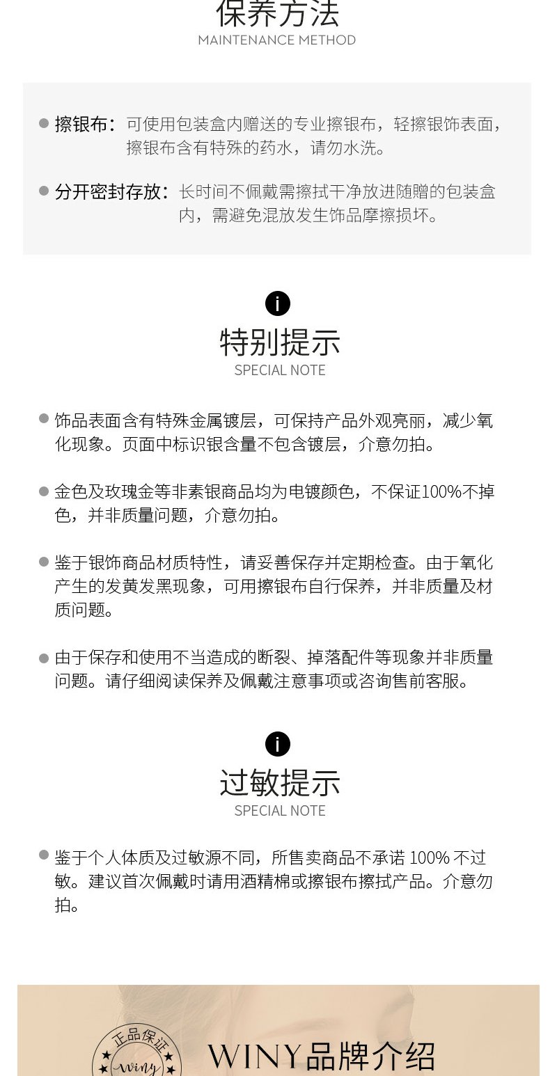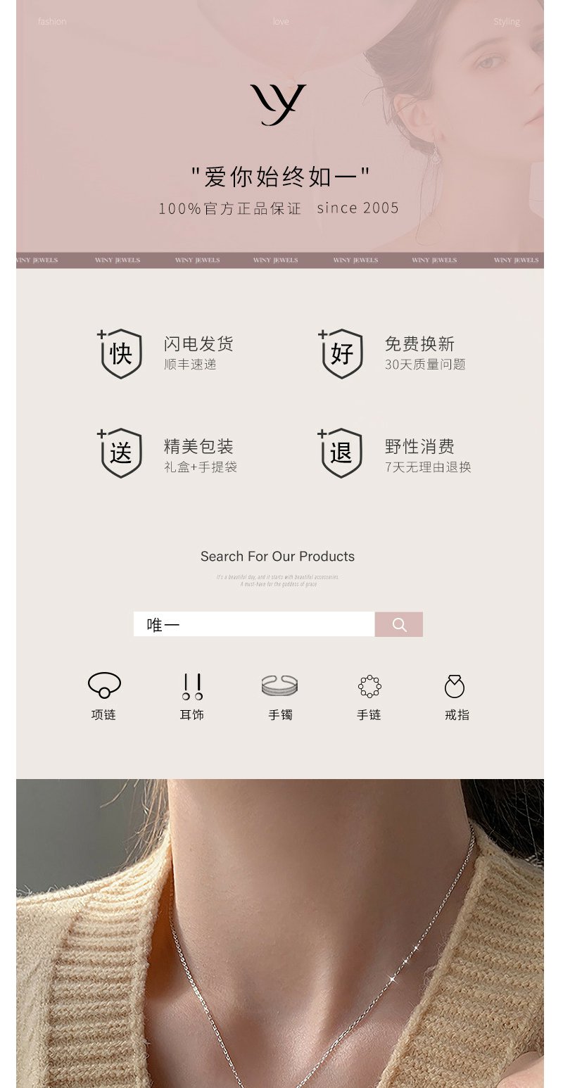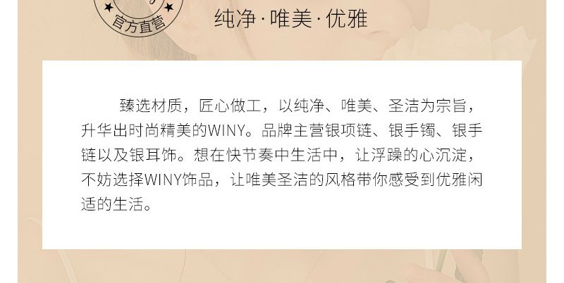 唯一winy是国内网络饰品品牌的先行者。 创立初衷源于对亲情、爱情、友情的珍惜唯一,用心做好每一件饰品为您守护人生中如珠宝般珍贵动人的那些时刻那怕岁月流转,唯爱始终如一。