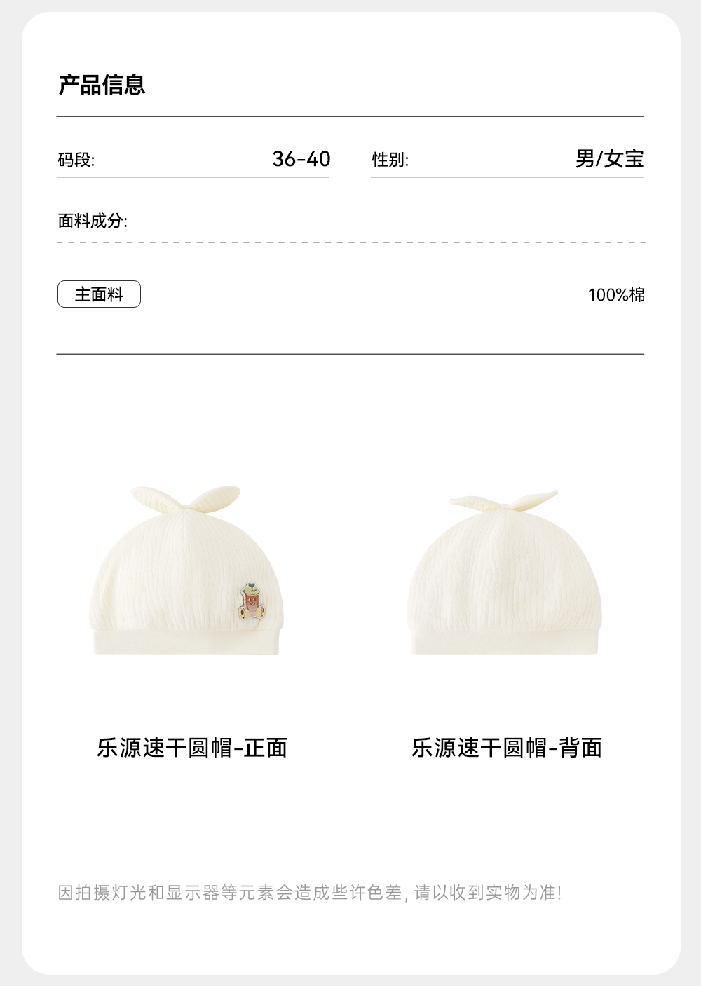 【商场同款】英氏婴幼儿胎帽四季新生儿纯棉帽子新款婴儿圆帽