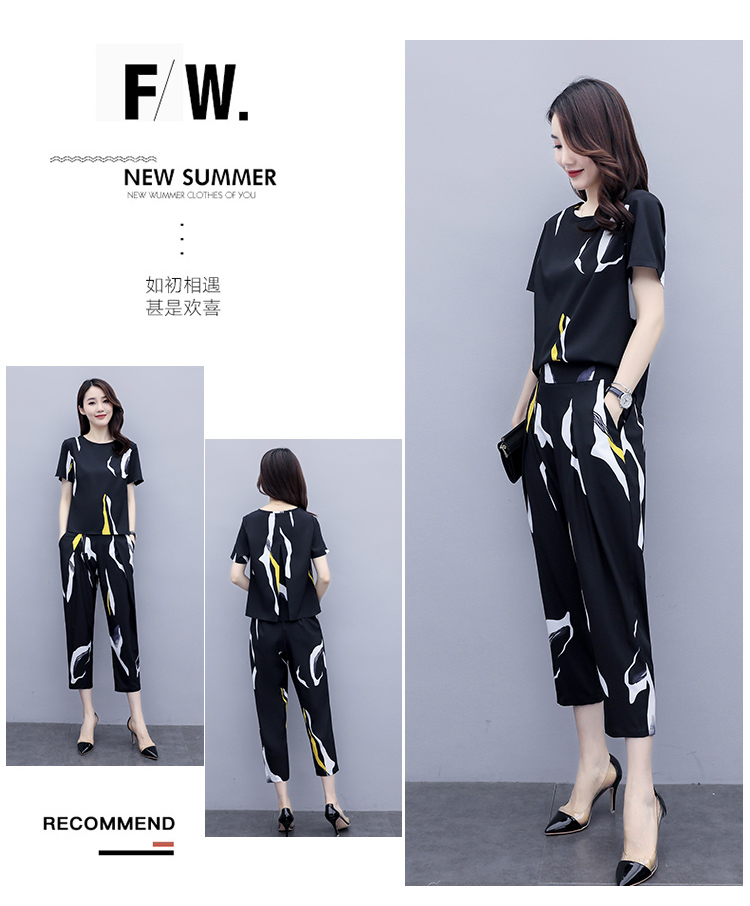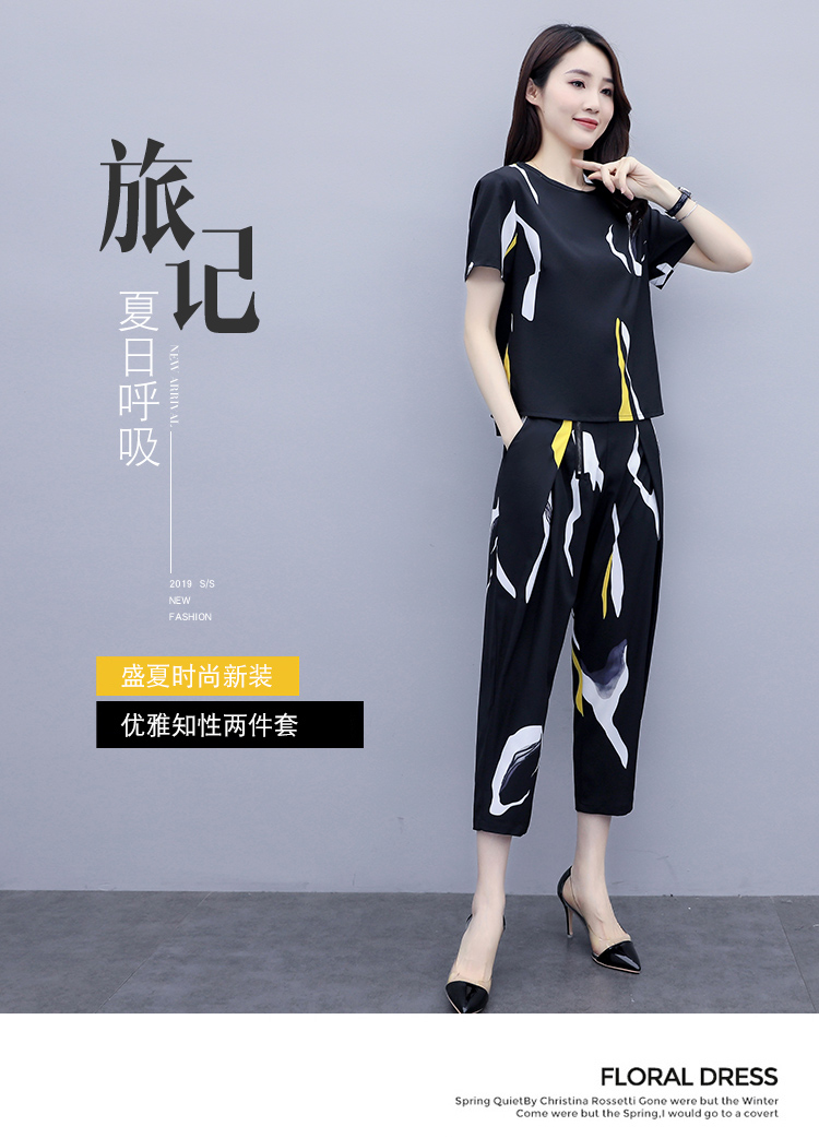 WZNH-XX2355新款名媛小香风减龄大码洋气印花两件套