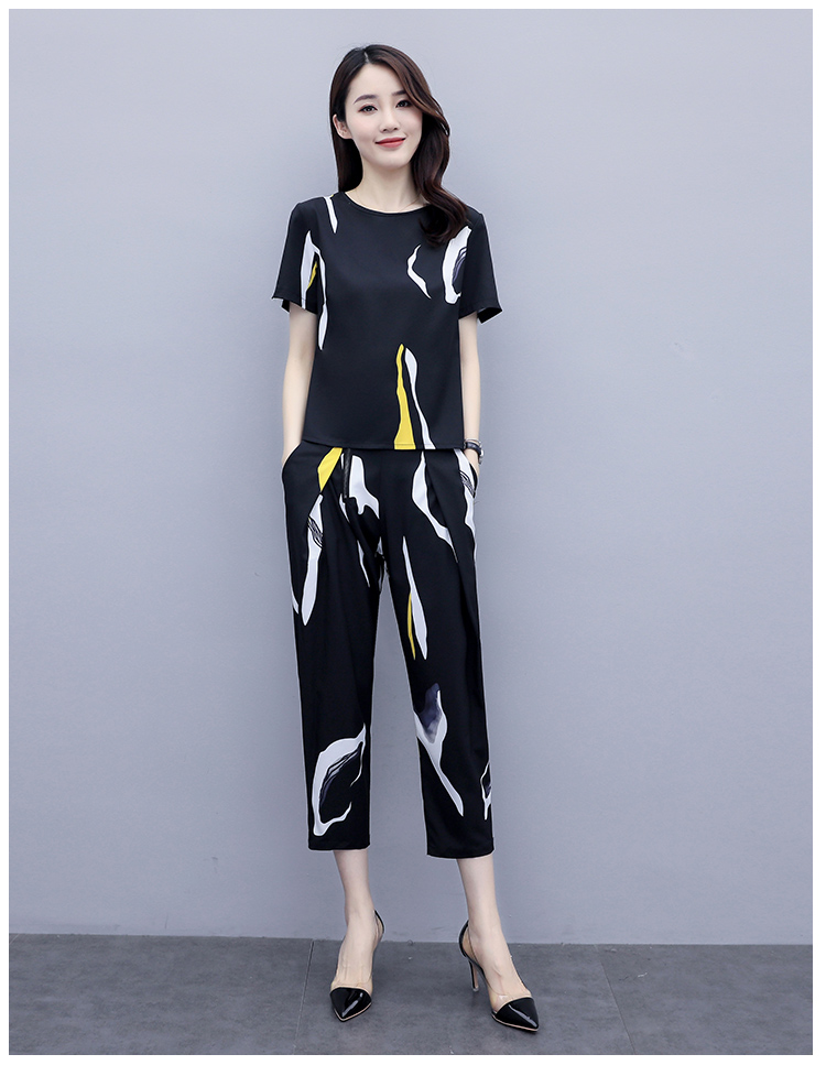 ZYQS-G0180时尚气质冰丝高腰垂感阔腿裤两件套