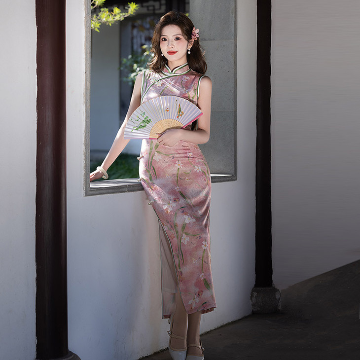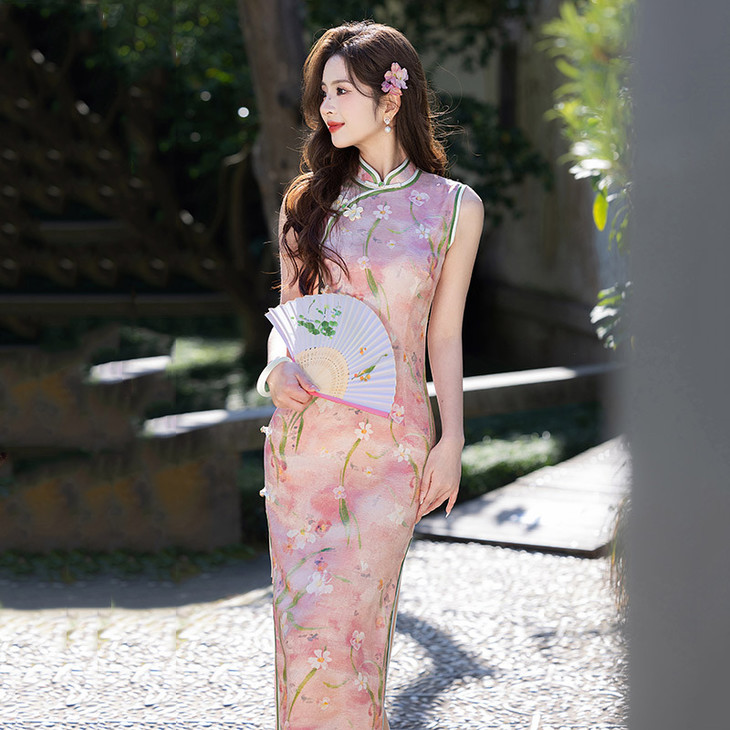 绝美粉色国风新中式长款旗袍改良高级感SC20994