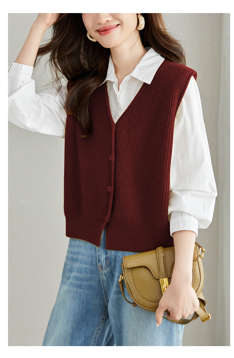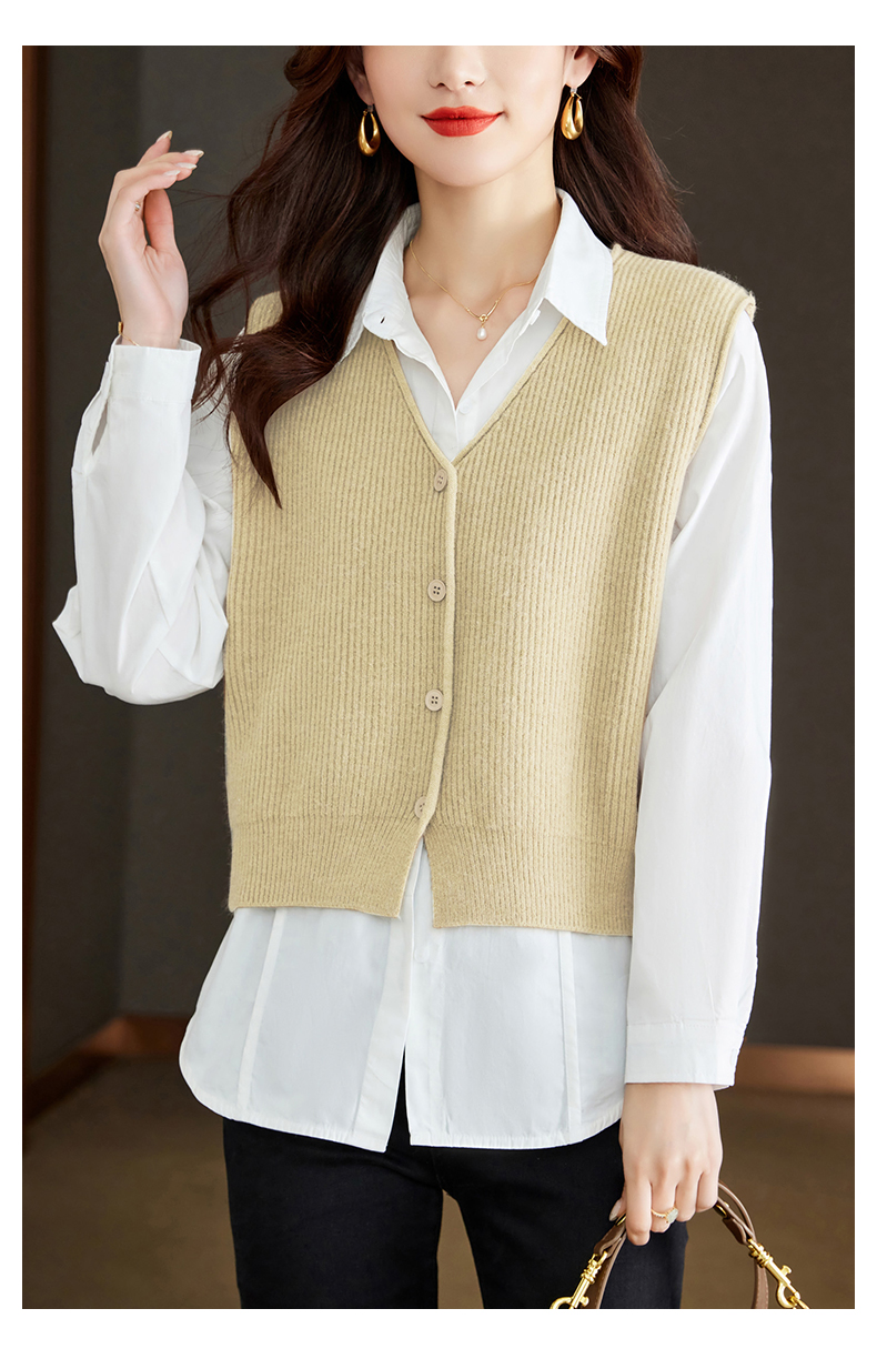 馥迦V领叠穿针织马甲