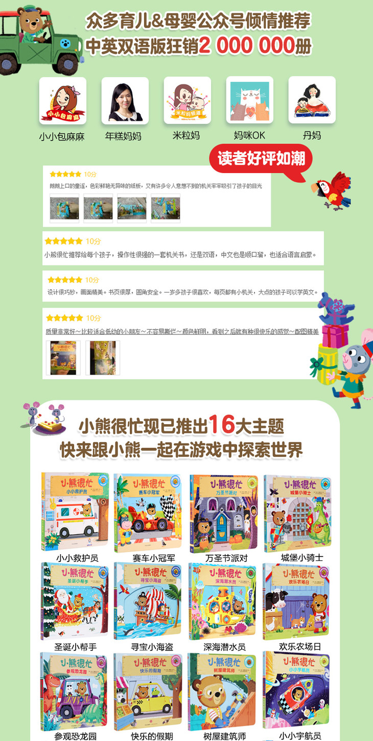 来自英国的小熊很忙系列,现已全球畅销800多万册,一直占据着各大童书排行榜,好评如潮!