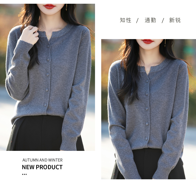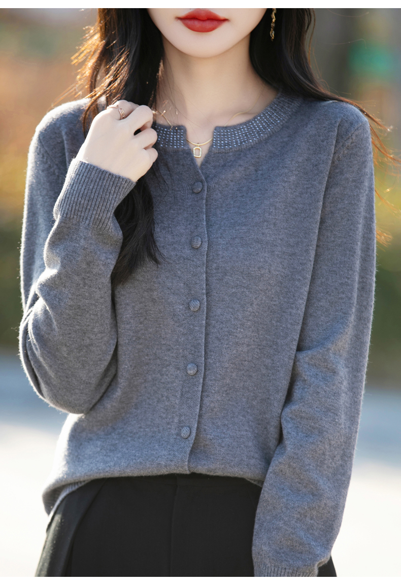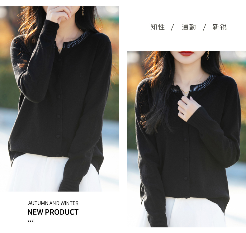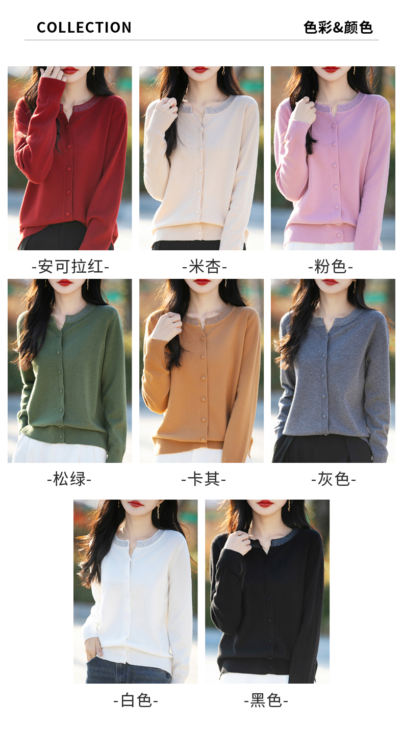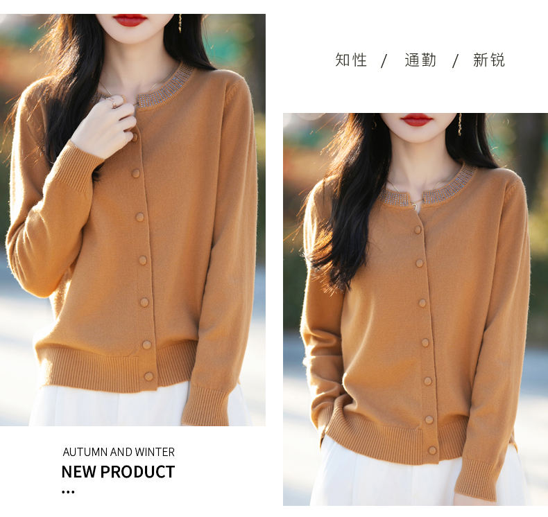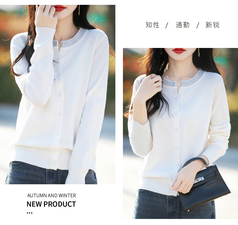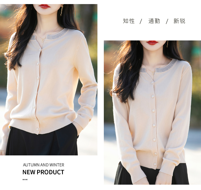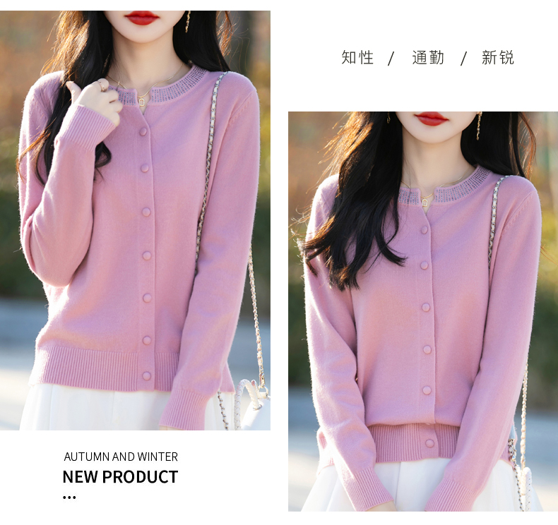 纤束马小香风圆领针织开衫 N-508
