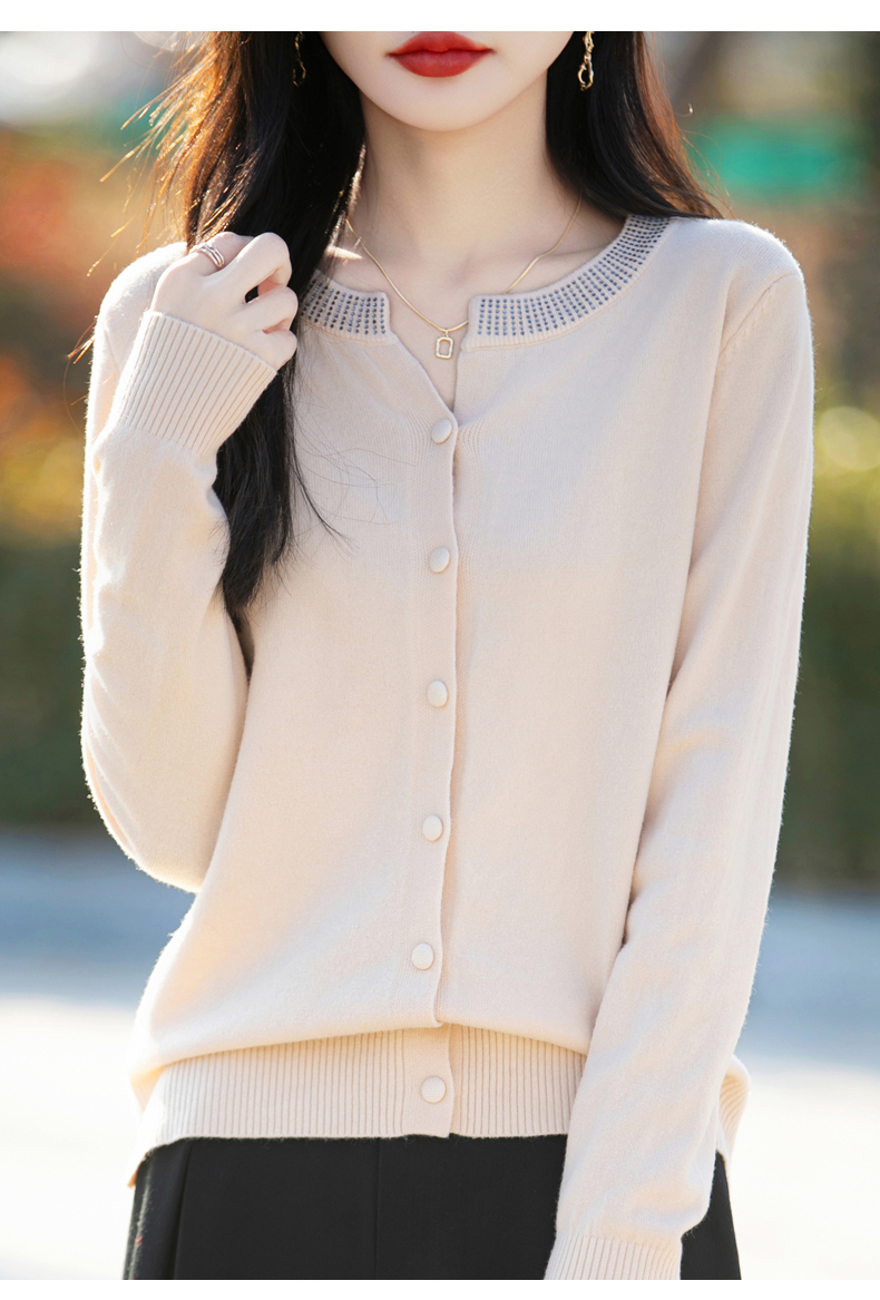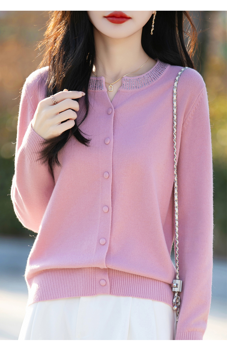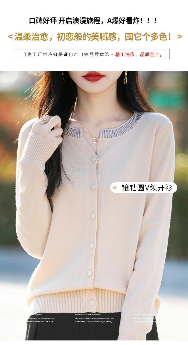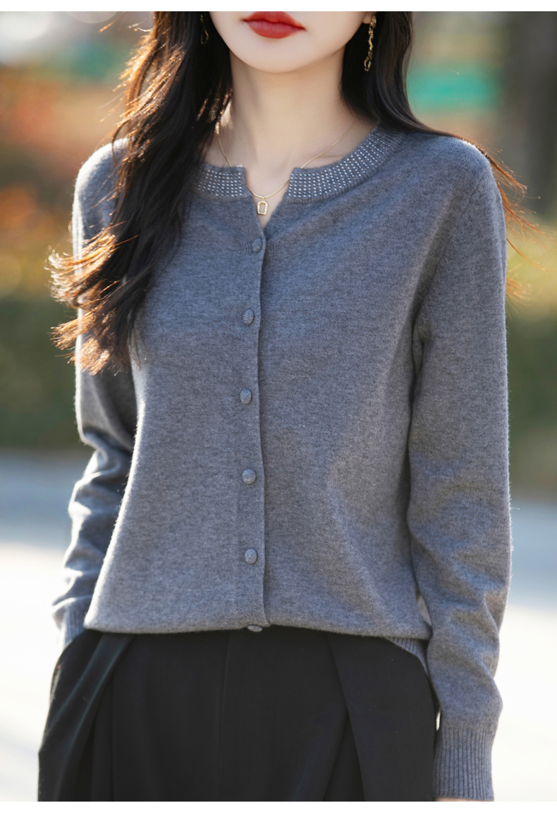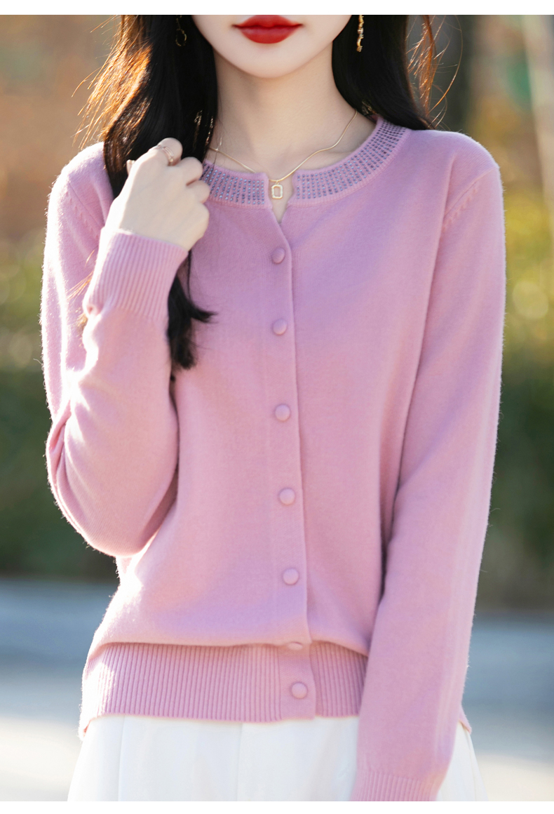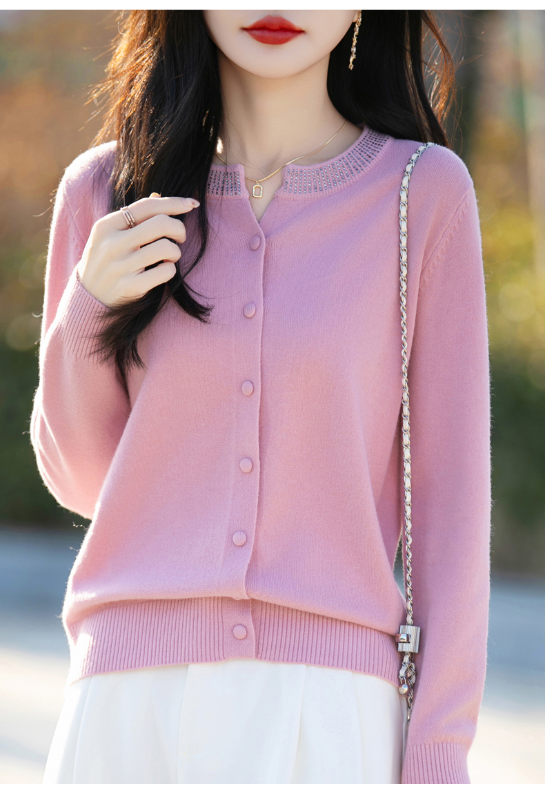 纤束马小香风圆领针织开衫 N-508