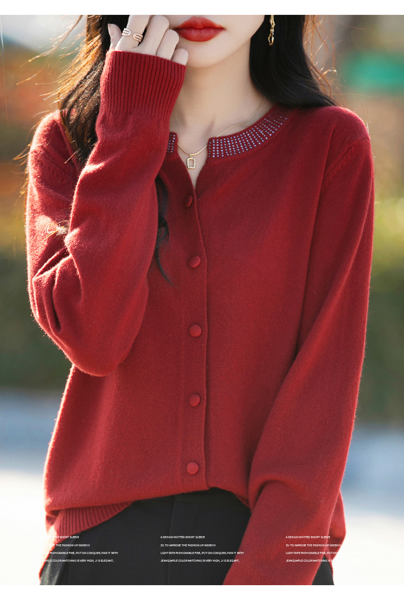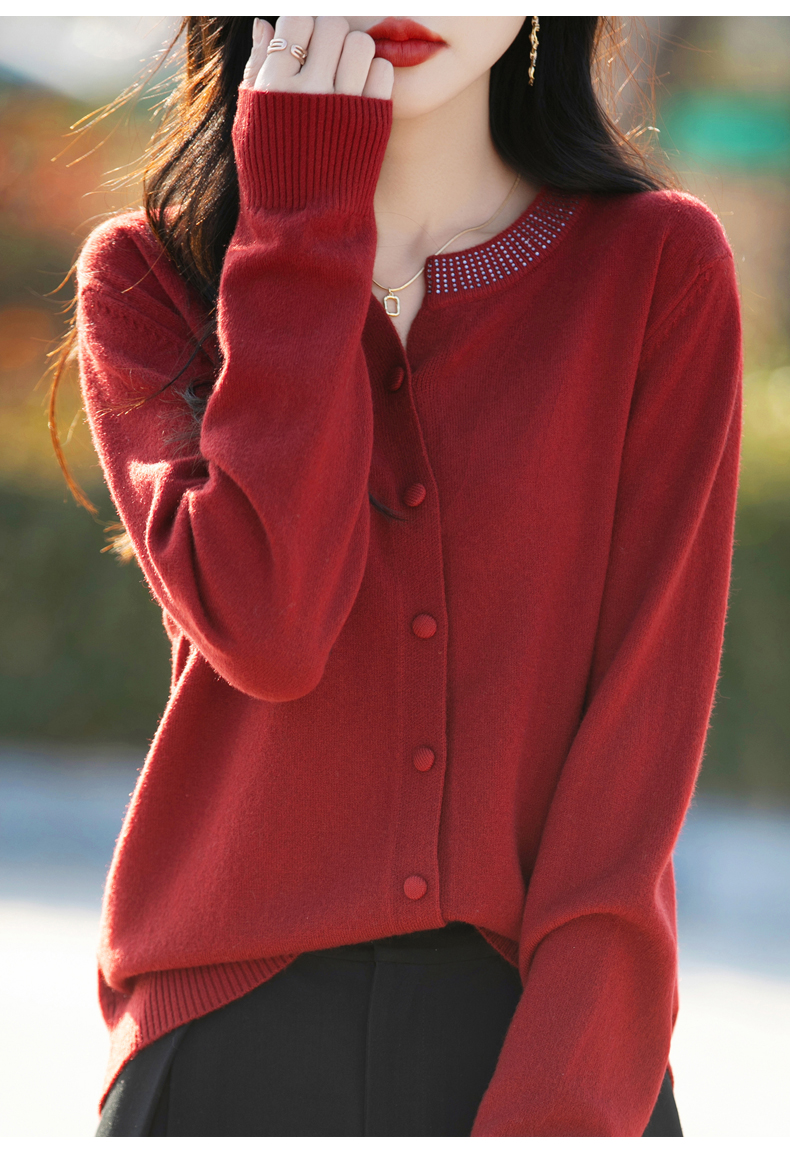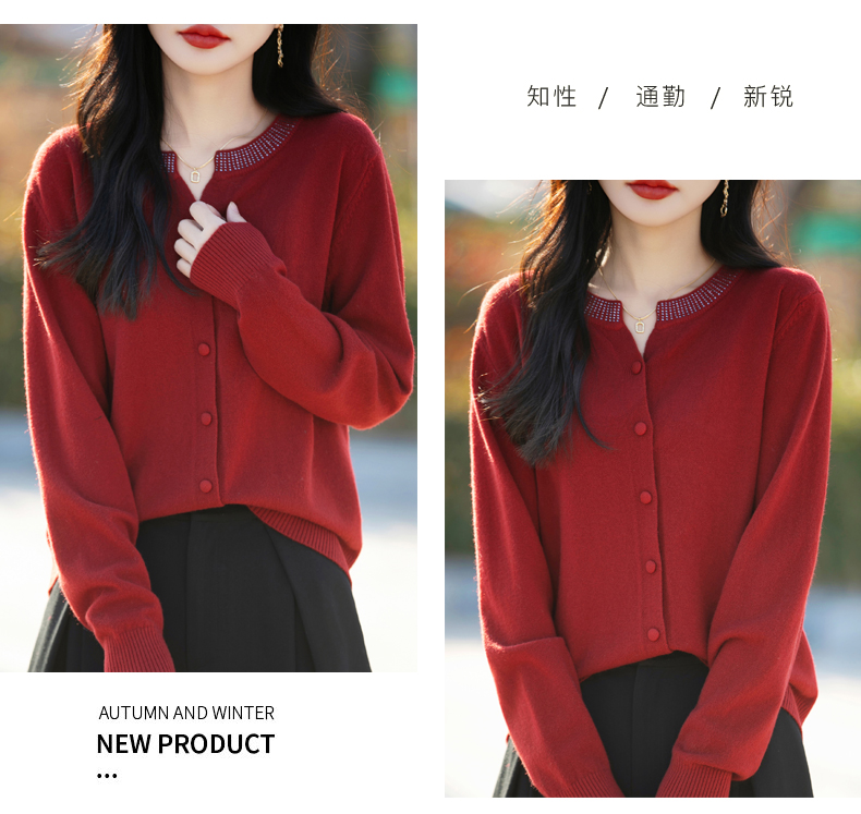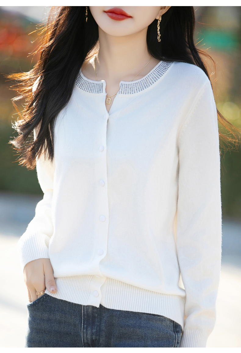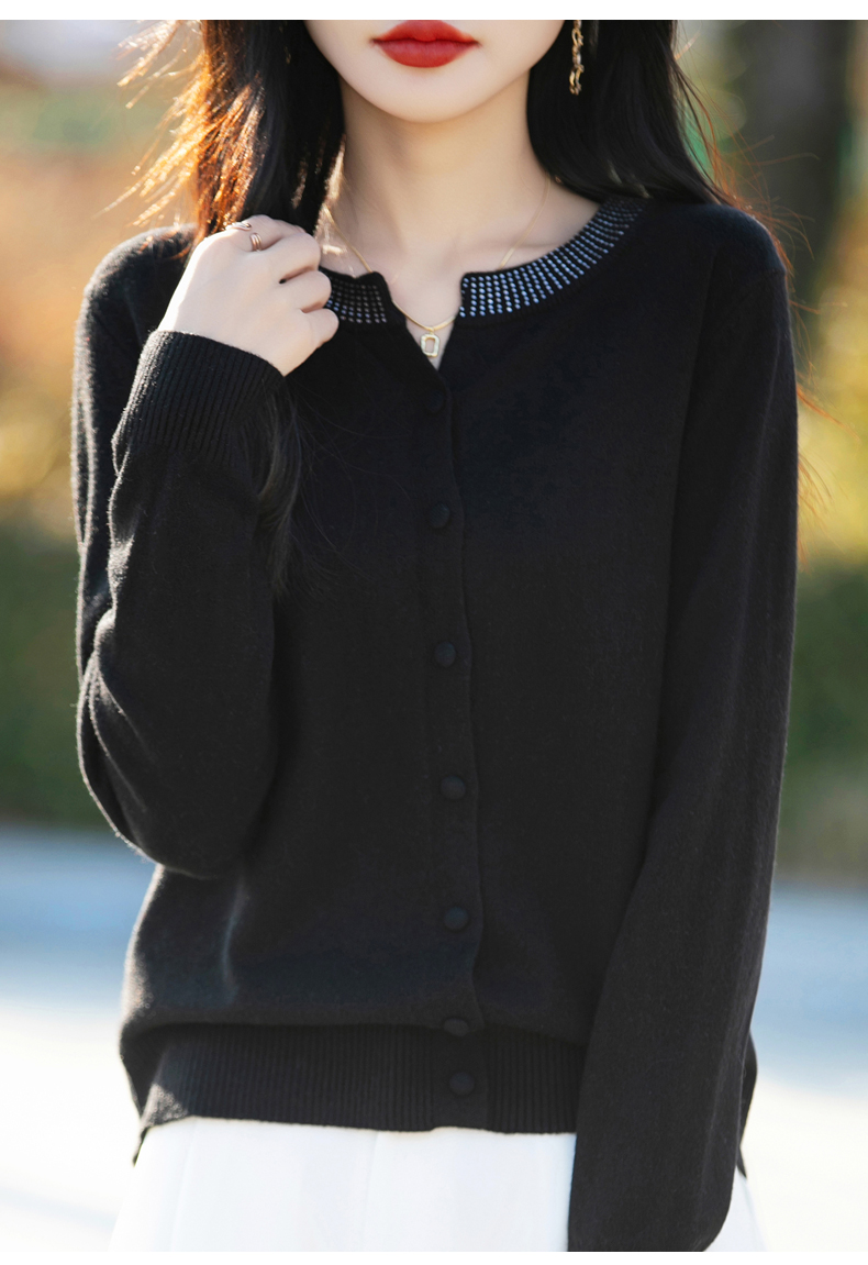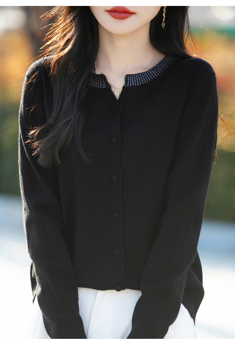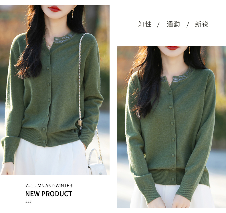 纤束马小香风圆领针织开衫 N-508