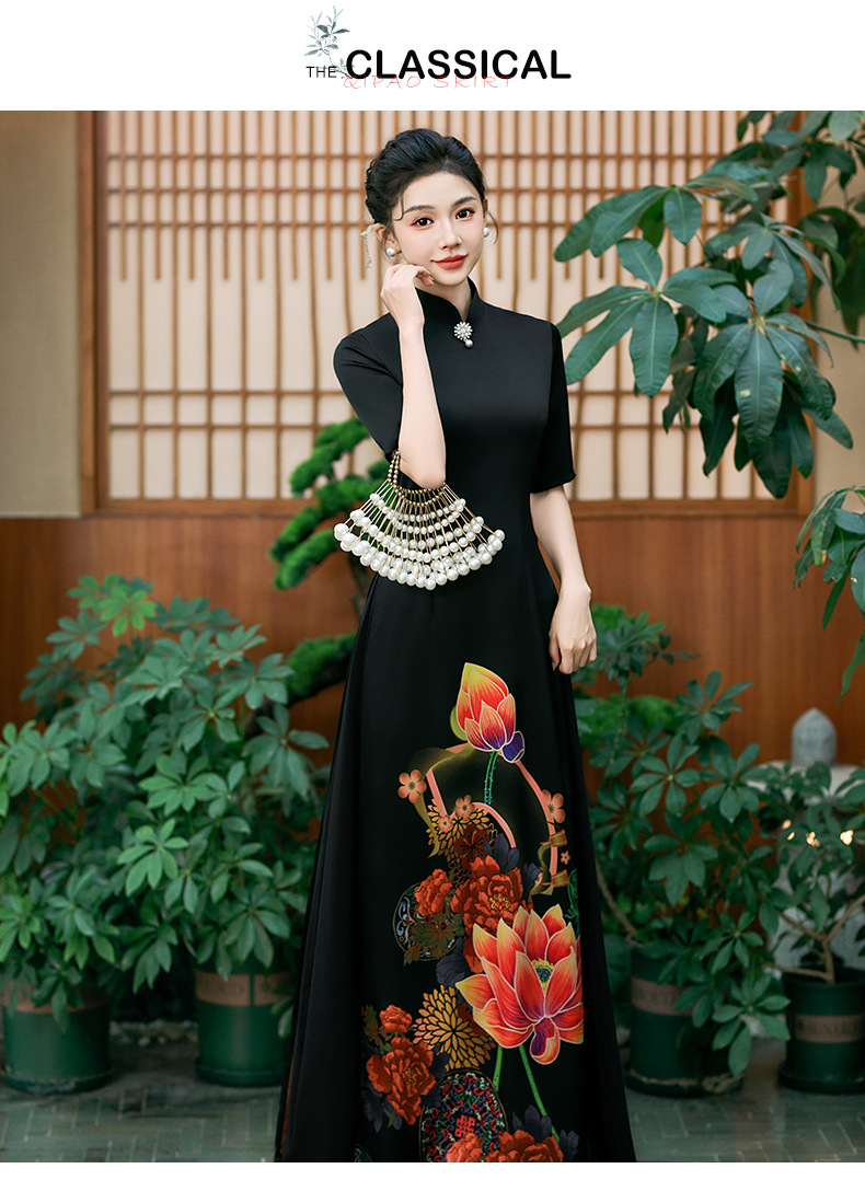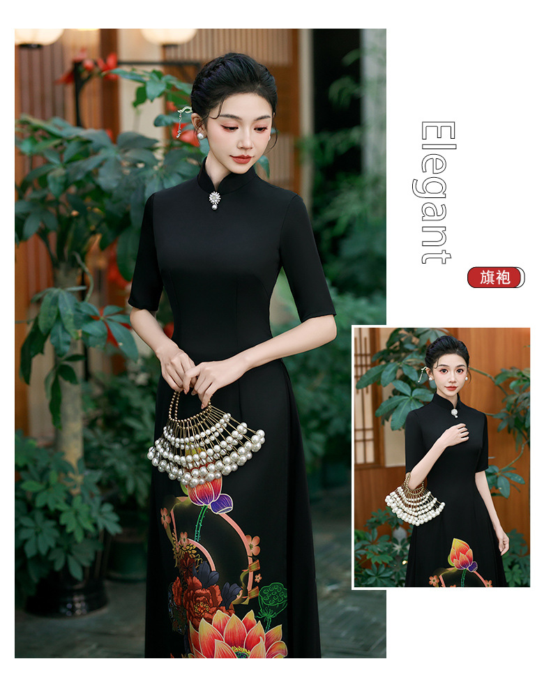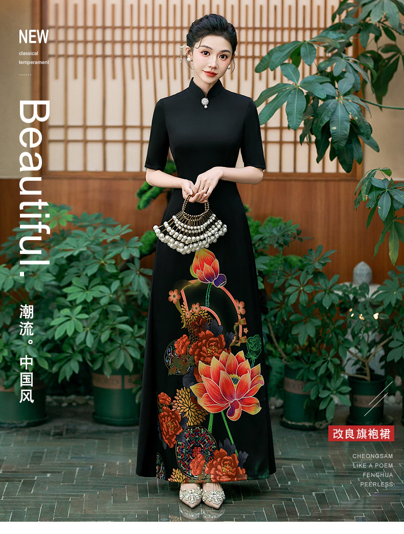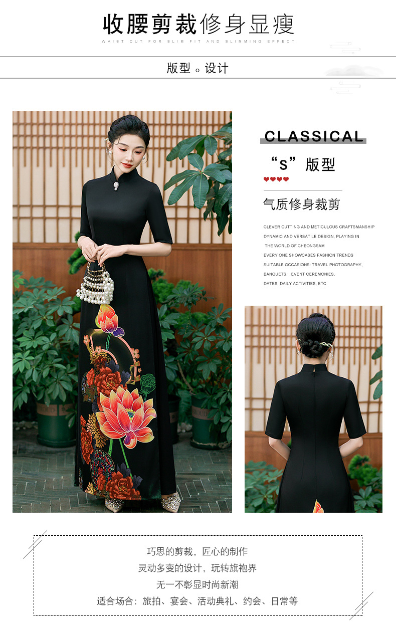 QCYJ 190奥黛走秀旗袍连衣裙大气演出礼服
