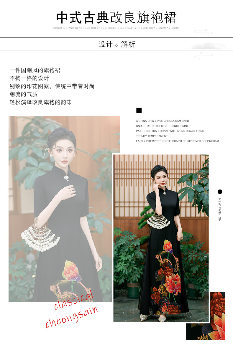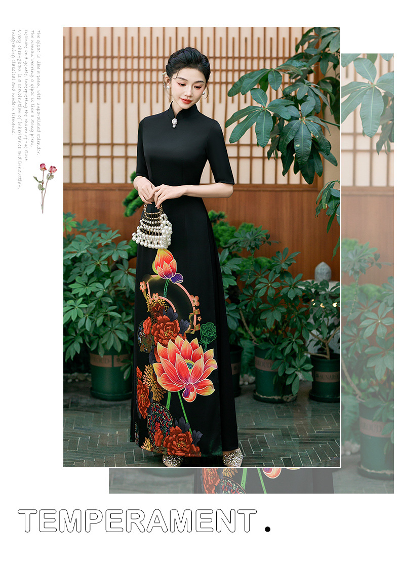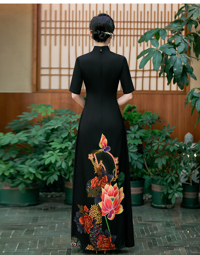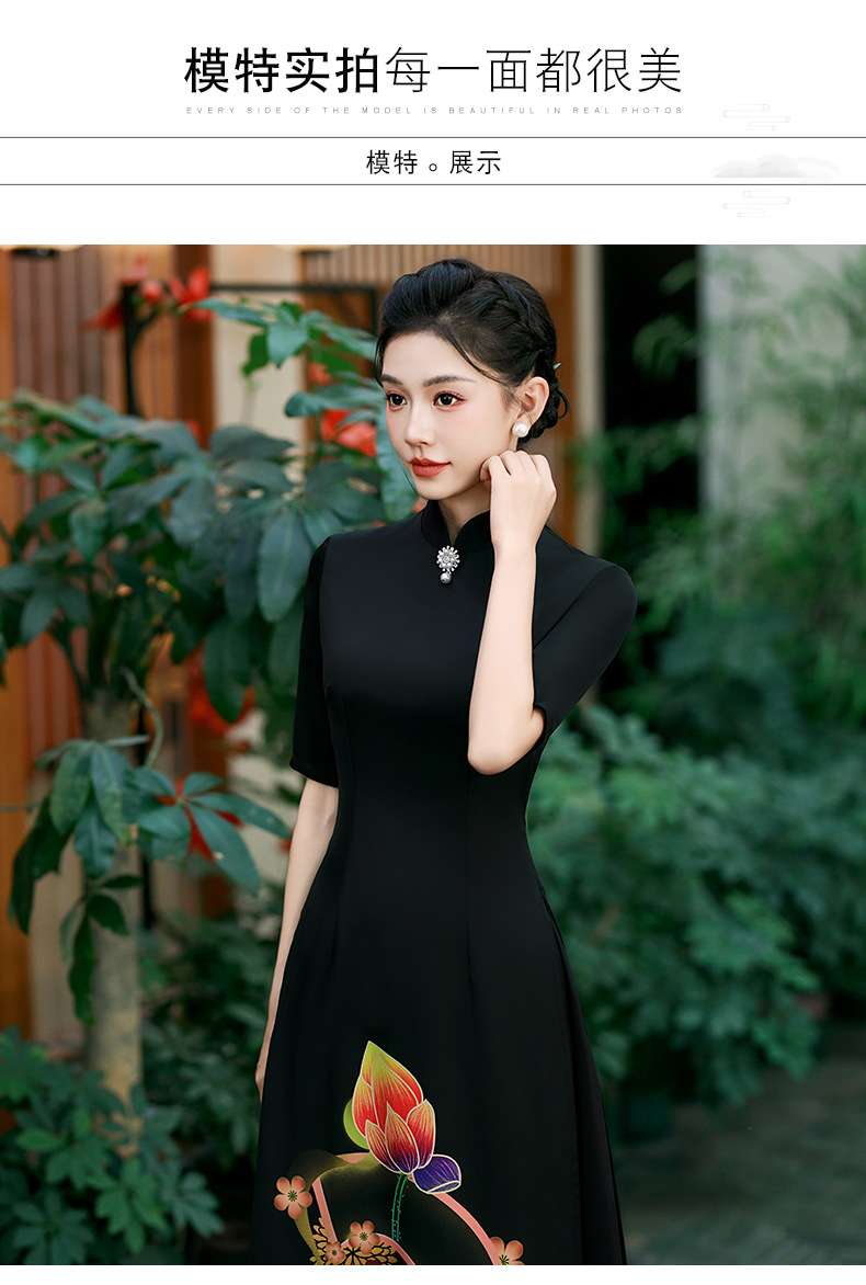 QCYJ 190奥黛走秀旗袍连衣裙大气演出礼服