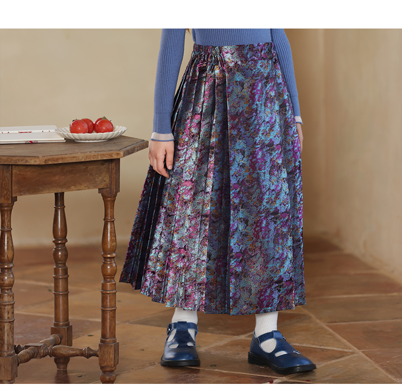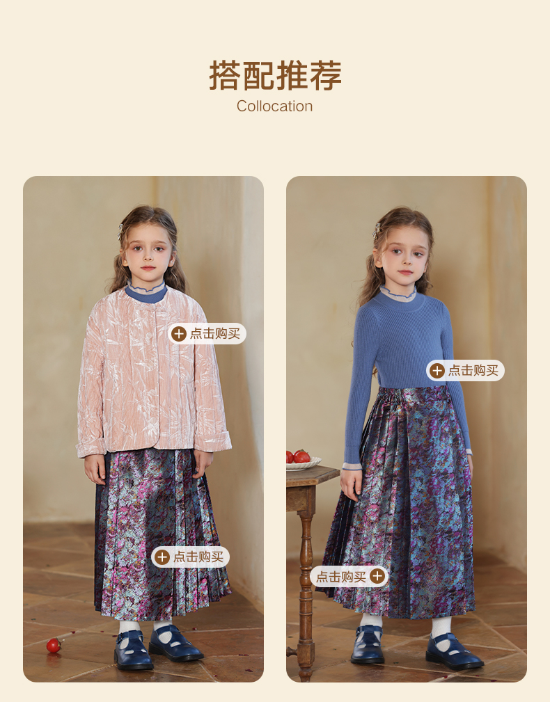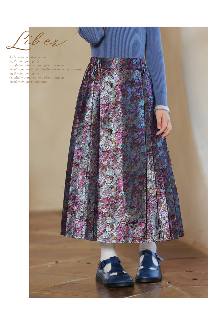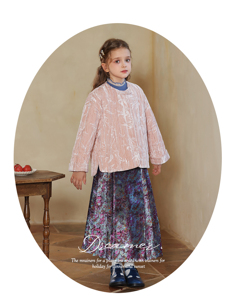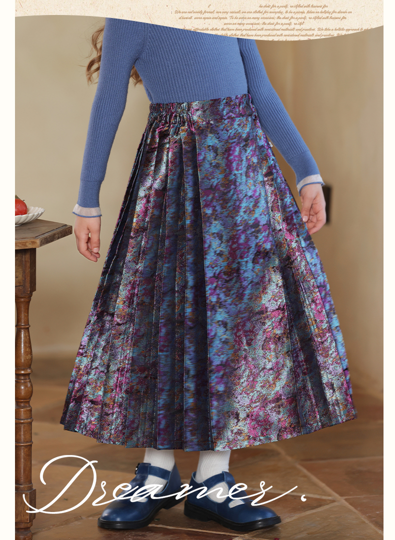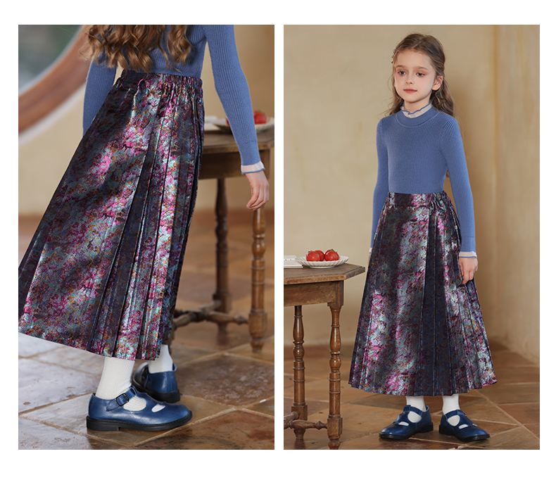 LittleNaive 女童新中式半身裙冬季新款提花长裙儿童长款马面裙