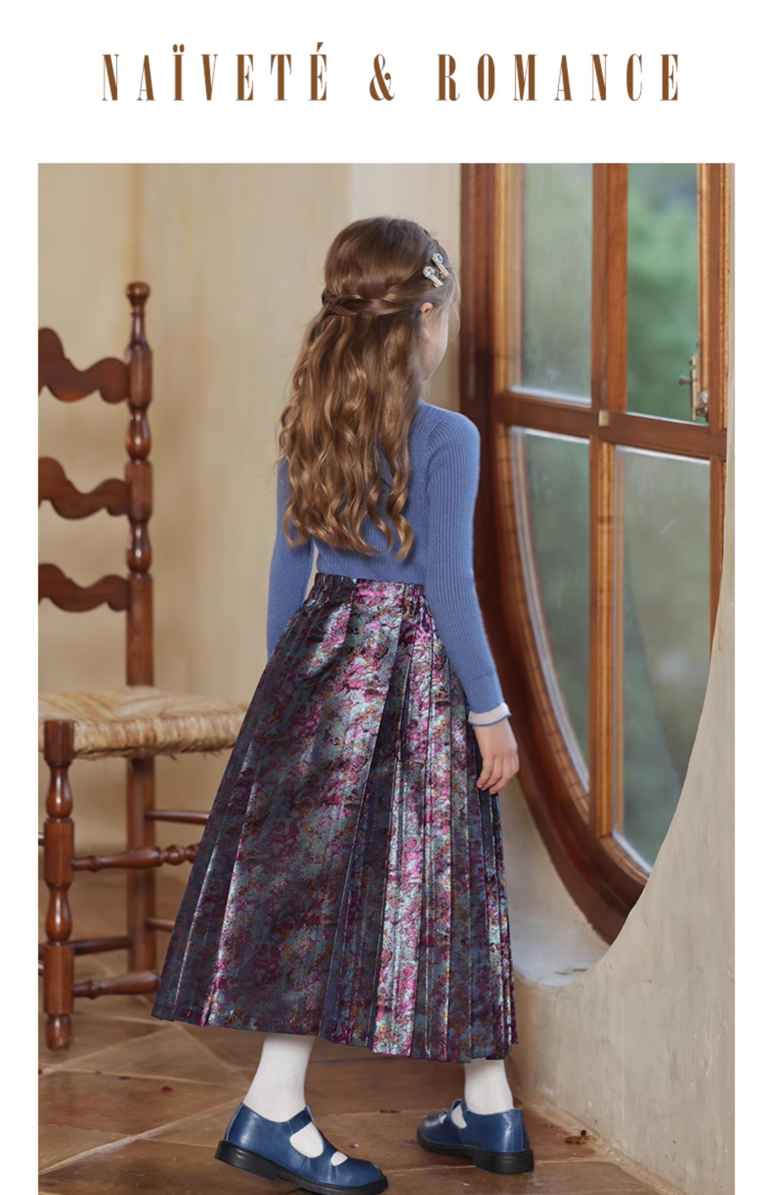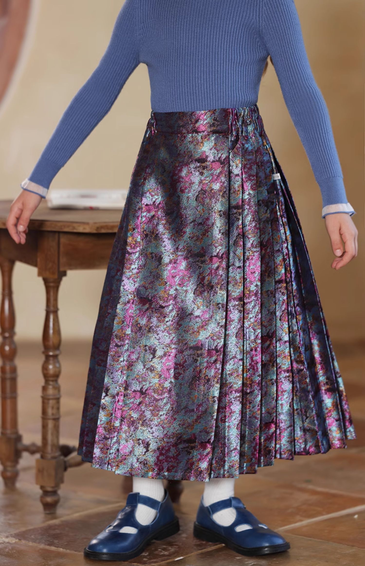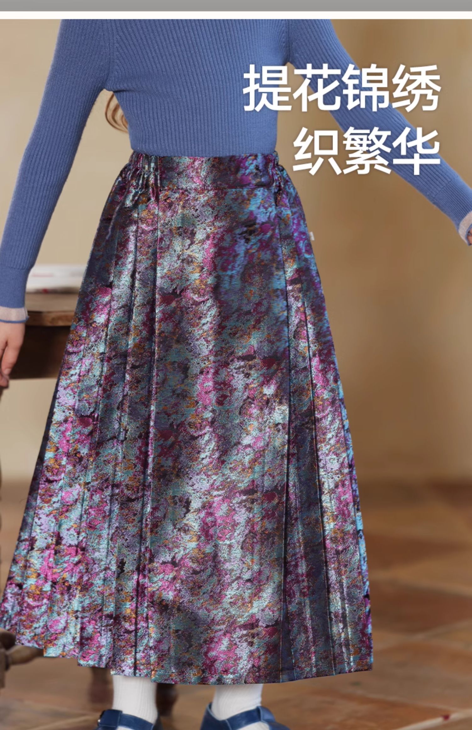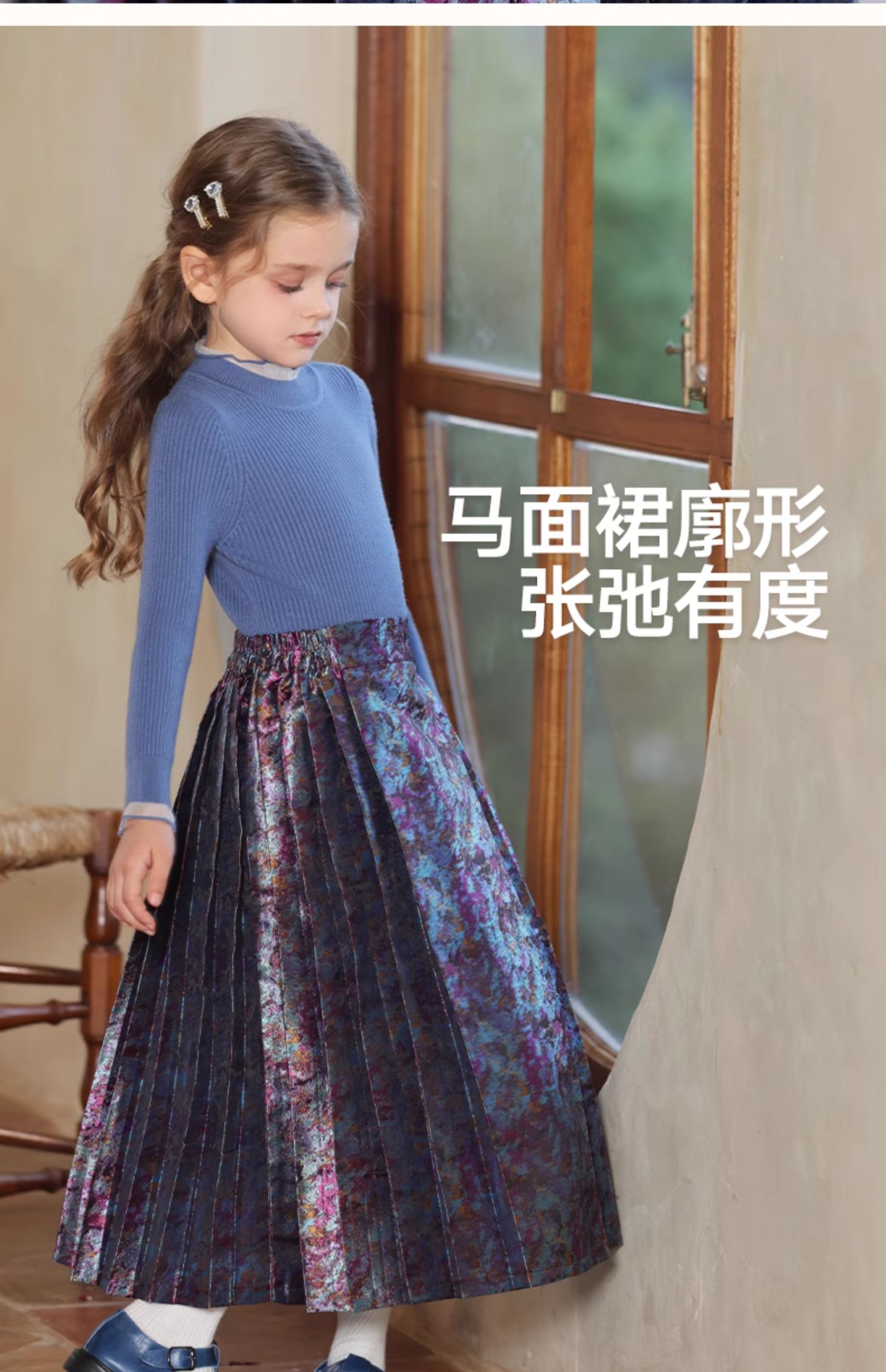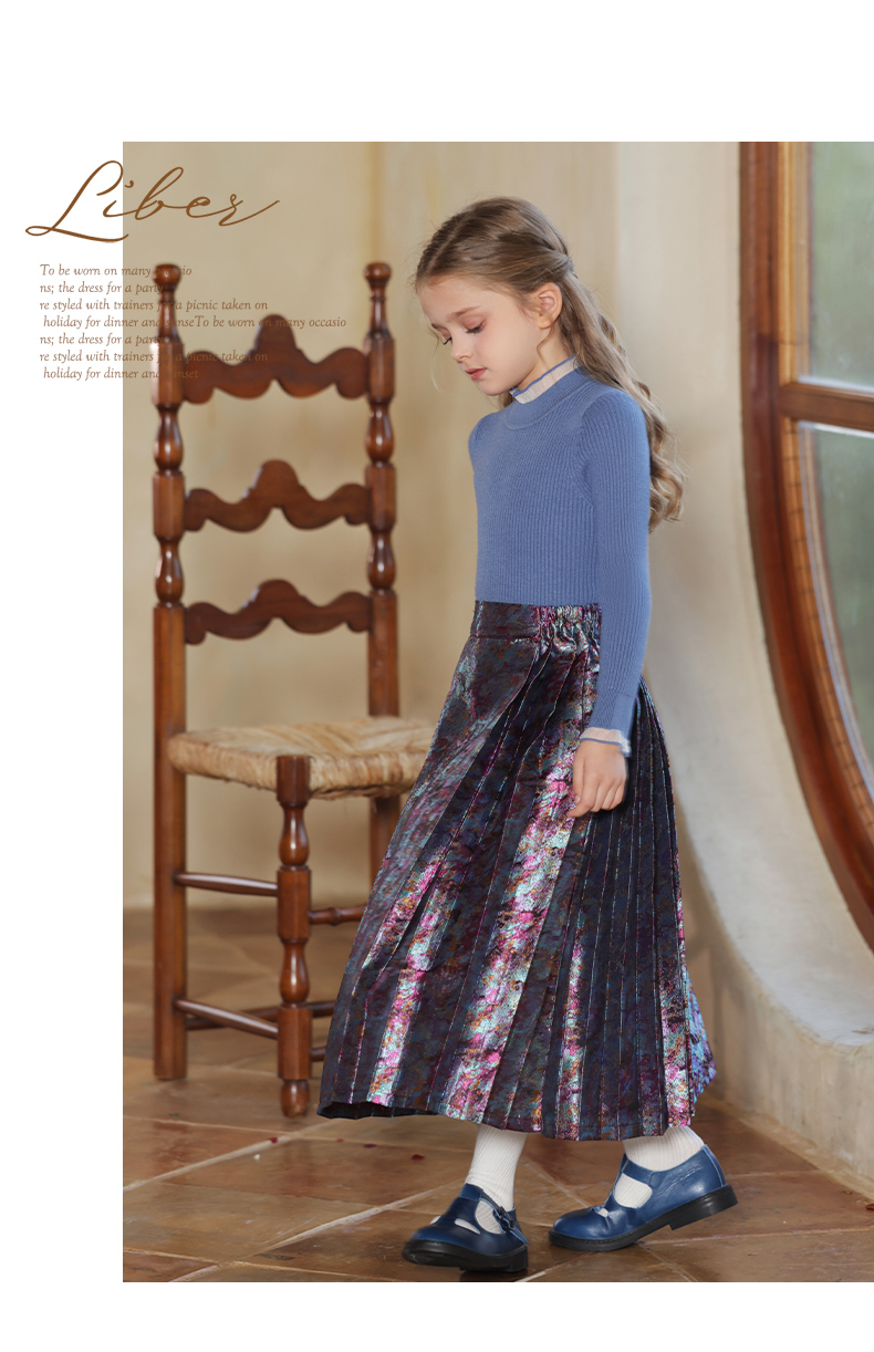 LittleNaive 女童新中式半身裙冬季新款提花长裙儿童长款马面裙