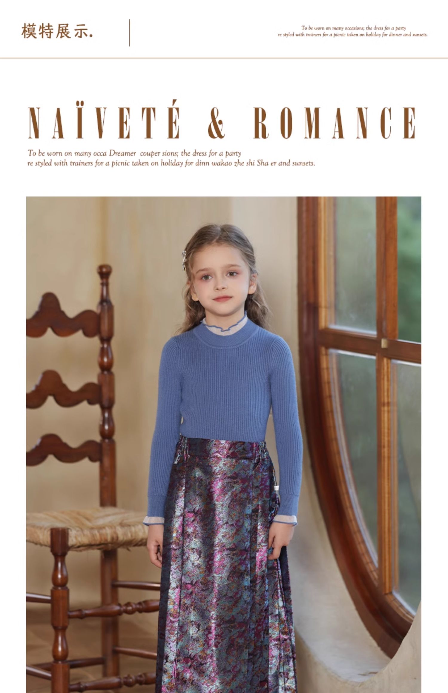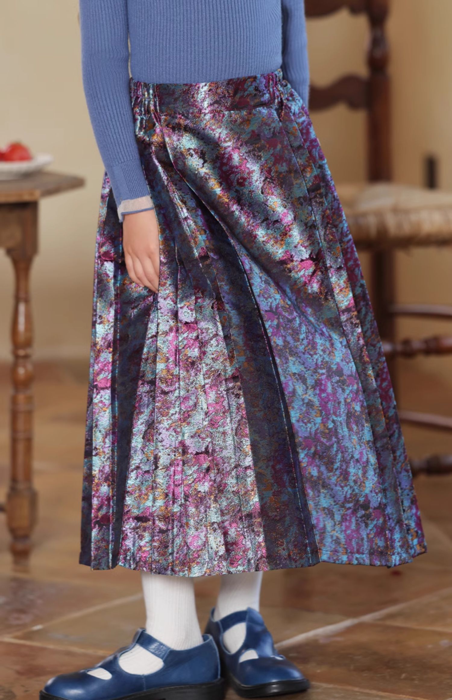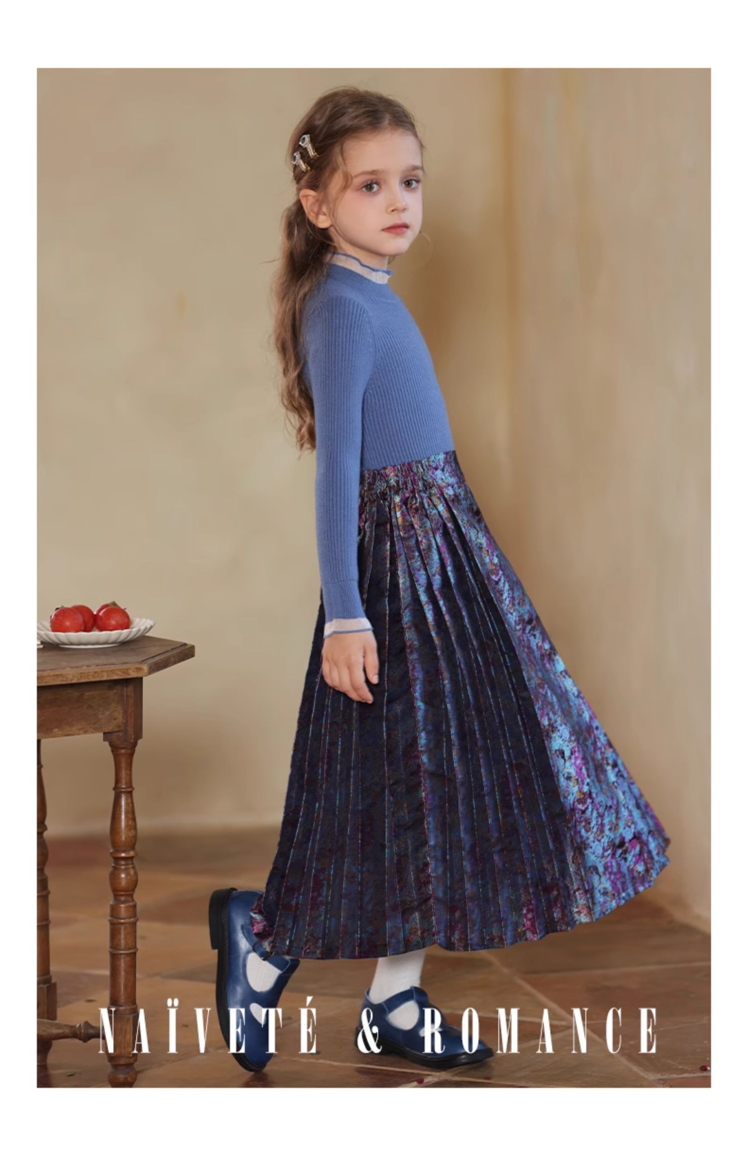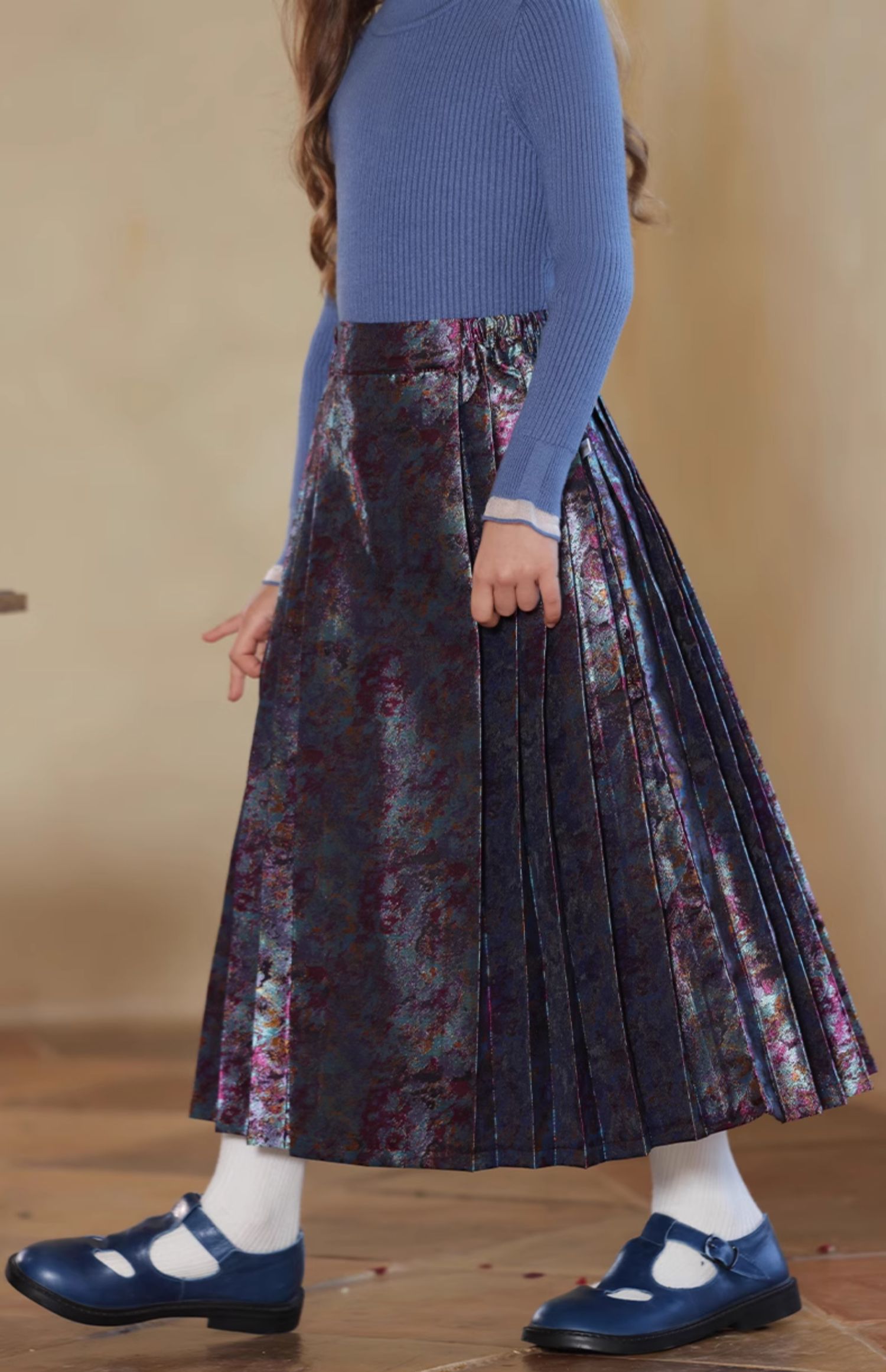 LittleNaive 女童新中式半身裙冬季新款提花长裙儿童长款马面裙