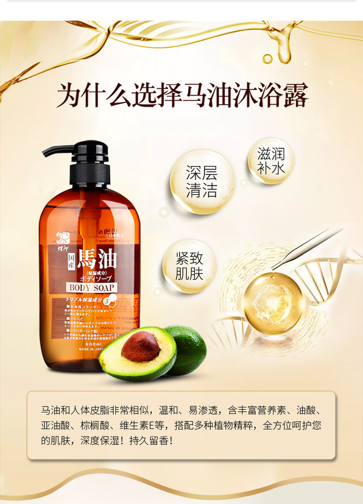 600mL蝶印牌马油保湿精华沐浴露