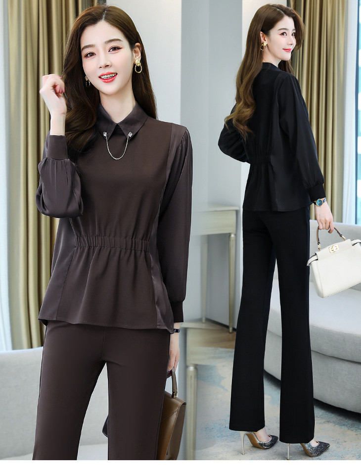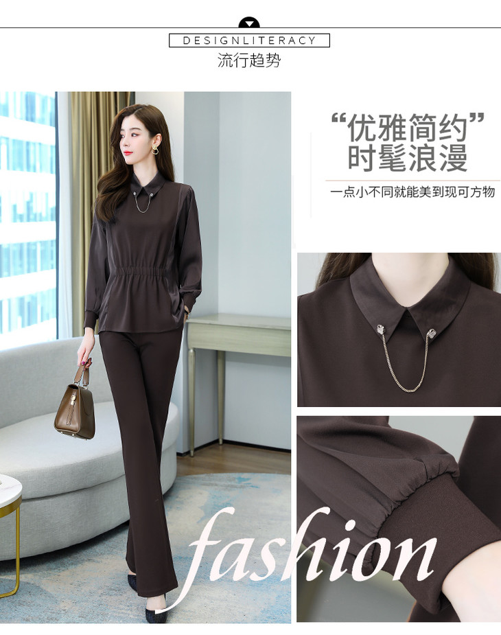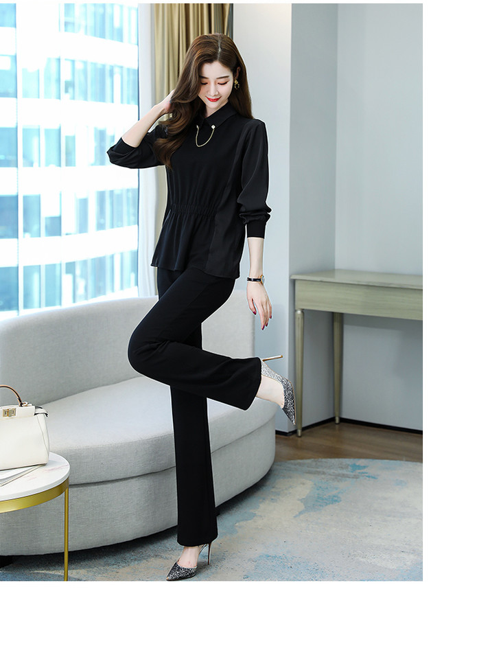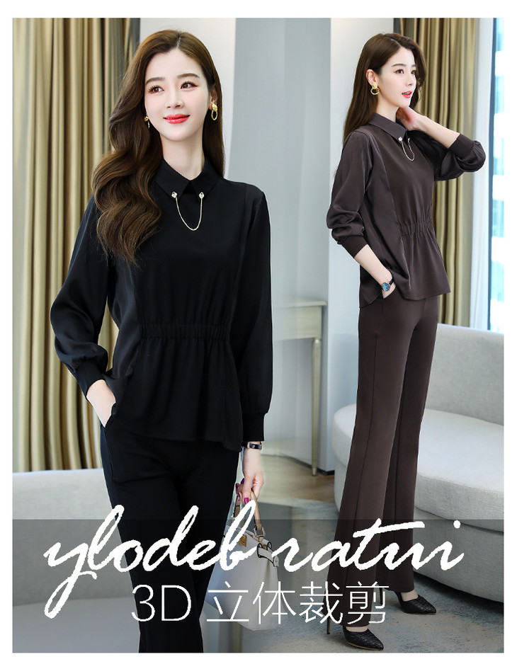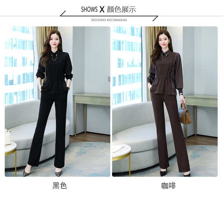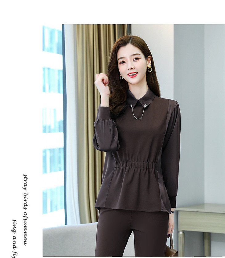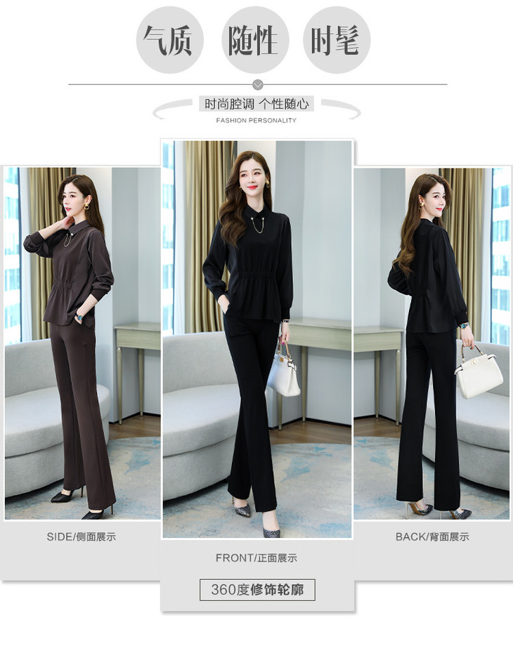 CQ HBLJR6016 春季新品翻领长袖纯色雪纺衫女式哈伦裤三件套
