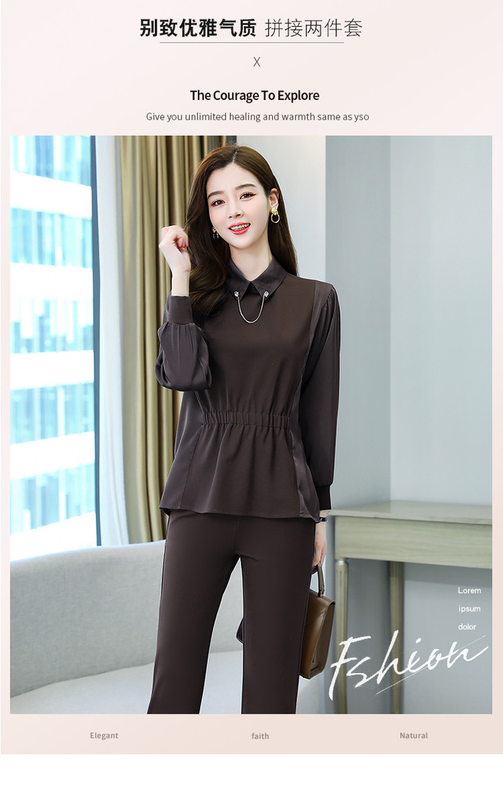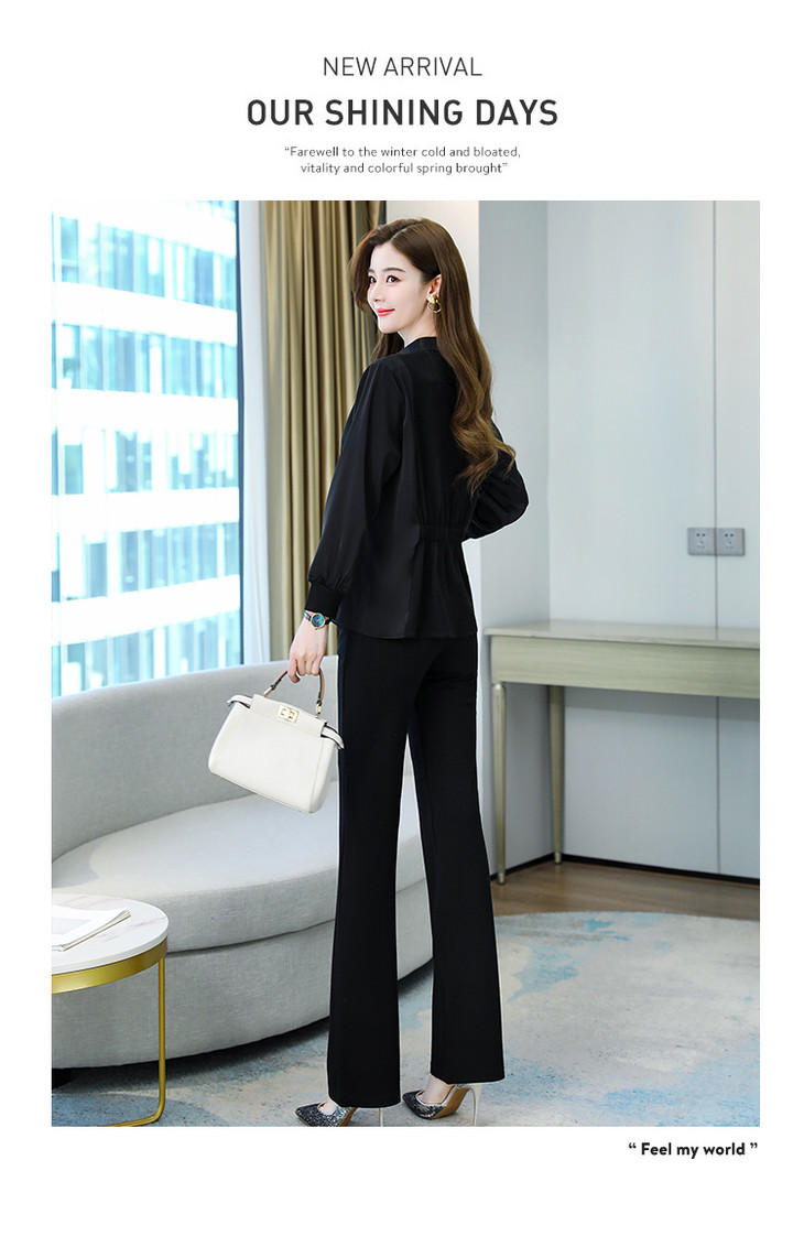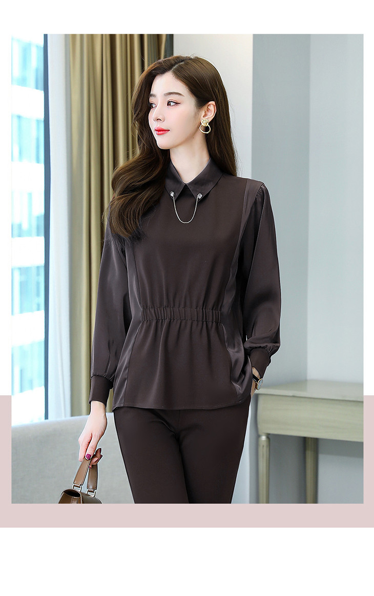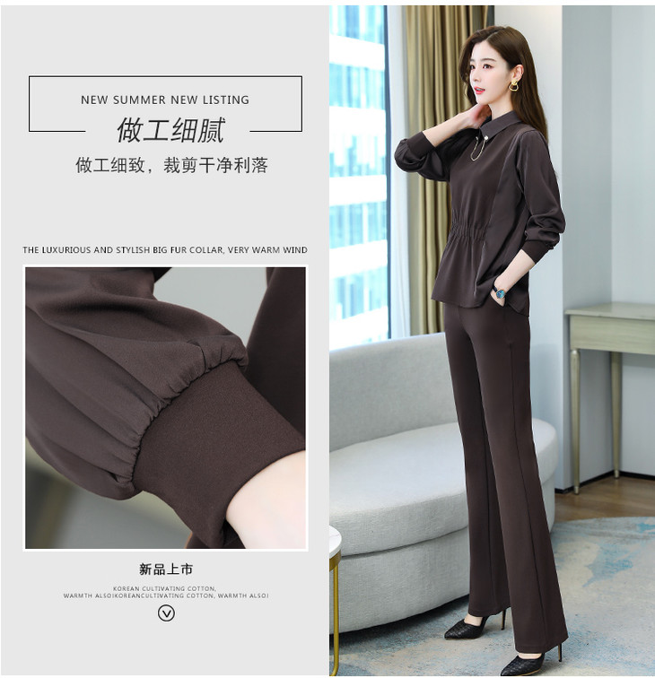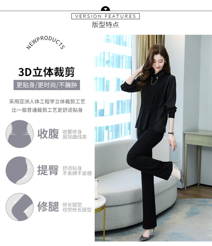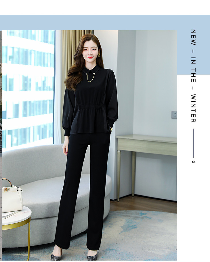 CQ HBLJR6016 春季新品翻领长袖纯色雪纺衫女式哈伦裤三件套