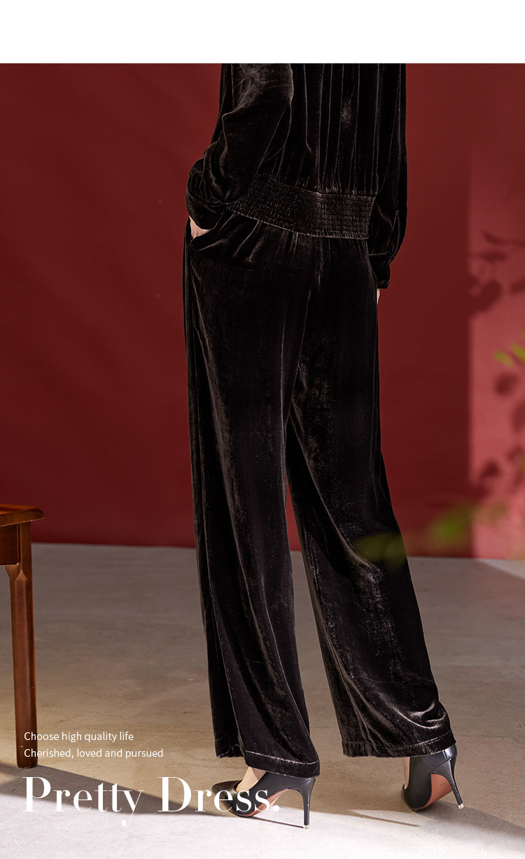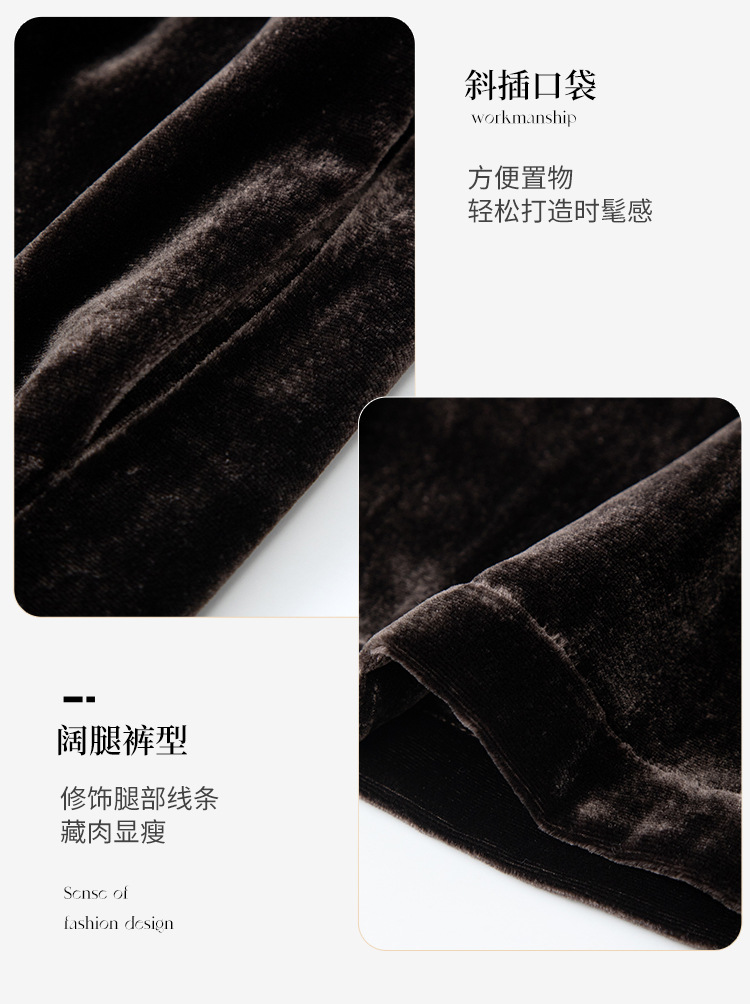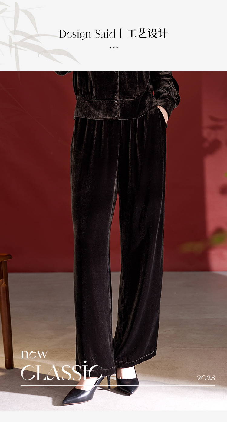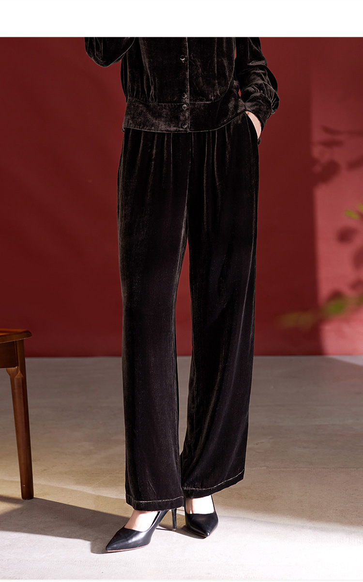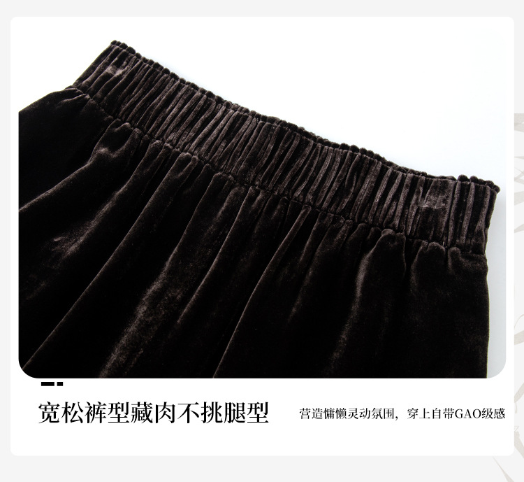 QS秋冬新款真丝丝绒阔腿裤女高腰垂感显瘦大码桑蚕丝直筒休闲裤1773