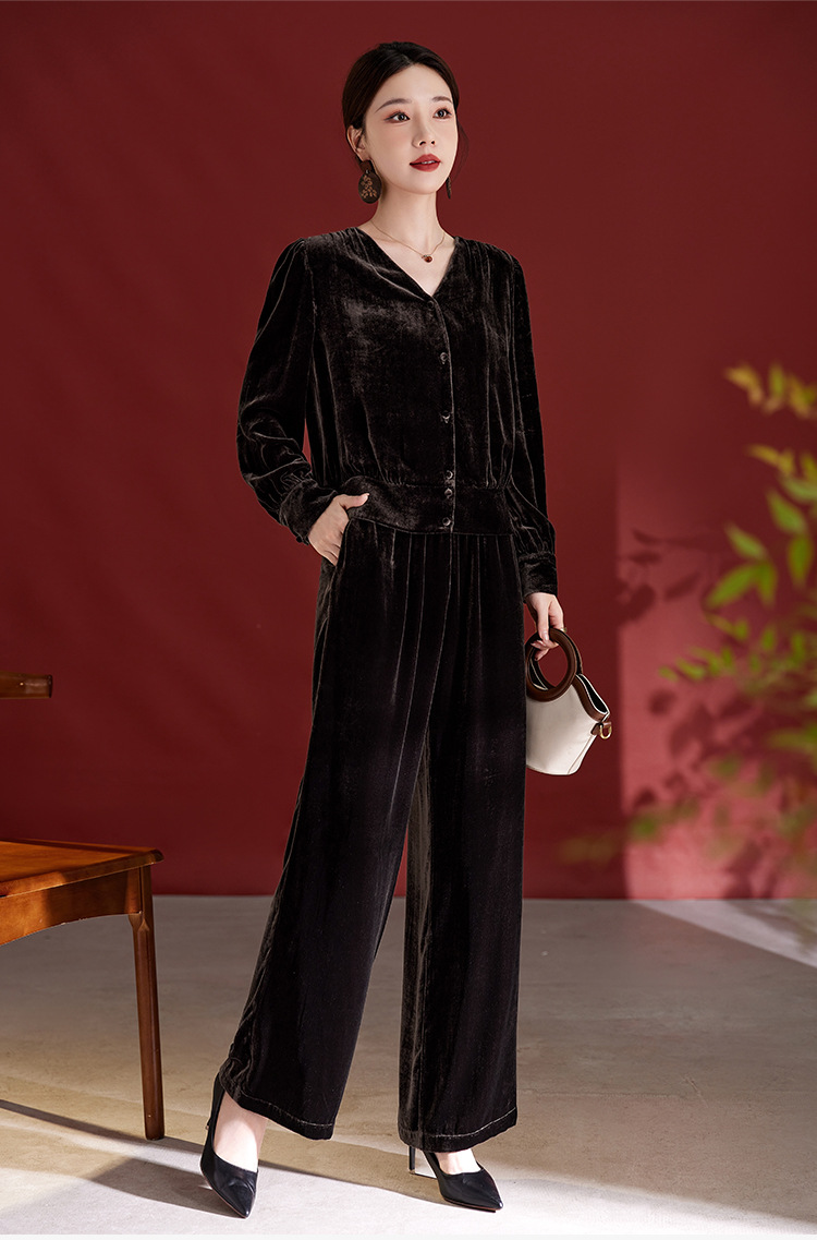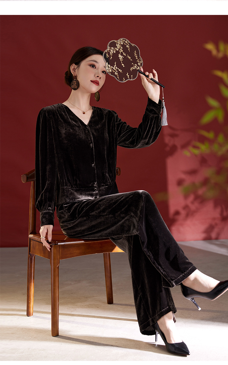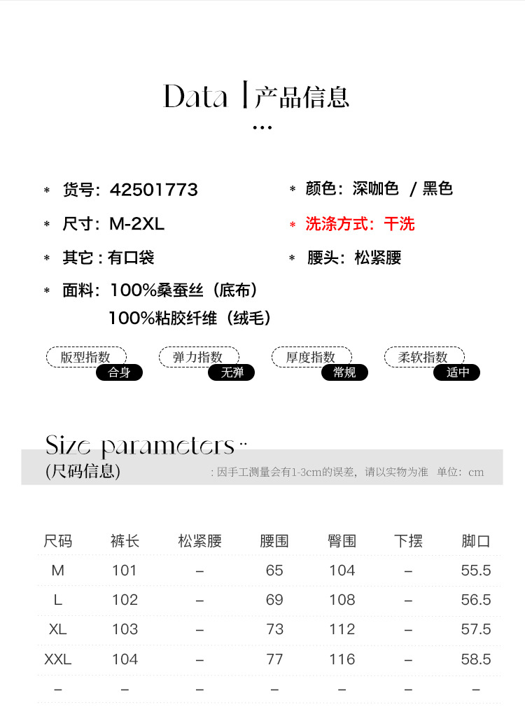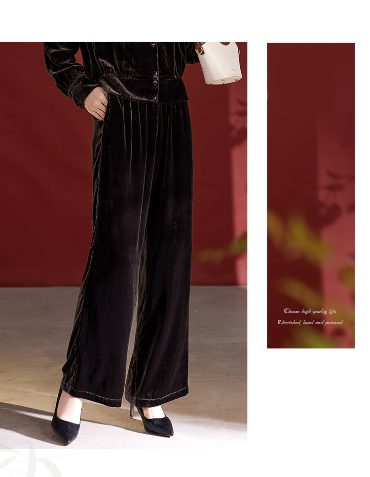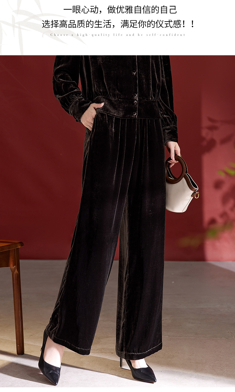 QS秋冬新款真丝丝绒阔腿裤女高腰垂感显瘦大码桑蚕丝直筒休闲裤1773