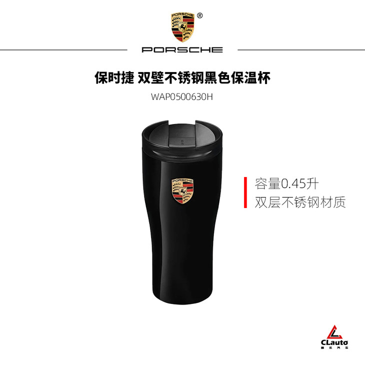 保时捷 双壁不锈钢黑色保温杯