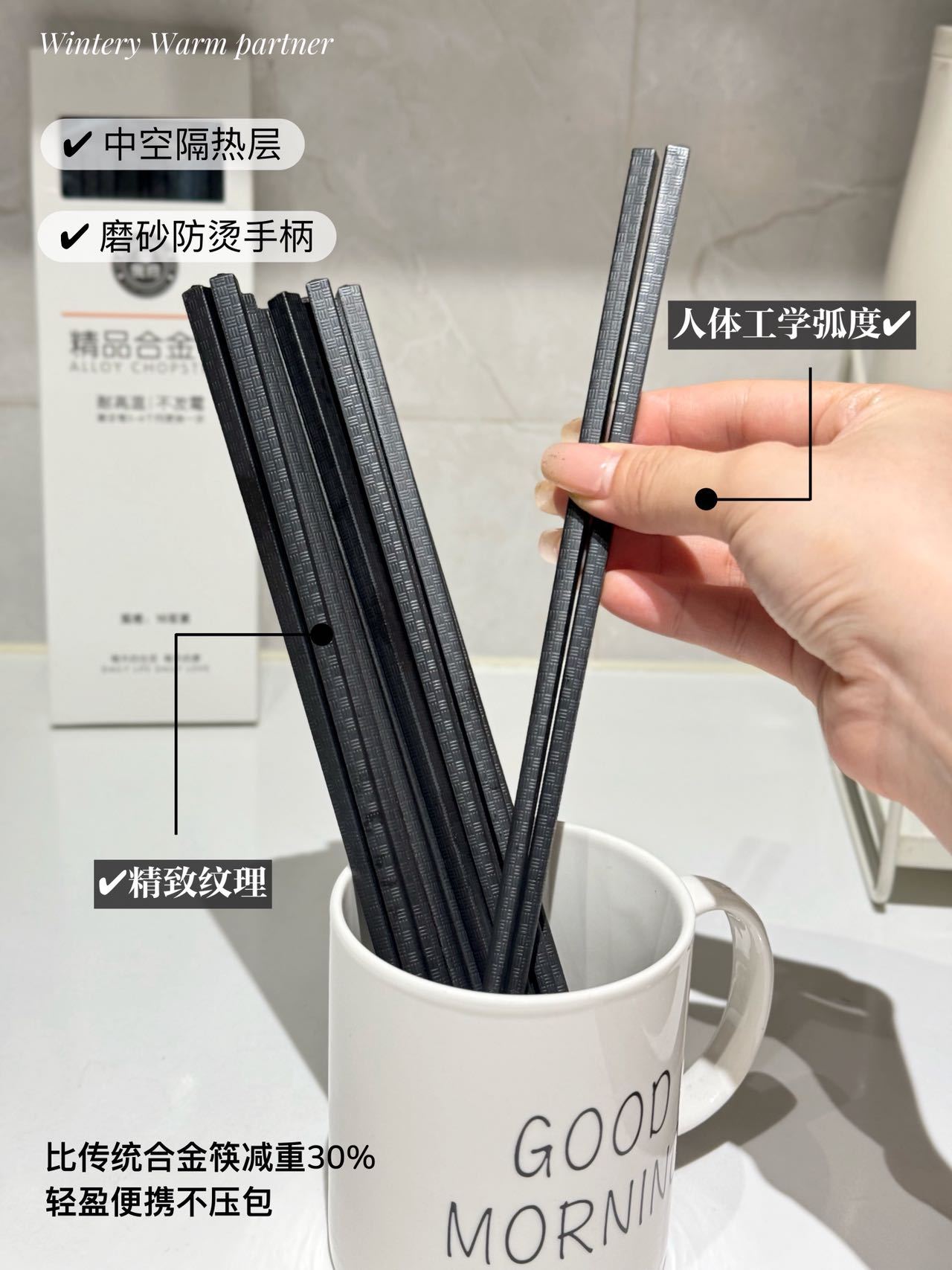 【秒杀19.9到手二十双!合金筷的神仙魅力!让干饭仪式感拉满】李食府•精品合金筷20双防滑耐高温消毒筷家用高颜值不易发霉餐具。ha