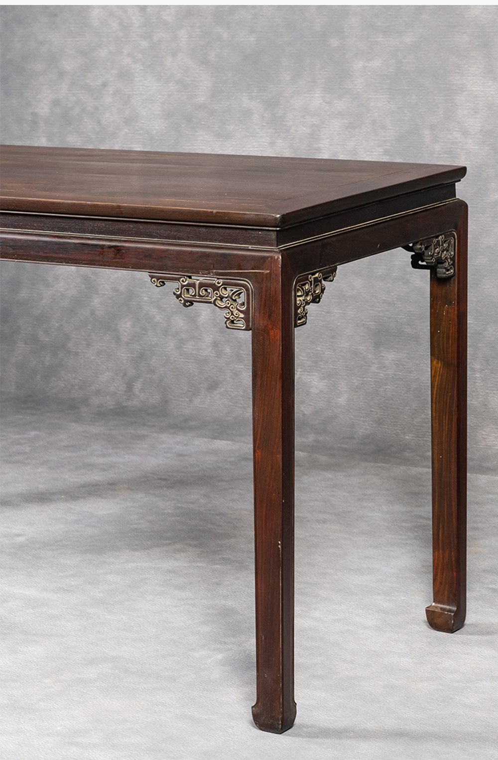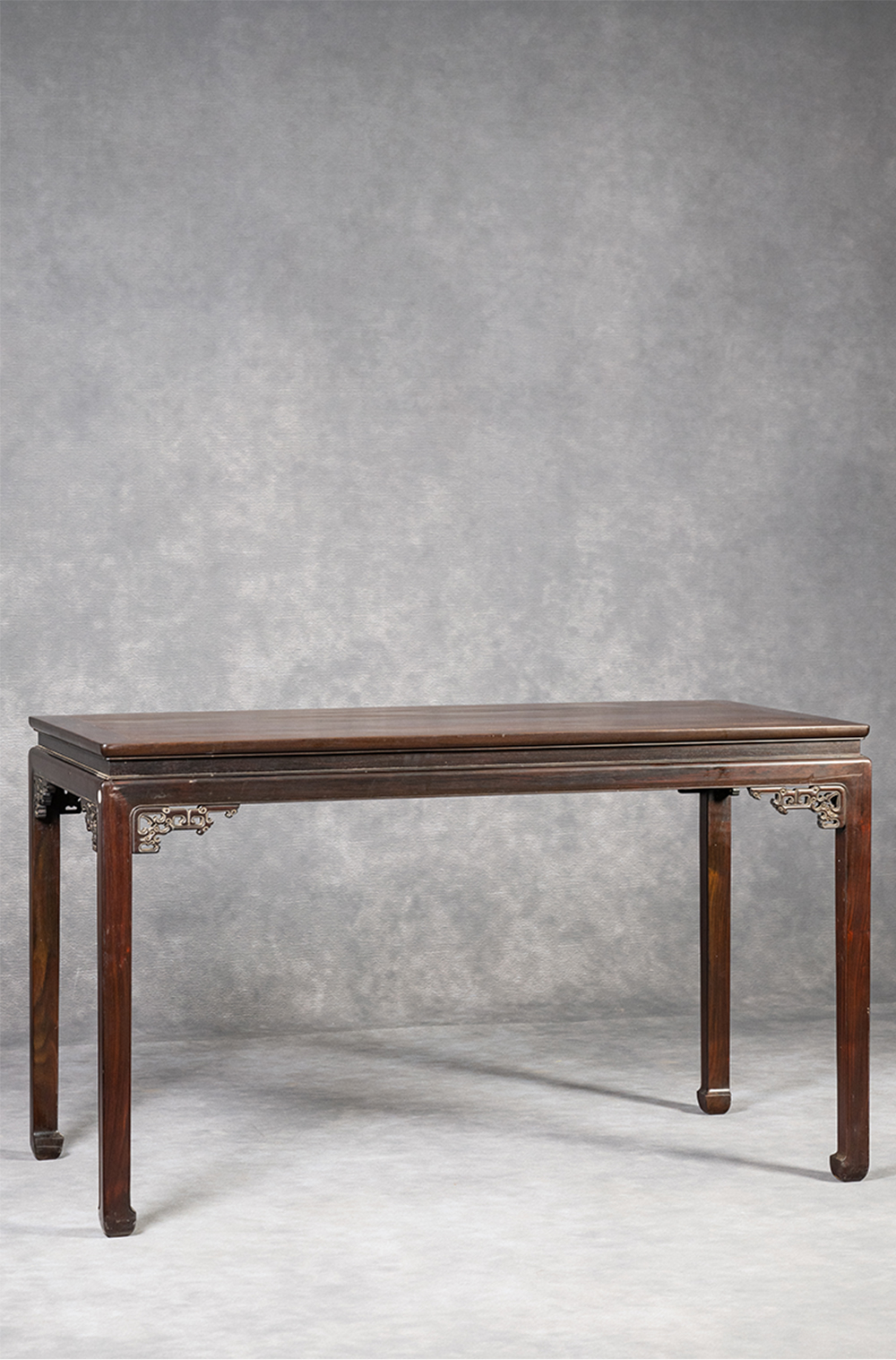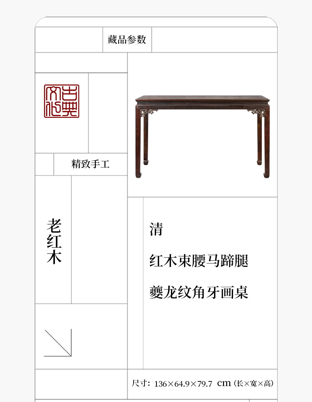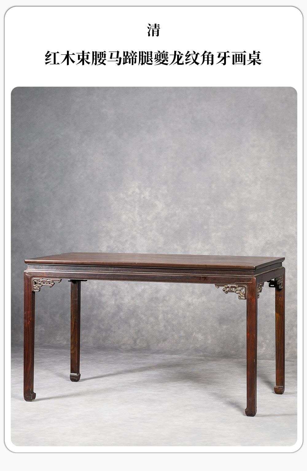 清 红木束腰马蹄腿夔龙纹角牙画桌