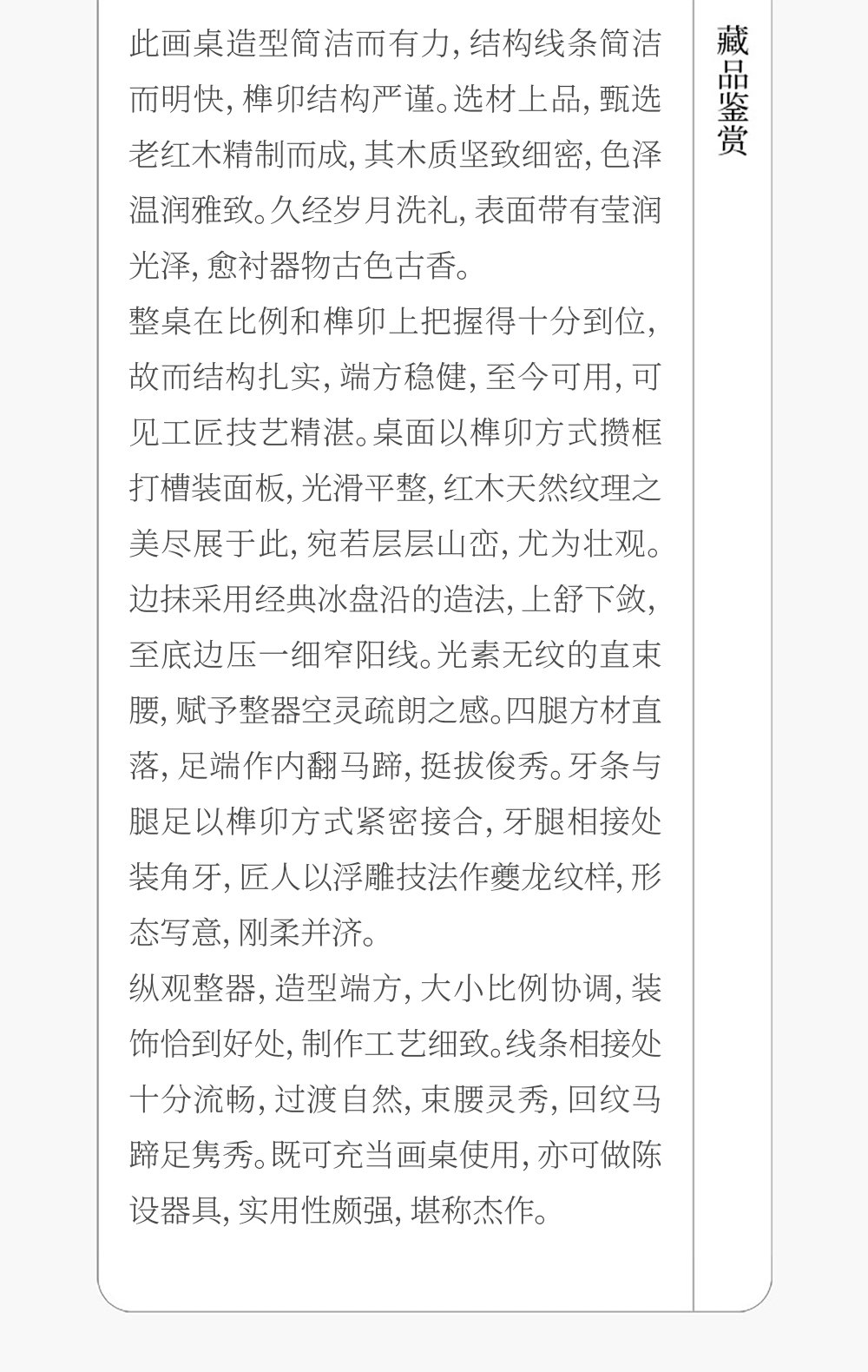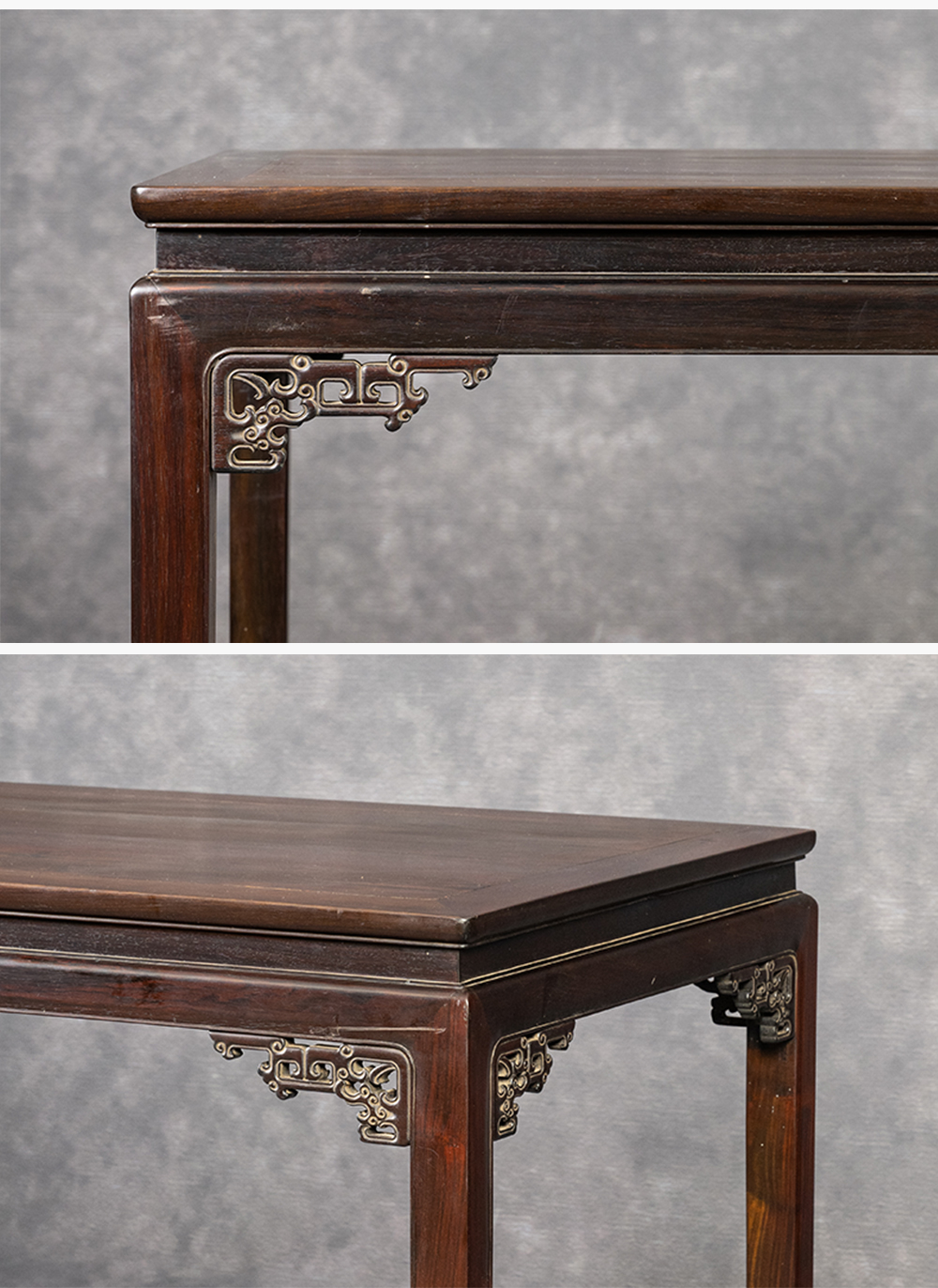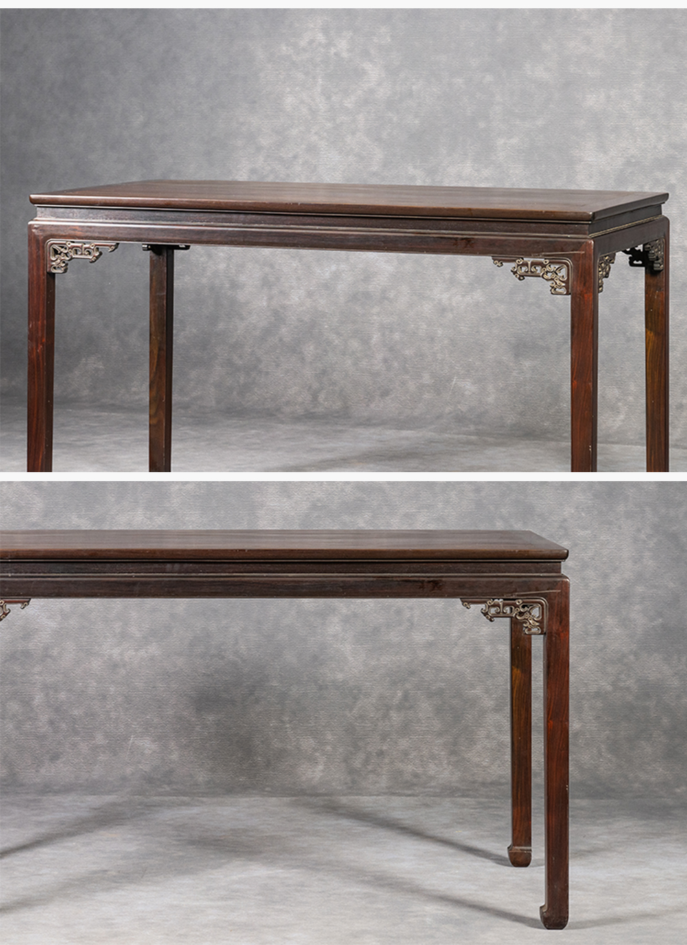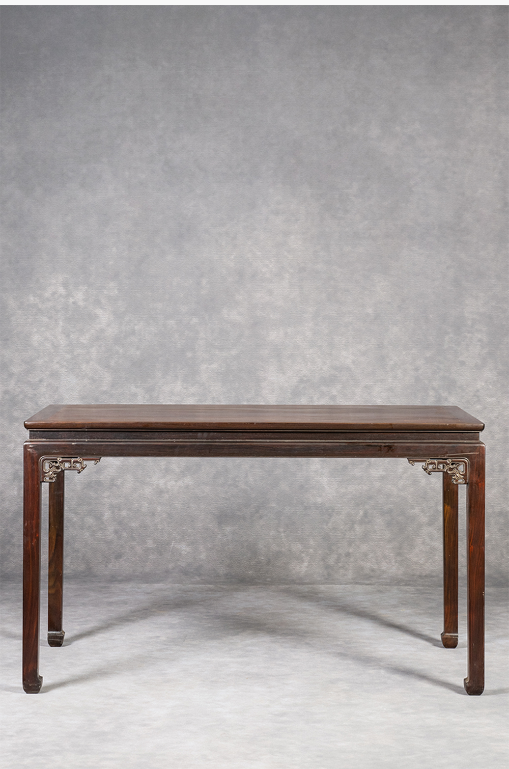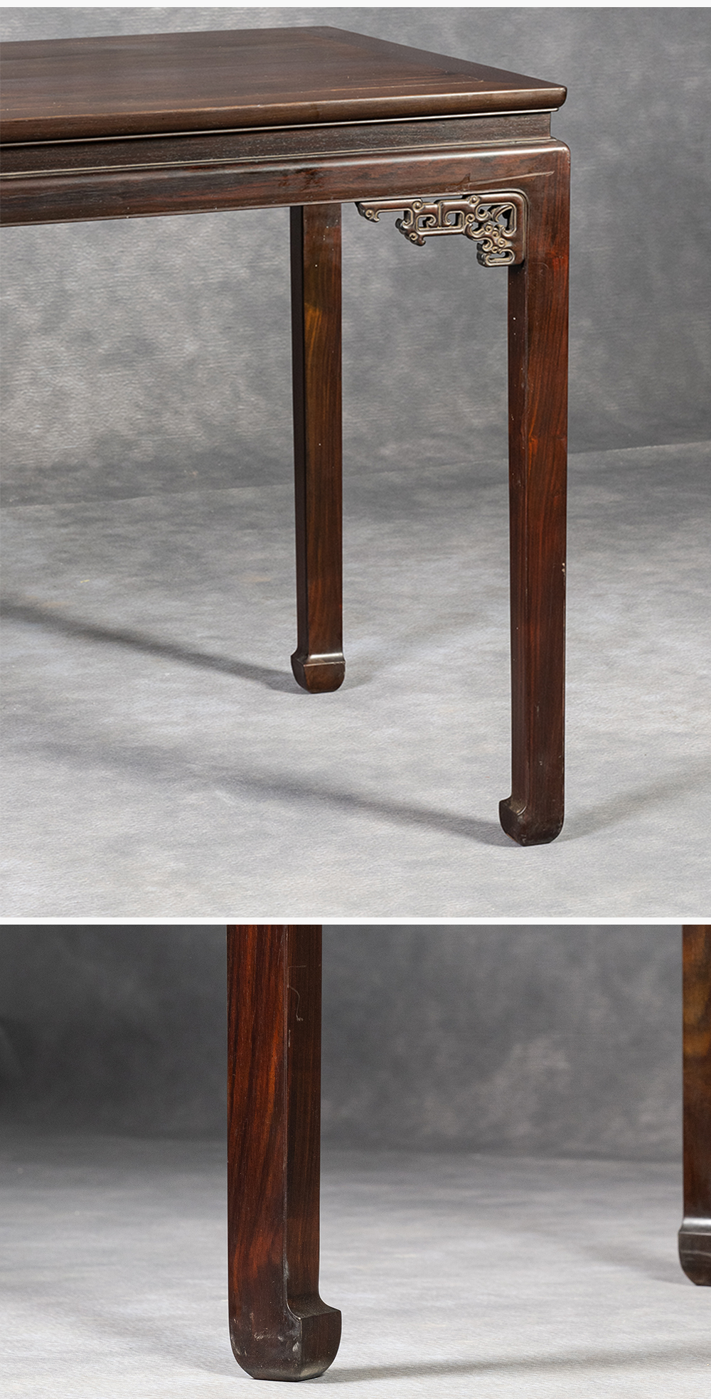 清 红木束腰马蹄腿夔龙纹角牙画桌