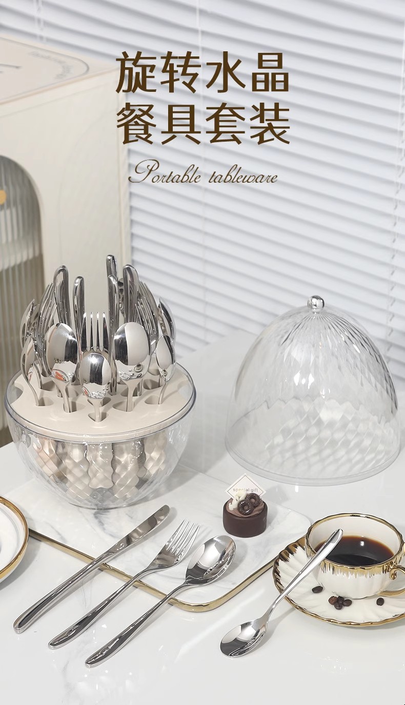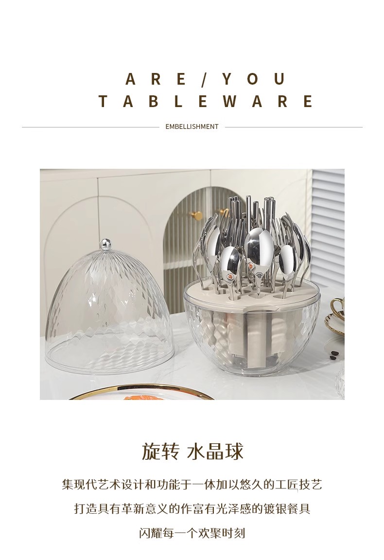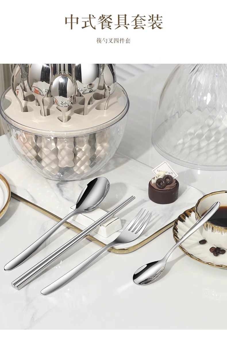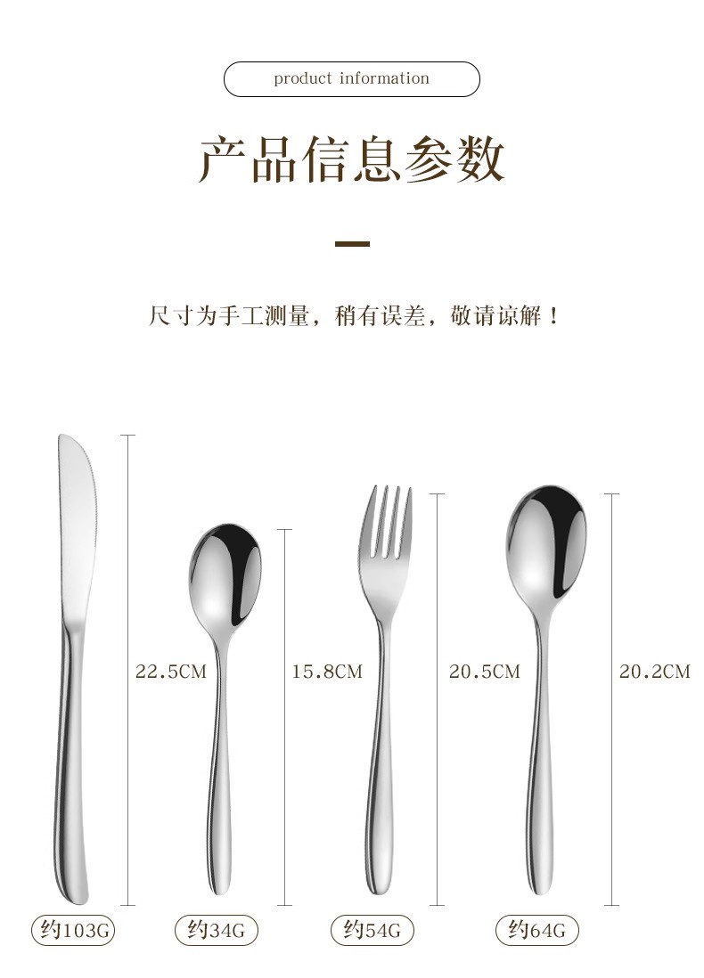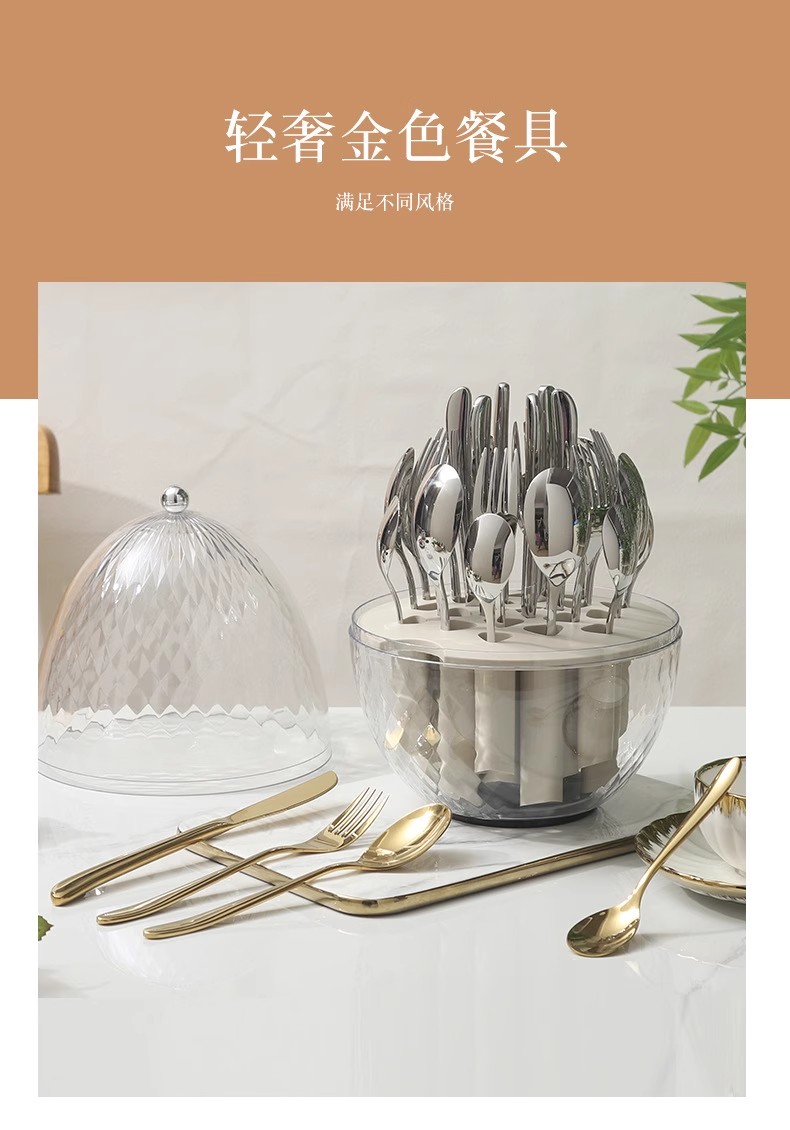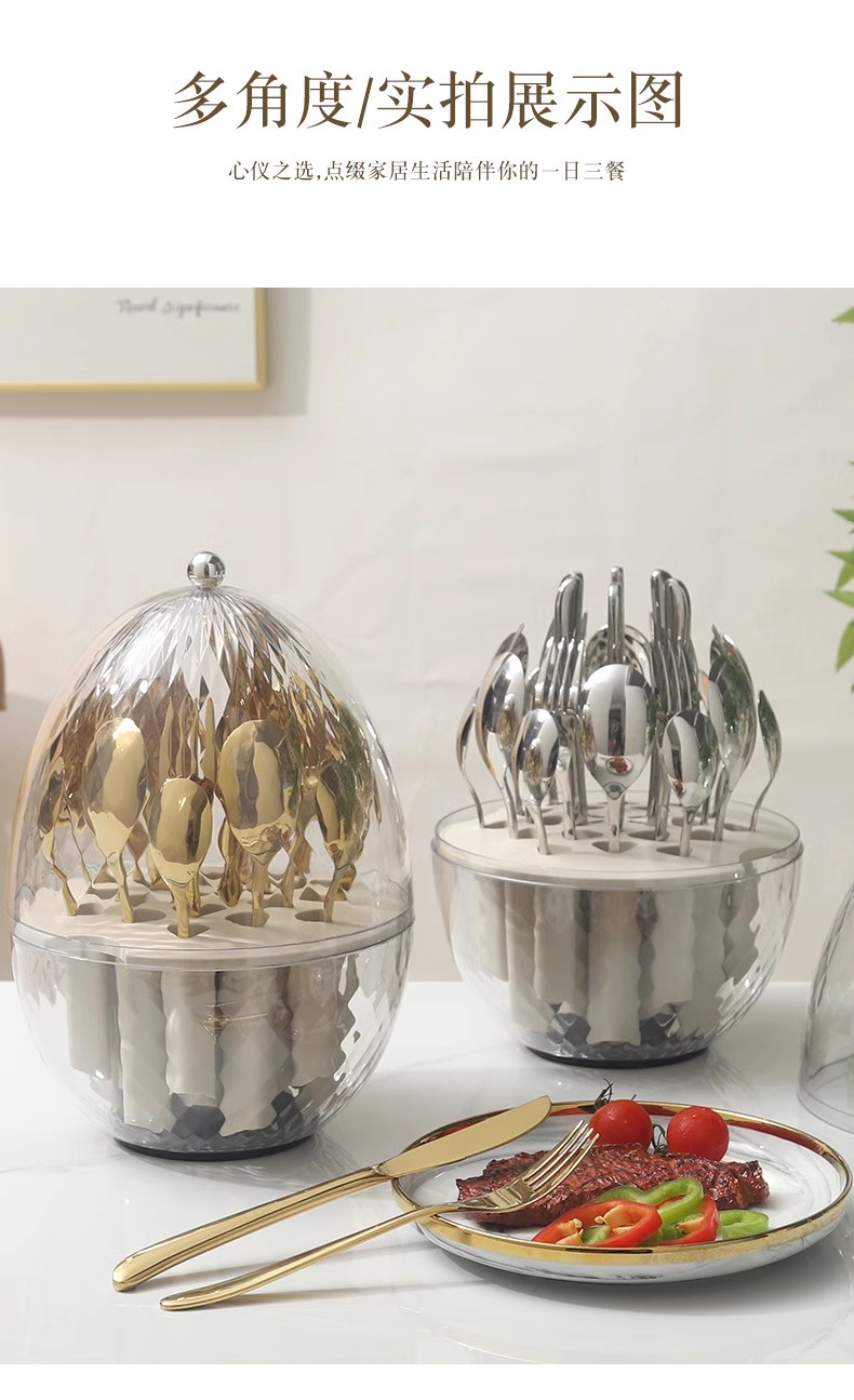 304不锈钢心境蛋豪华西餐刀叉勺套装(透明金色)