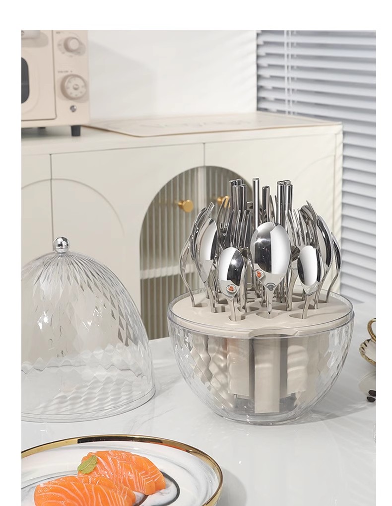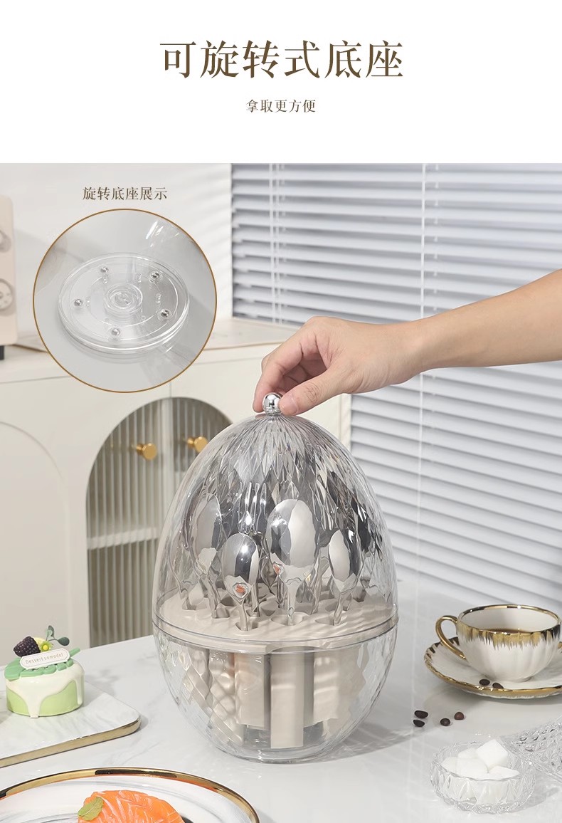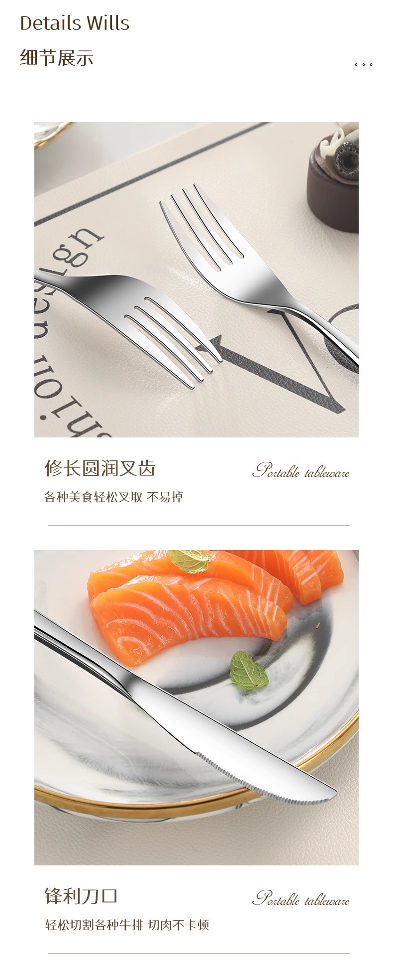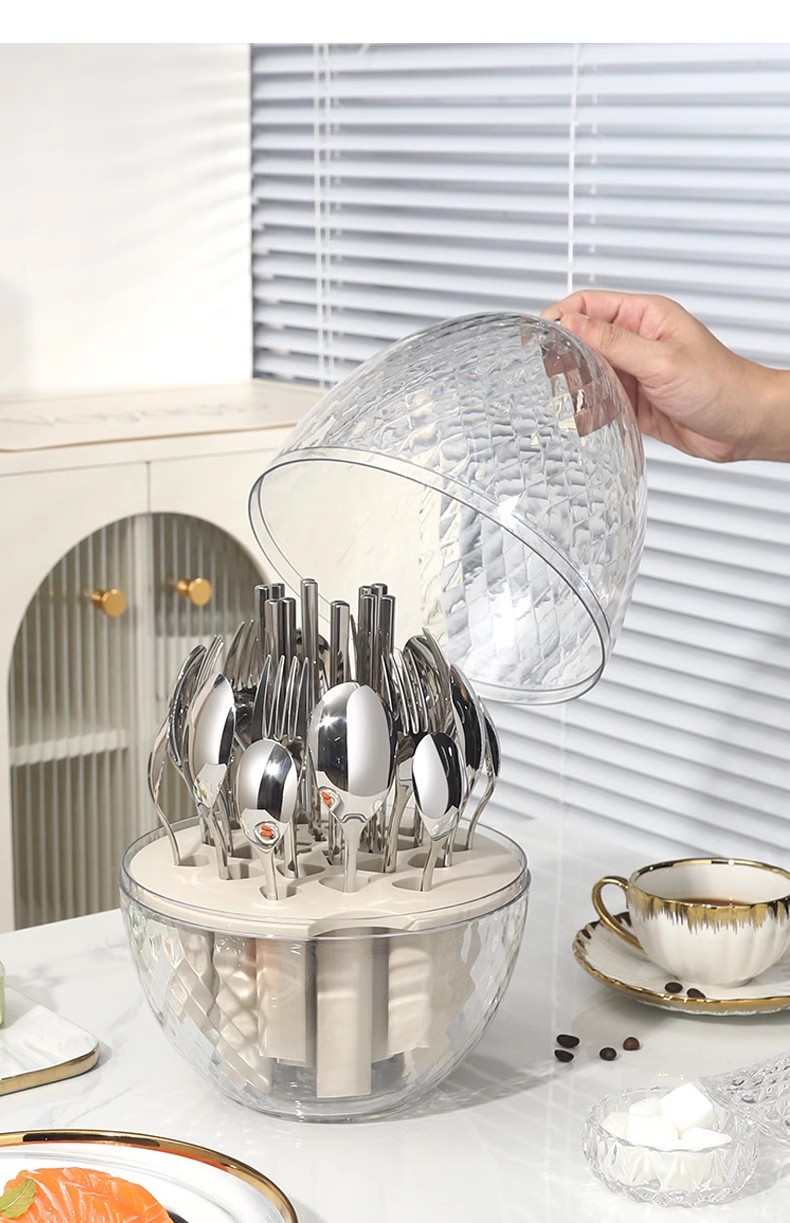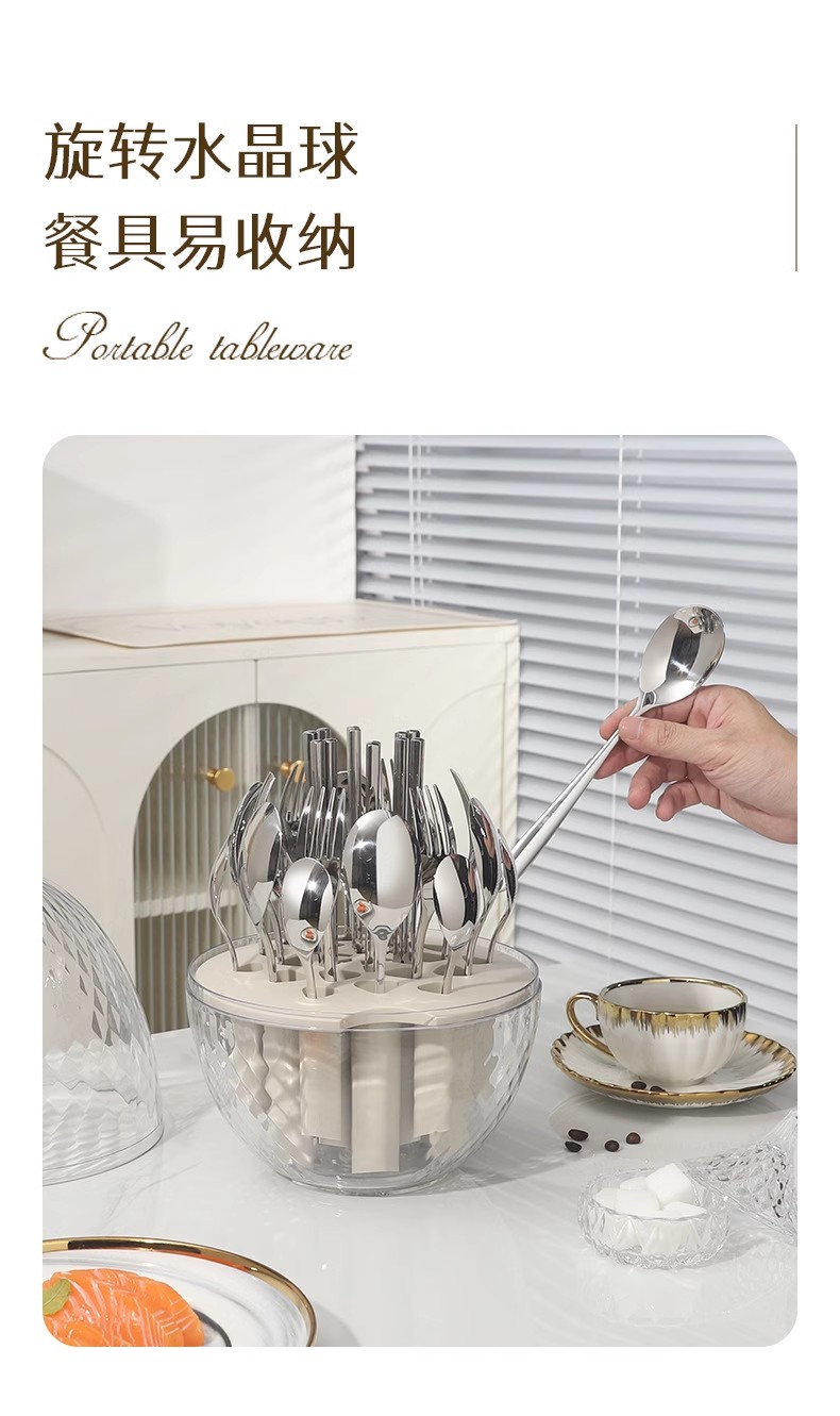 304不锈钢心境蛋豪华西餐刀叉勺套装(透明金色)