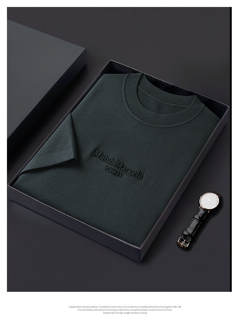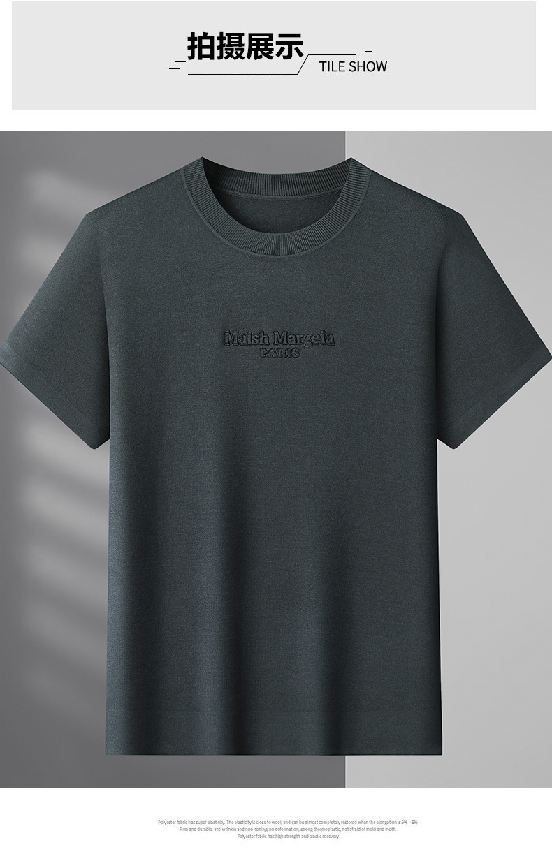 【新款DWP】大依优型大码圆领短袖T恤毛衫针织衫加肥加大毛衣大号胖子宽松毛衫男装上衣打底