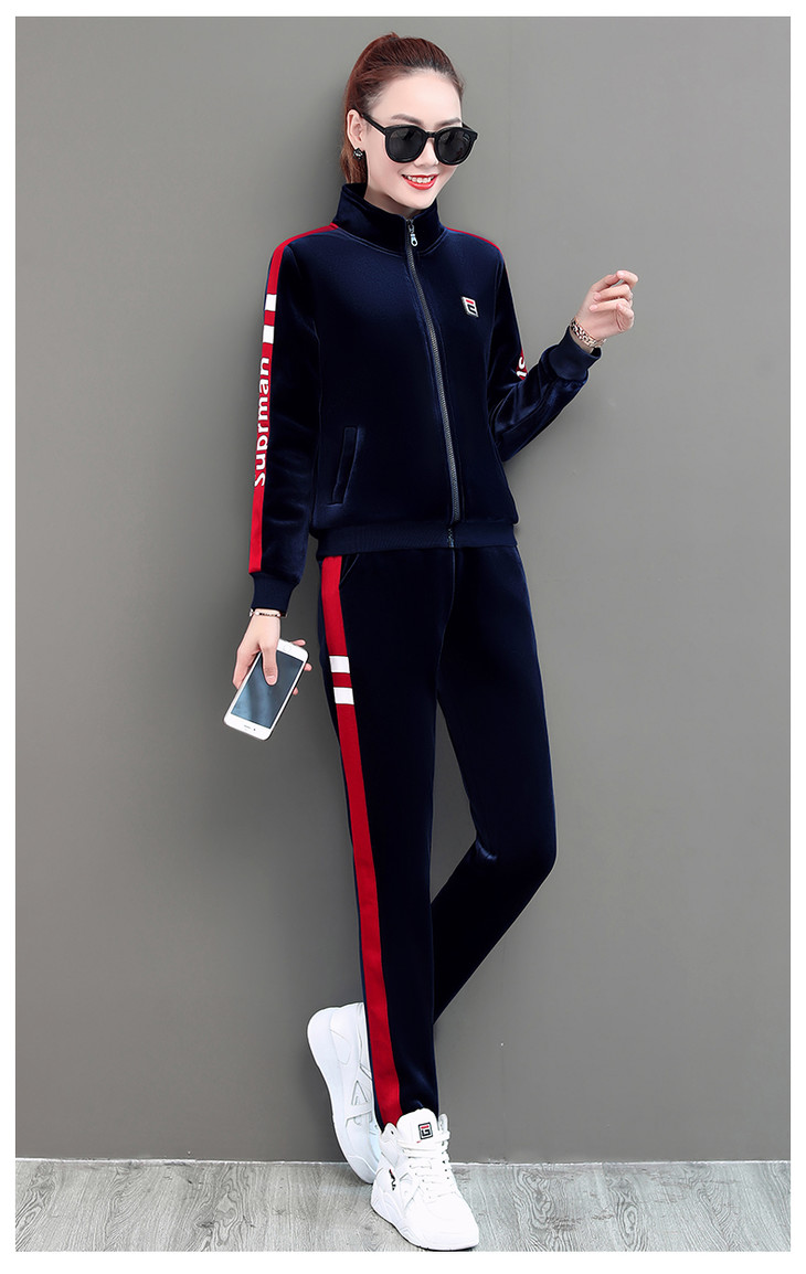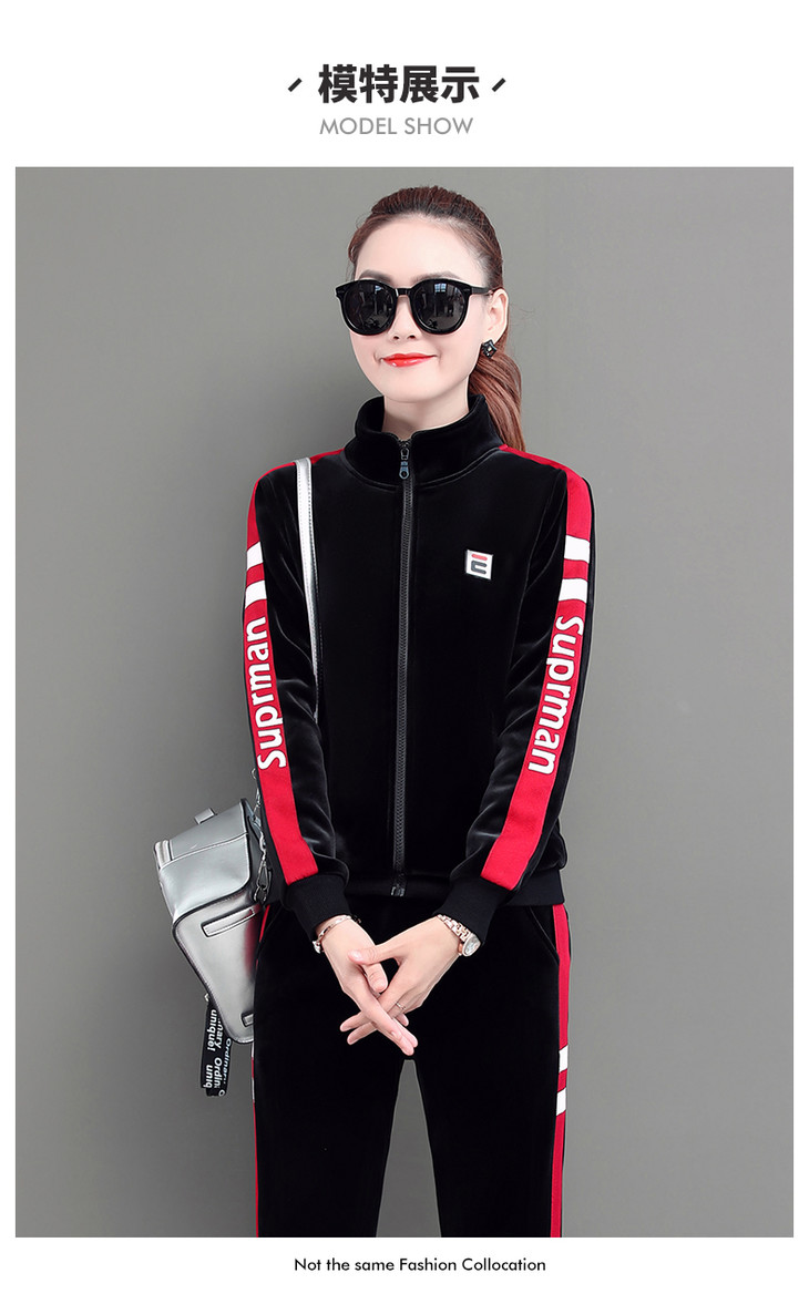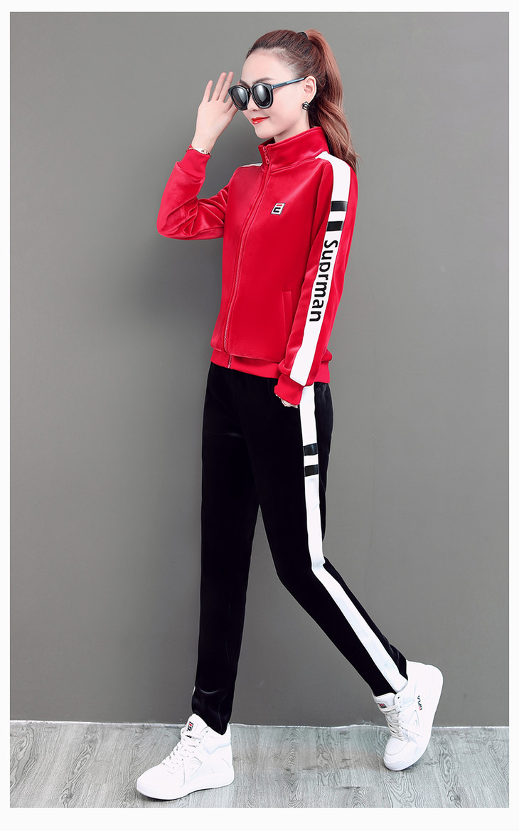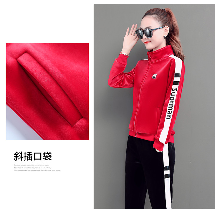 SP-LSXT26626休闲时尚金丝绒两件套运动套装
