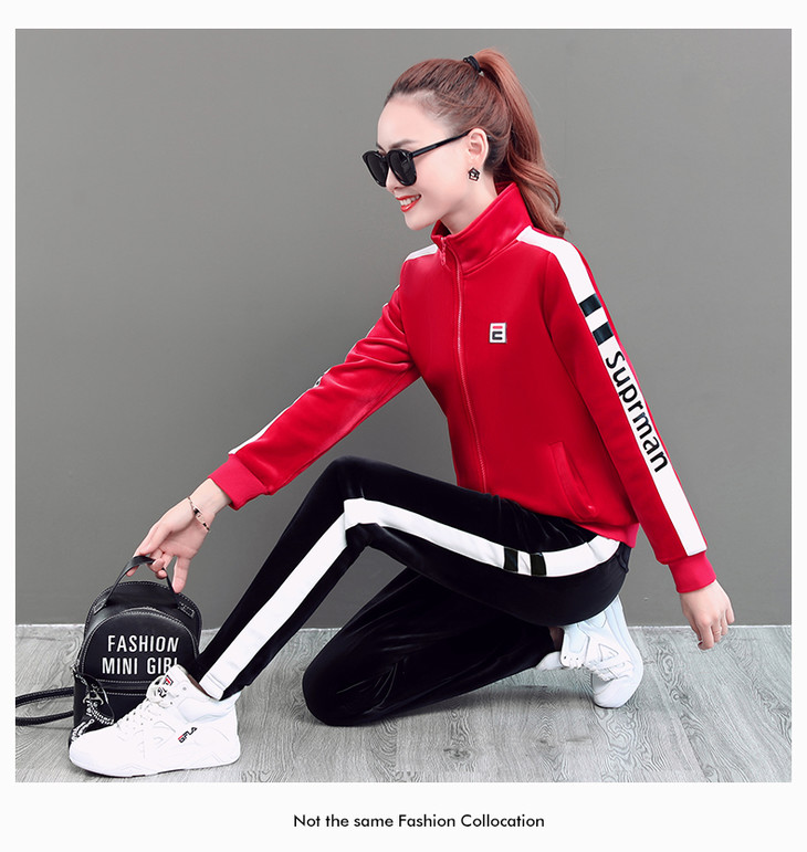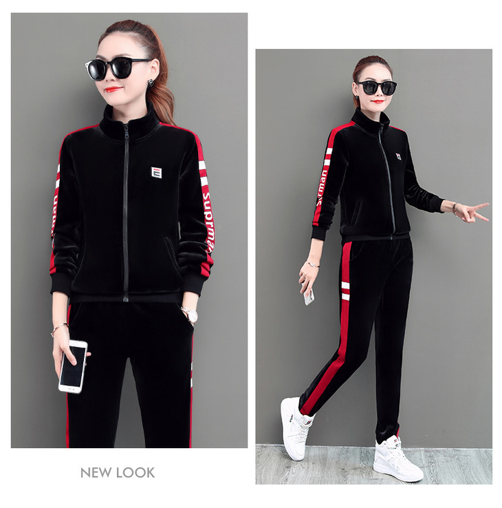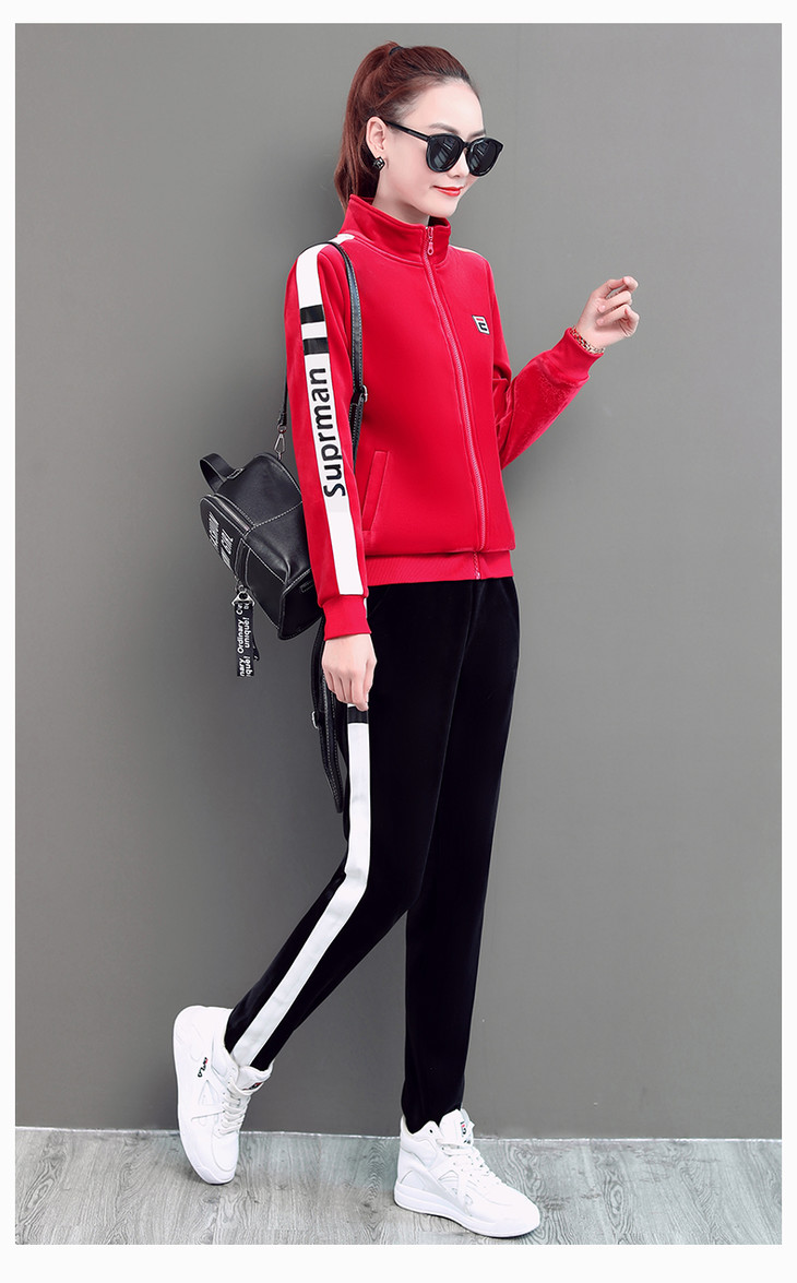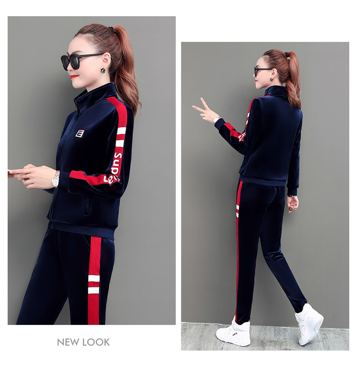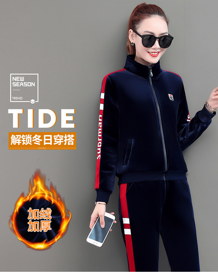 SP-LSXT26626休闲时尚金丝绒两件套运动套装