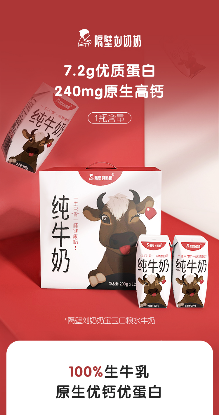 【两箱装】隔壁刘奶奶口粮奶200g*12盒/箱