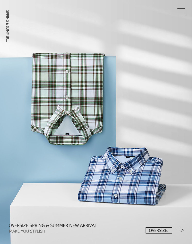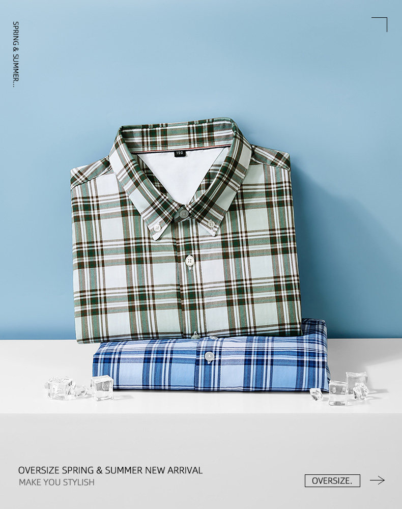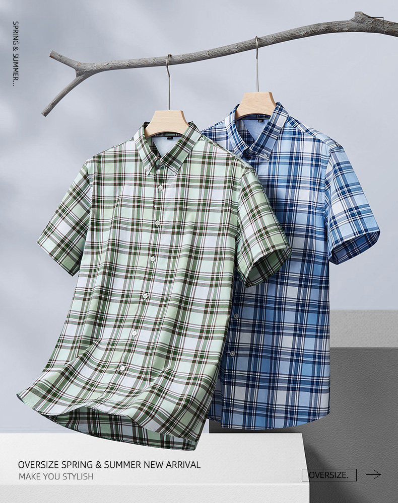 【DM】【纯棉】大依优型大码男装夏季格子衬衫短袖商务休闲短袖T恤320斤