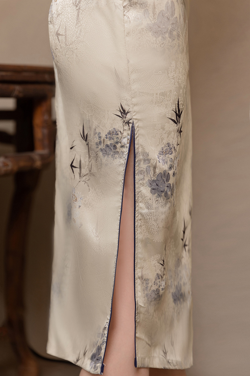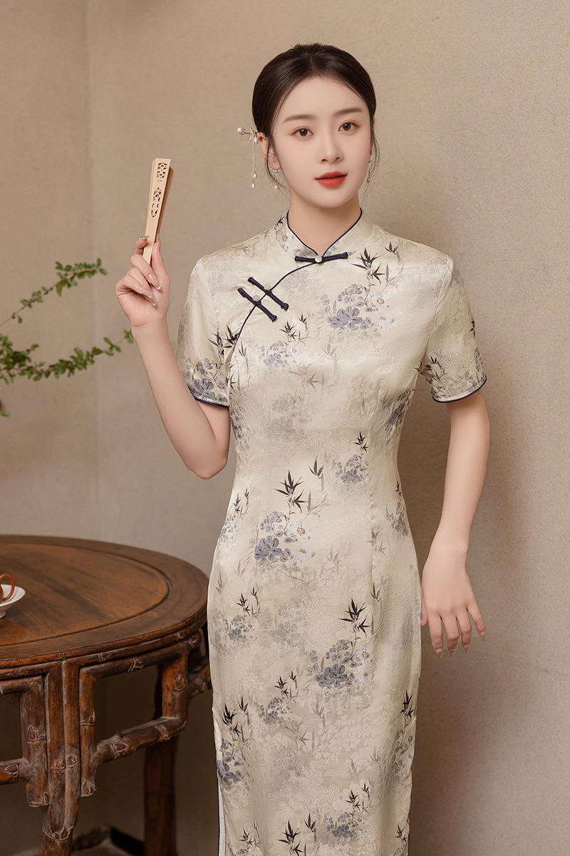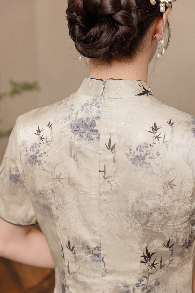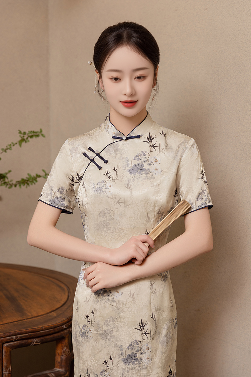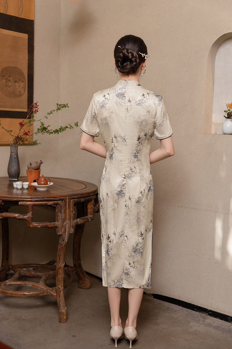 复古短袖中长改良年轻款,双层提花旗袍ZA-216