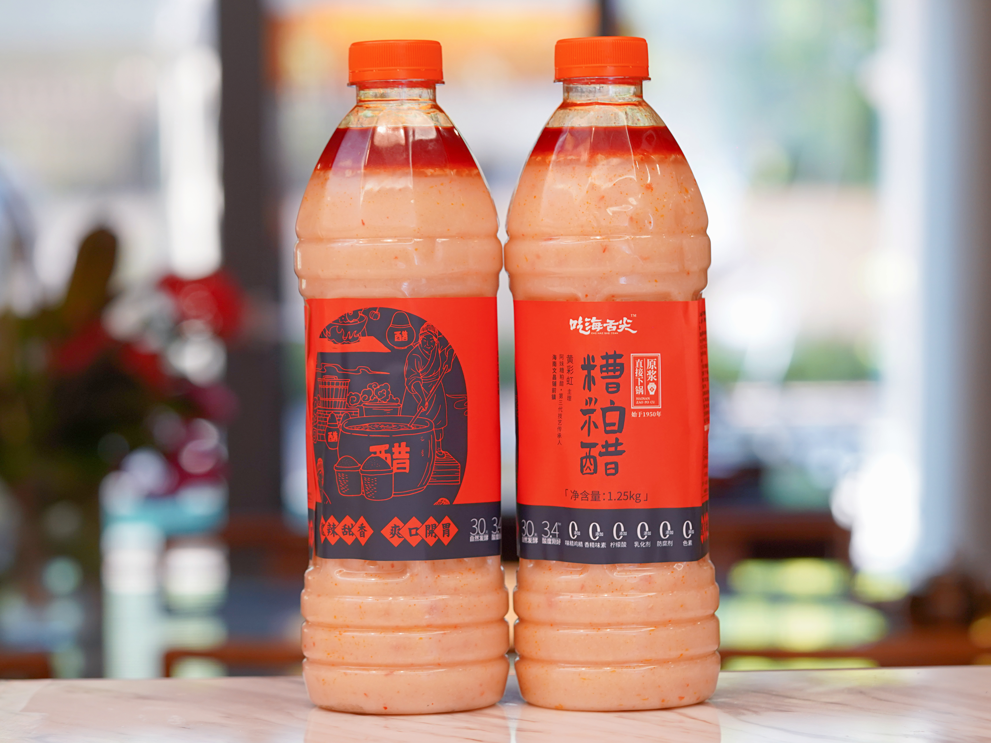吃海舌尖通过长时间的调研与沟通,最终和阿妹糟粕醋达成深度合作,通过对古法的探索与研新,得到了这款健康美味的糟粕醋。
