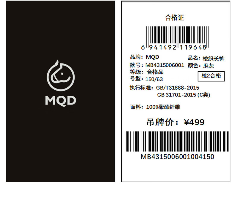 【MQD】马骑顿梭织长裤