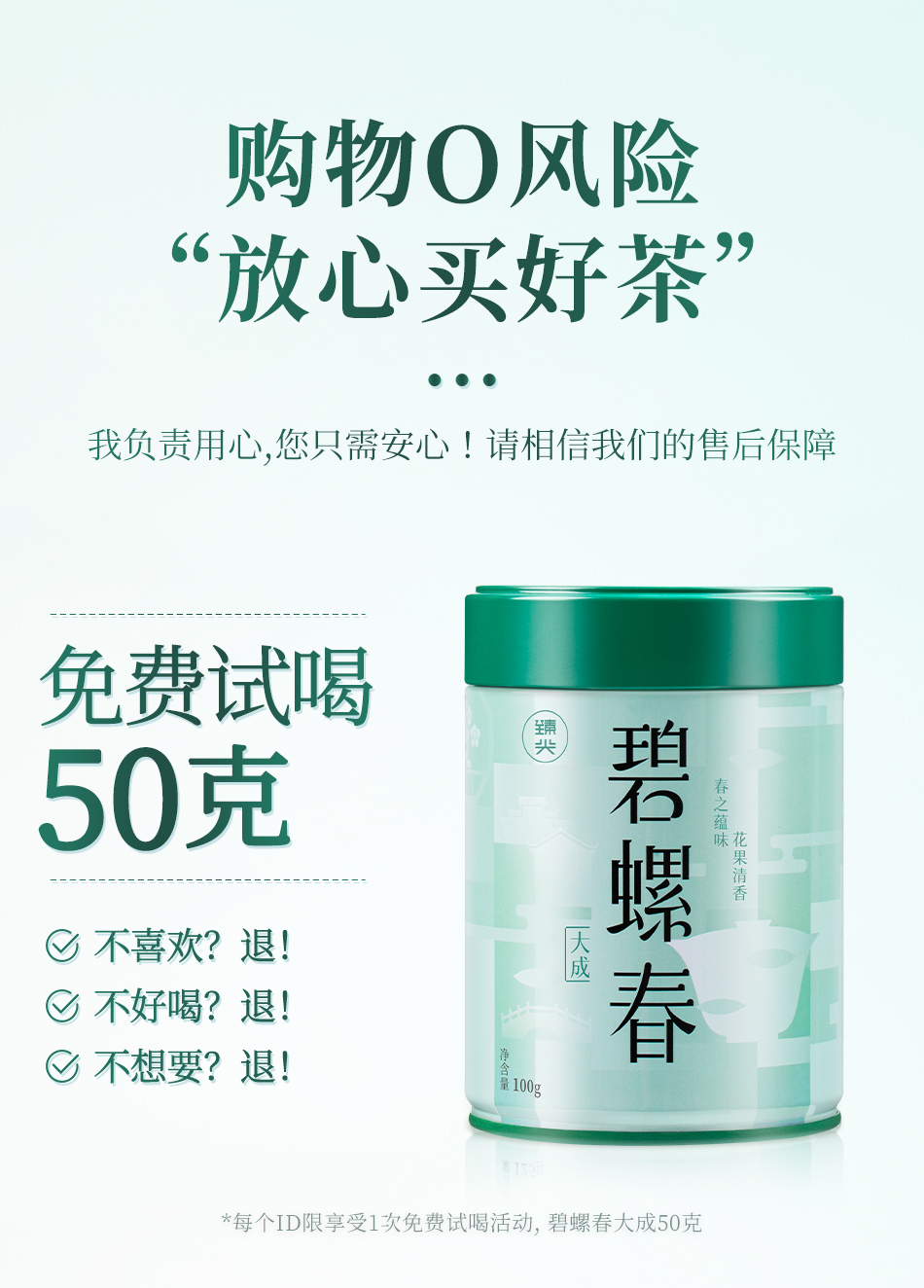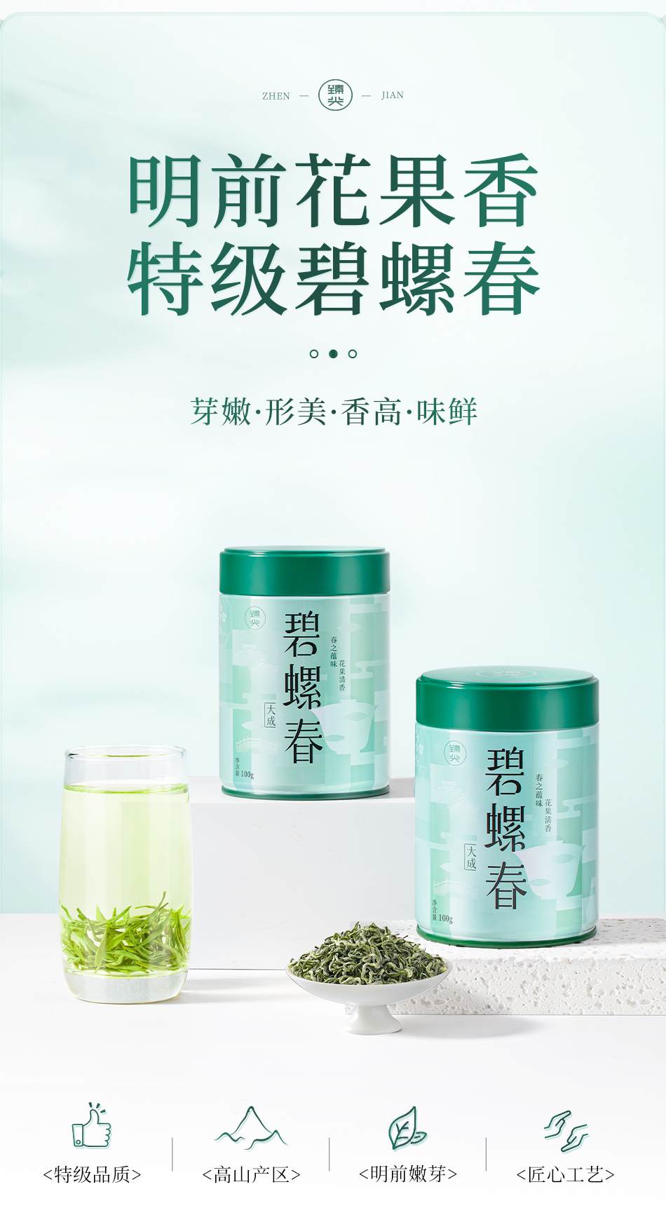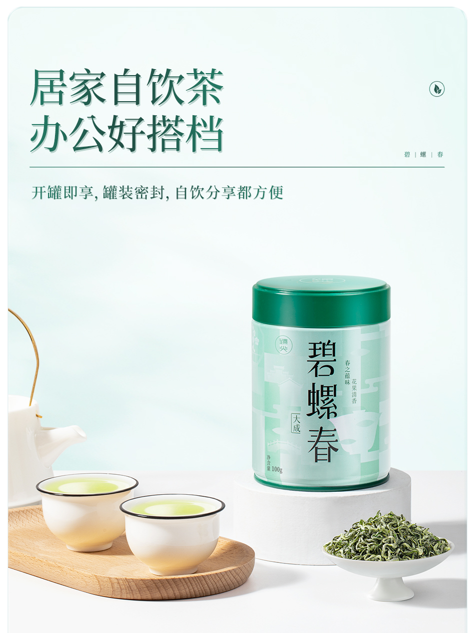 【臻尖-碧螺春大成】新茶 鲜爽回甘明前绿茶碧螺春100g*2罐